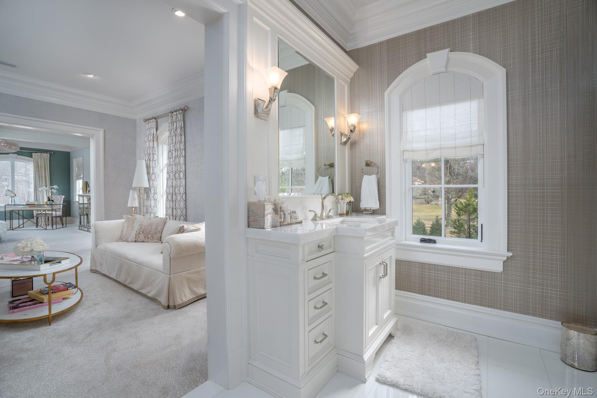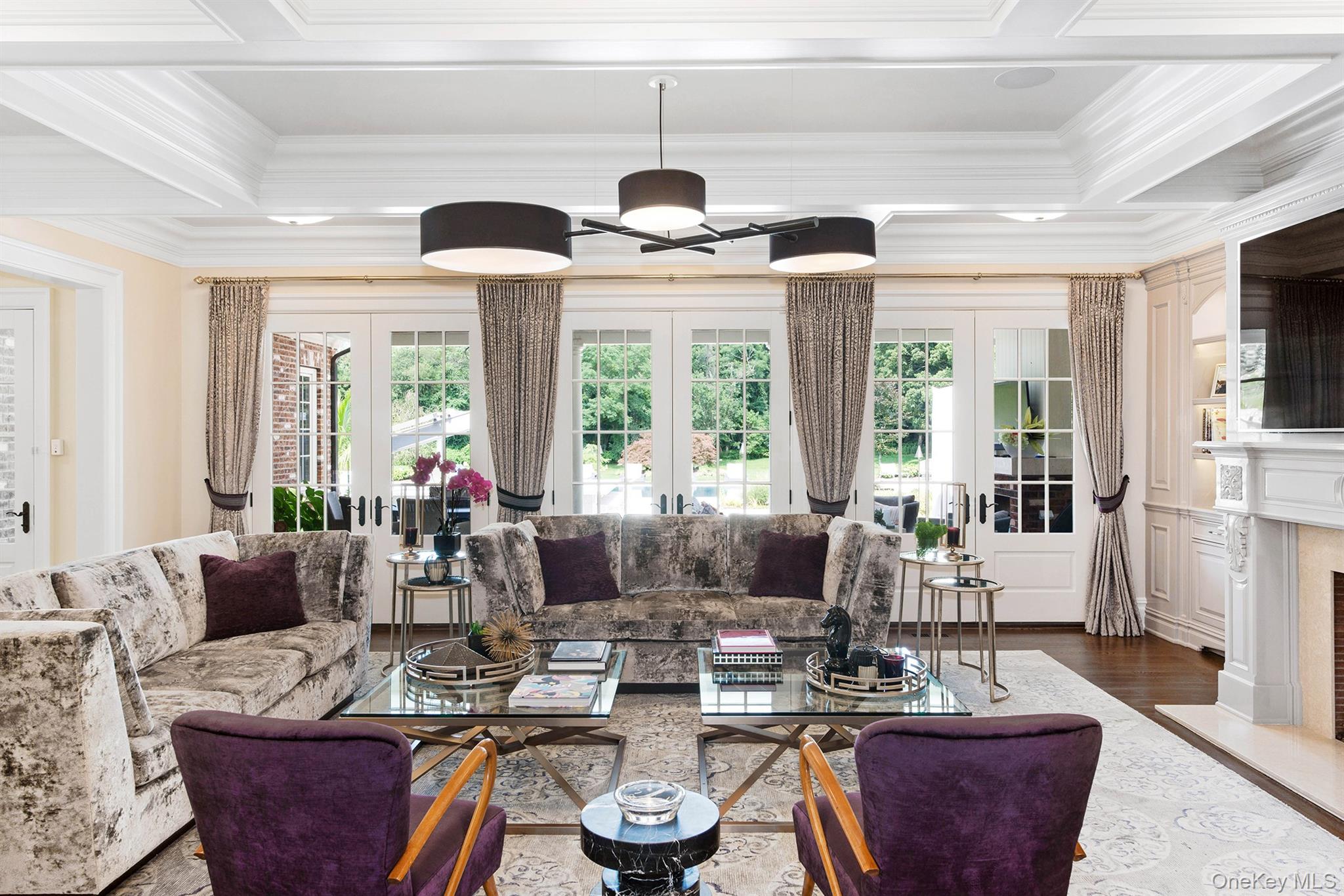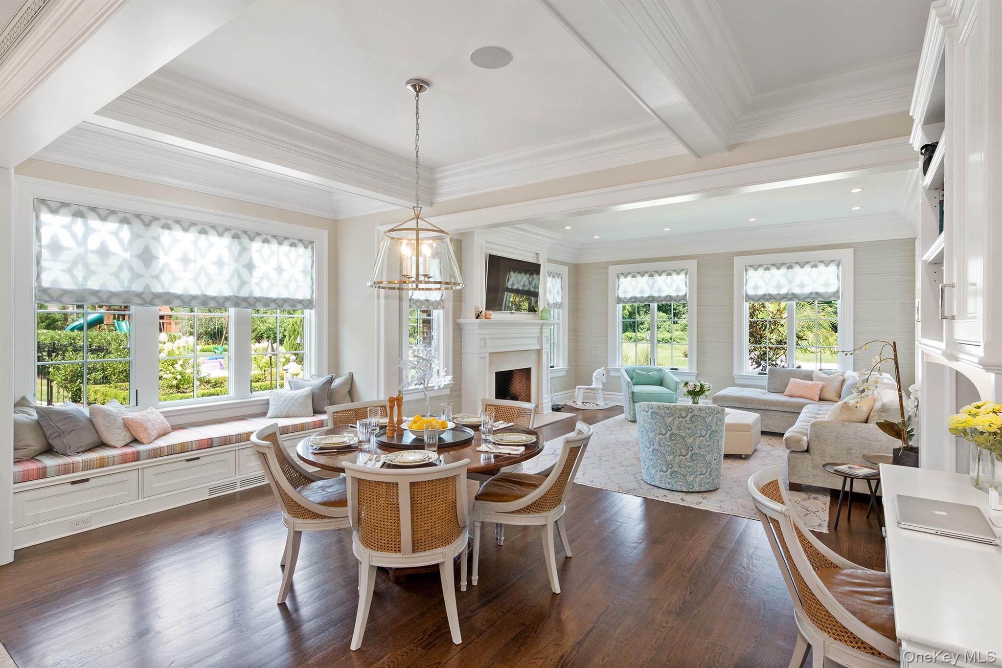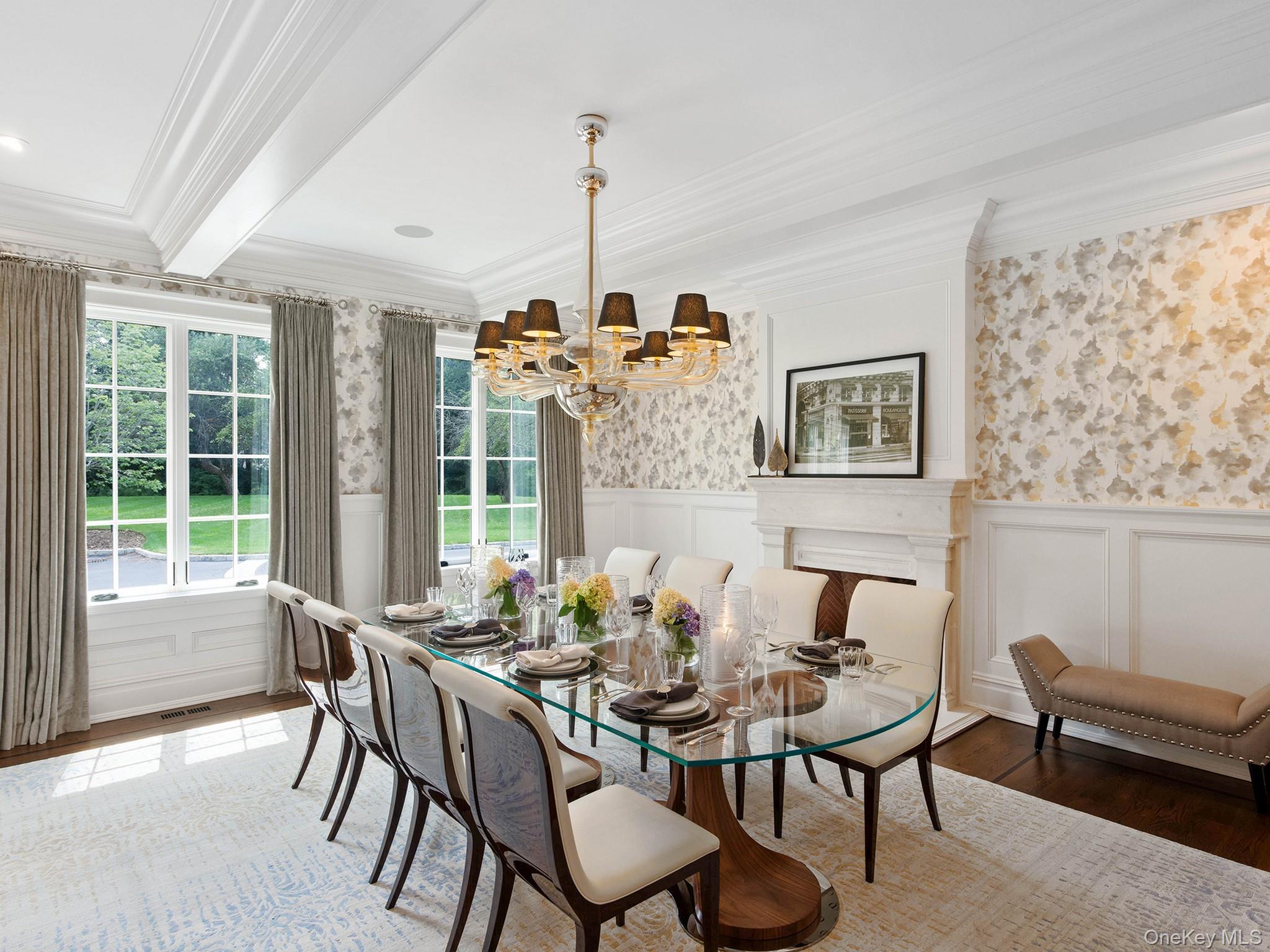 Welcome to this exceptional 7-bedroom center hall Colonial estate, masterfully designed by Harrison Design Architecture and set on 4 breathtaking, park-like acres. A grand arrival is marked by a sweeping circular driveway leading to a stately façade, setting the tone for the elegance found within.A dramatic double-height entry hall with sweeping architectural staircase and elegant proportions creates an unforgettable first impression and offers potential for a future elevator. Just off the entry, a chic bar provides a stylish and inviting place to gather with guests before dining. The home's thoughtfully designed layout blends classic sophistication with modern livability, highlighted by a fabulous open floor plan and an abundance of natural light throughout-truly the ultimate entertaining house.The formal dining room is both elegant and inviting, featuring a fireplace and seamless access to the chef's eat-in kitchen. Designed for both everyday living and entertaining, the kitchen is outfitted with top-of-the-line appliances, custom cabinetry, and premium finishes, and flows effortlessly into a warm and inviting den with a fireplace. A gracious formal living room, also with fireplace, provides an additional refined space for gathering. Custom, bespoke millwork is showcased throughout the home, elevating every room with timeless craftsmanship and detail. A first floor en-suite bedroom offers flexility for guests or extended familyThe luxurious primary suite is a true private retreat, complete with a spacious sitting room, and dual spa-inspired bathrooms, offering both comfort and indulgence. Additional bedrooms are generously proportioned, each thoughtfully designed.The home is flooded with natural light, enhanced by oversized windows and beautiful architectural lines, creating a bright and airy ambiance in every space.Recently added is a full finished basement offering billiard room, spacious family room, gym and a gorgeous sleek movie theatre. A lovely playroom and bedroom en-suite make this level ideal for recreation, guests, and extended stays.Outdoors, the property is nothing short of extraordinary. The spectacular pool and spa are surrounded by elegant Egyptian marble, complemented by expansive patios and beautifully manicured grounds. A fully equipped outdoor kitchen, covered patio with fireplace, and multiple entertaining areas create a true resort-like setting of total privacy and tranquility. A rare offering combining architectural pedigree, luxurious amenities, and an unparalleled setting-this is truly a distinguished estate for the most discerning buyer.