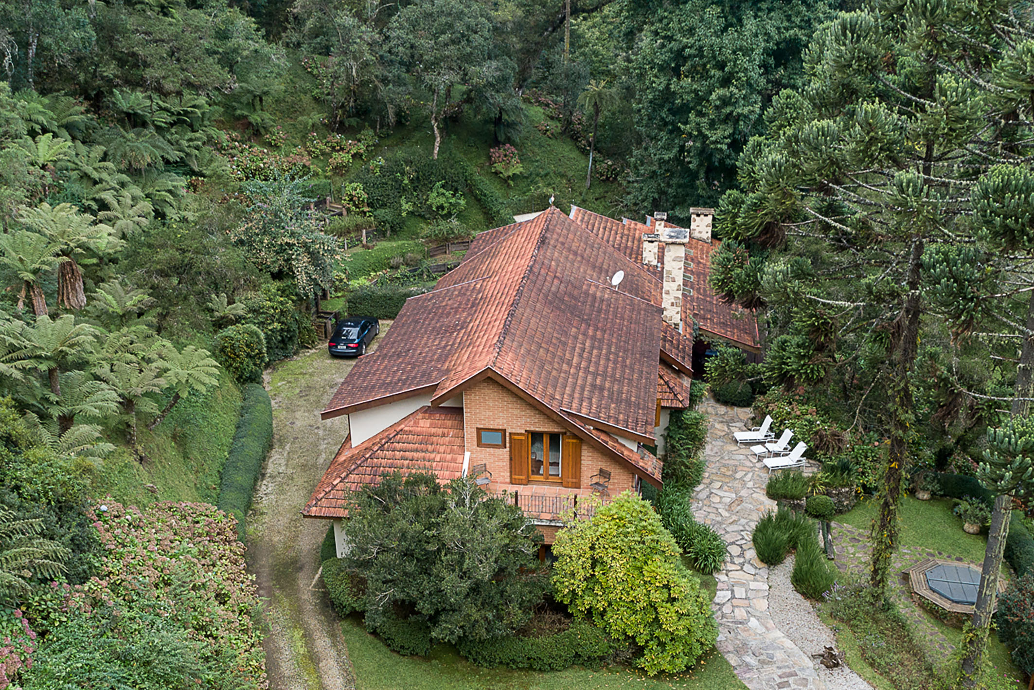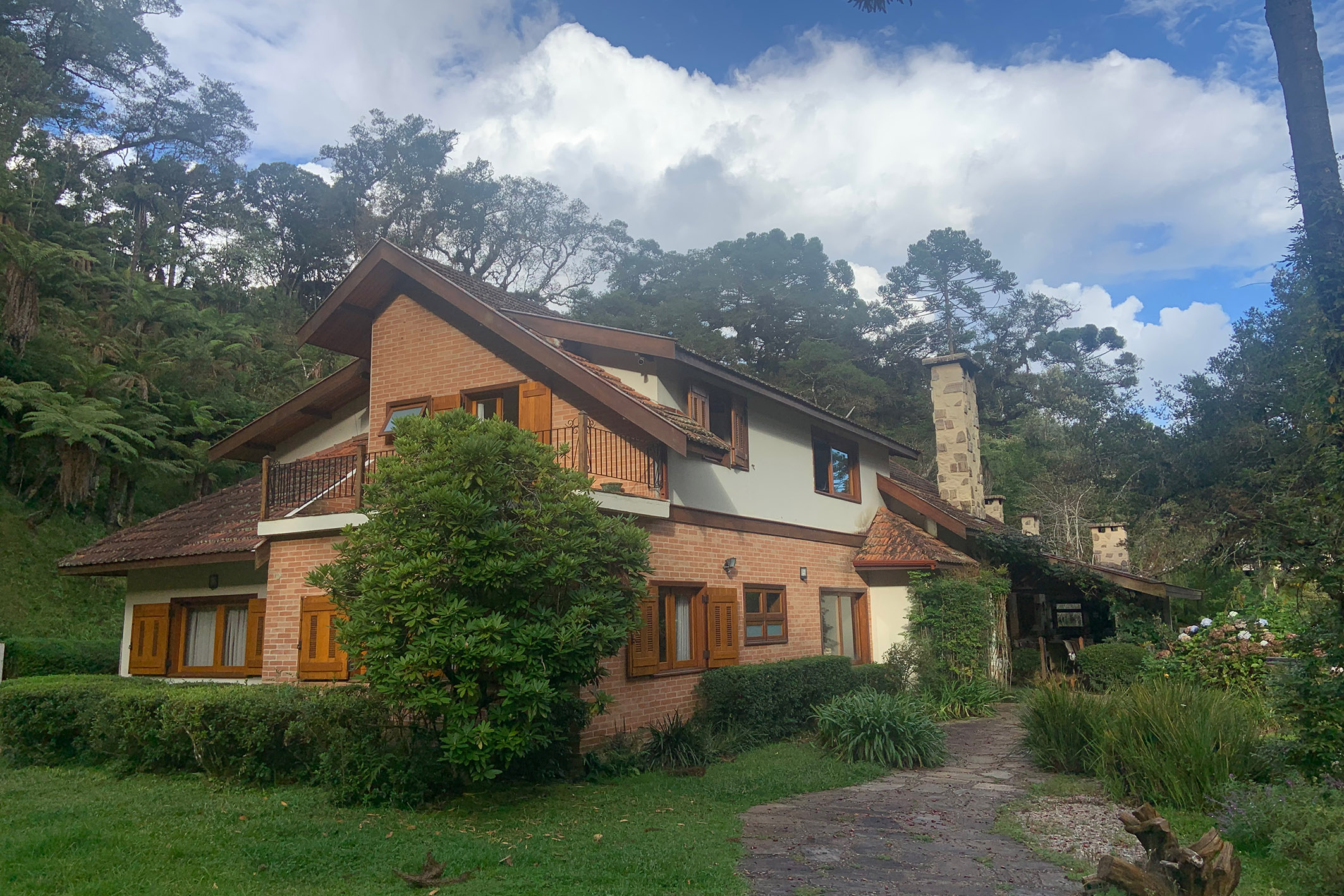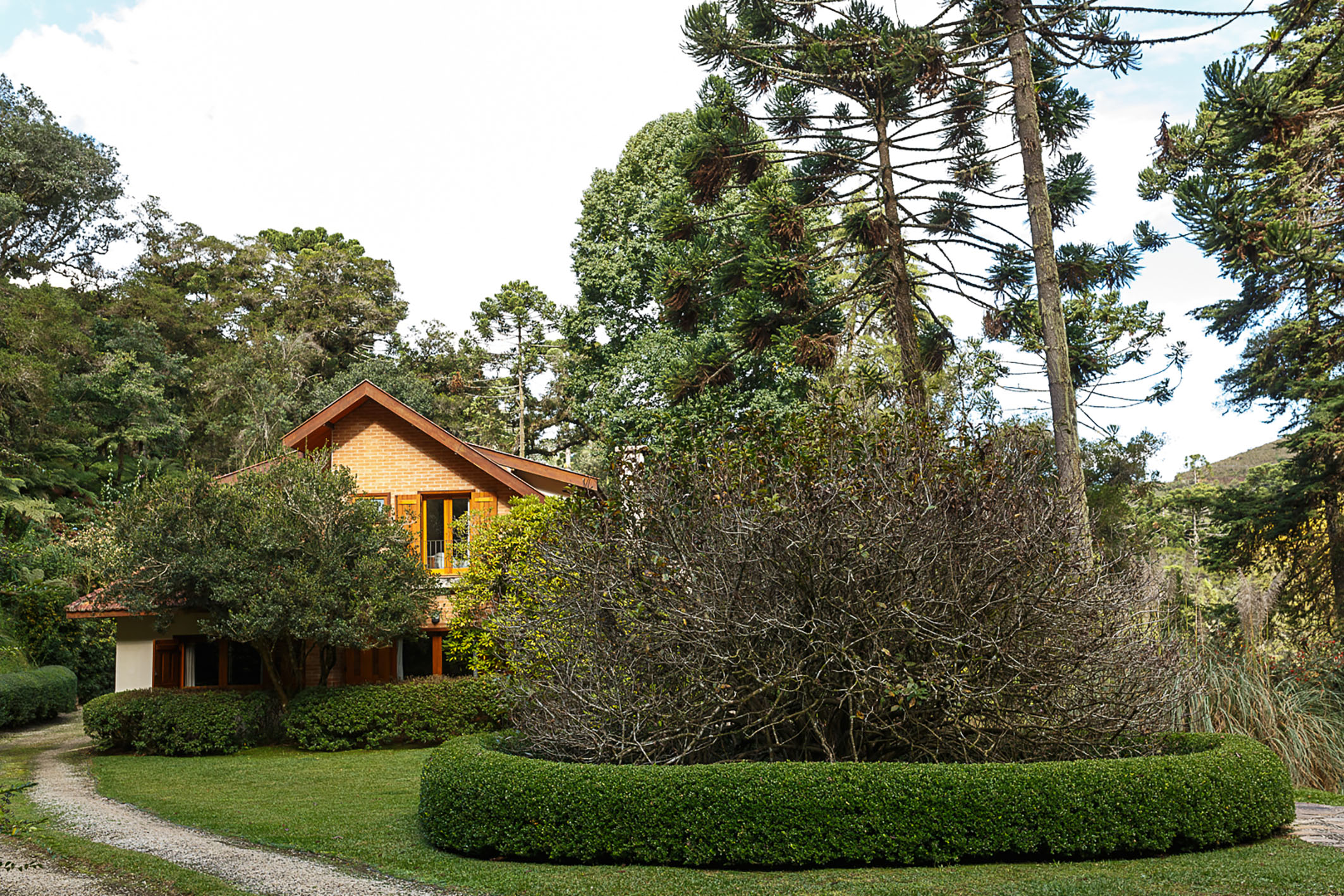 A rare retreat where silence, nature, and well-being converge in balance, just minutes from the center of Campos do Jordão, with easy access and a preserved setting surrounded by native forest with century-old araucarias, trails, and natural springs. The property reveals an intimate landscape where each element has been designed to foster comfort and a genuine connection with the outdoors. The residence features a living area with double-height ceilings, refined millwork, and a mezzanine that enhances spatial flow with lightness and character. The social spaces are fully integrated, including a fireplace lounge, office, gourmet kitchen, and an additional support kitchen, reinforcing both functionality and conviviality. The panoramic veranda extends the experience, offering a complete gourmet area with wood-burning stove, pizza oven, and barbecue. Heated flooring is present throughout the house, ensuring comfort in all environments. On the ground floor, there are two suites, one with a mezzanine accessed via a Santos Dumont staircase. The upper level includes two additional suites—one with a private terrace—and an expansive extra bedroom designed to accommodate up to four guests. The outdoor area includes a caretaker’s house and support structures for maintenance and operation. Leisure amenities feature a rustic pool, jacuzzi, a stream crossing the property, two natural springs, two ponds, and an 86,111 sq. ft rustic garden. The property also offers parking for up to ten vehicles. A residence that values what is essential: privacy, nature, and a singular living experience.