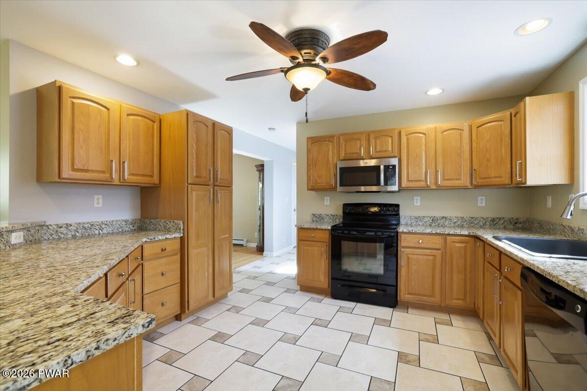 OZARK OASIS! Welcome to this immaculate 4-bedroom, 3-bath home set on over 2 private wooded acres in the heart of the Pocono Mountains. From the long private driveway to the cathedral foyer, this home offers space, privacy, and a seamless layout designed for everyday living and entertaining.The open-concept kitchen features granite countertops, abundant cabinetry, a breakfast nook, and a pass-through bar, flowing effortlessly into the main living and dining areas. A HUGE family room with bar creates the perfect space for entertaining, movie nights, or game days, while rear decks offer peaceful outdoor living with wooded views and stargazing.The main-level primary suite provides privacy and convenience, while the second-floor loft--recently converted to a 4th bedroom--along with lower-level bonus spaces offer flexibility for guests, office, gym, or additional living areas.Recent upgrades include a new roof (2024), whole-house Generac generator (2025), expanded driveway with parking for 5+ vehicles, gutter guards, permanent basement dehumidifier, and updated mechanicals throughout .Additional features include hardwood floors, oversized 2-car garage, generous bedroom sizes with large closets, and over 3,200 sq ft of living space.Located near Lake Wallenpaupack, hiking, skiing, and all Pocono amenities, this property is ideal as a primary residence, second home, or private retreat.