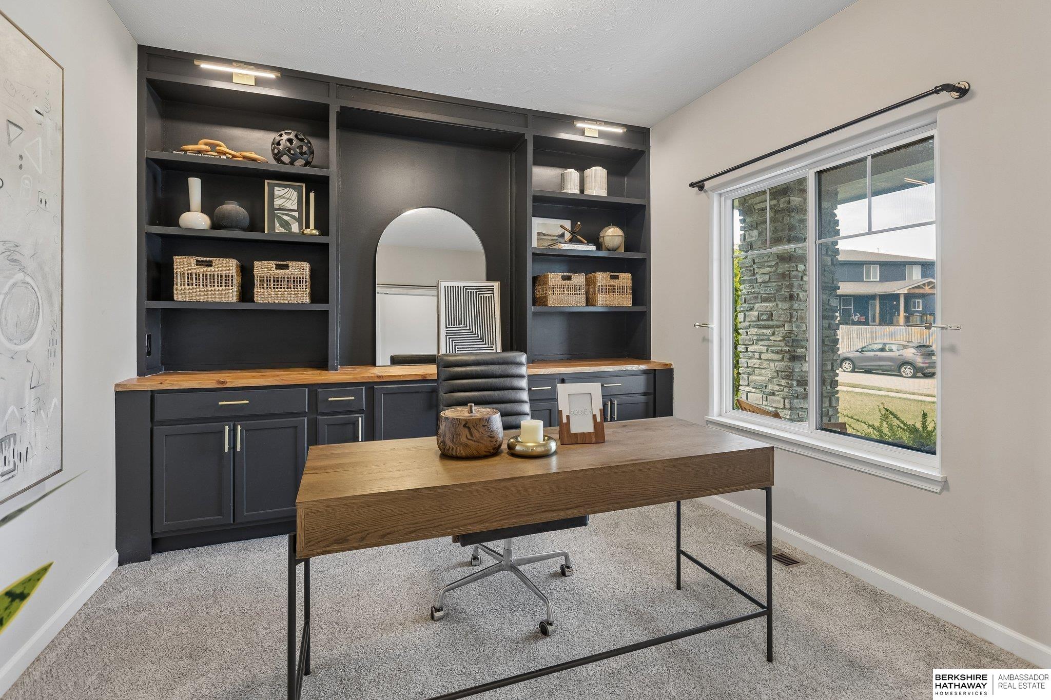 On market for backup offers only. Welcome to a beautifully maintained 2-story home built in 2020, perfectly situated on a premium lot with no backyard neighbors. Enjoy privacy and peaceful views while still being conveniently close to Papillion schools, shopping, and Highway 370. This 4-bedroom, 4-bath home features a bright main level with luxury vinyl plank flooring, a cozy fireplace, and a functional office space. The kitchen includes a pantry and flows seamlessly into the dining and living areas - ideal for everyday living and entertaining. Upstairs, all four bedrooms are generously sized, including a primary suite with double sinks and a walk-in shower, plus second-floor laundry for added convenience. The finished walkout basement provides additional living space with a wet bar and half bath, perfect for hosting or relaxing. Complete with a 3-car garage, fully fenced yard, deck, patio, and low annual HOA, this home offers modern comfort on one of the best lots in Sumtur Crossing.