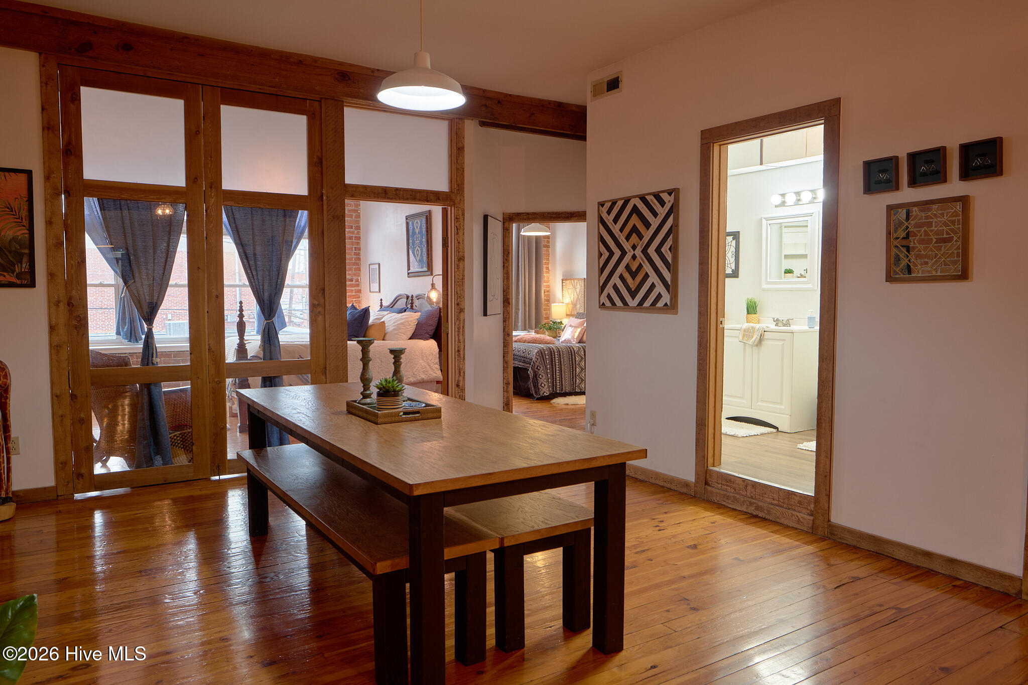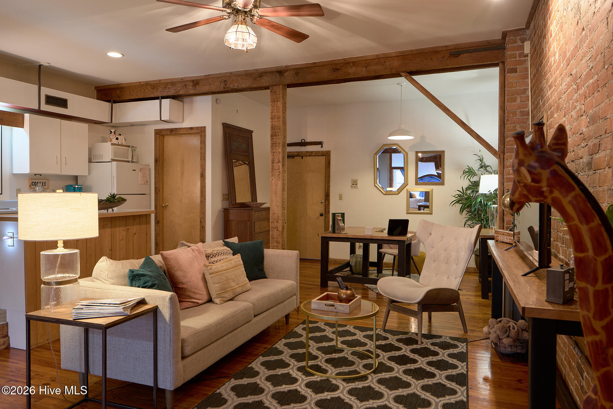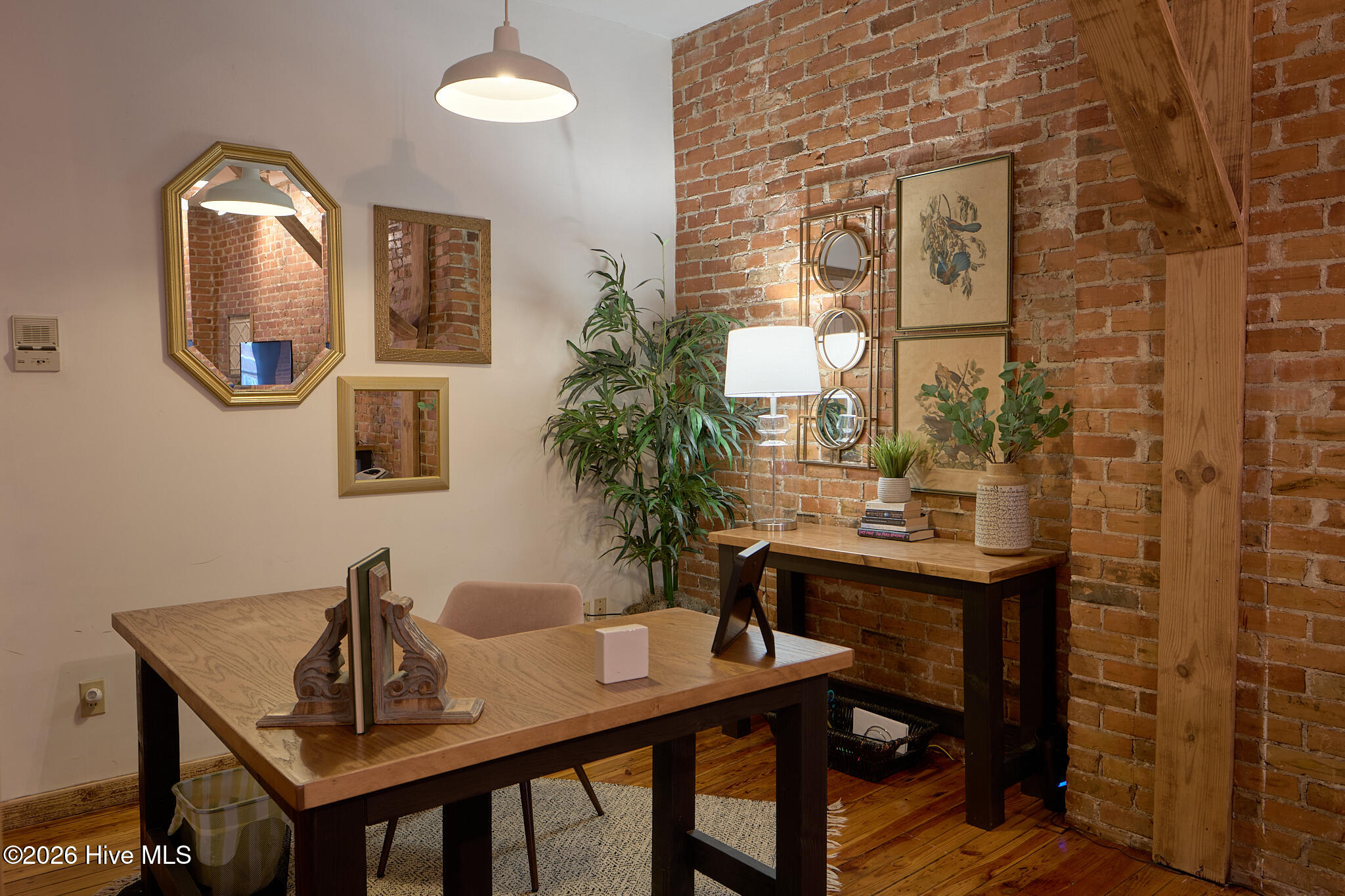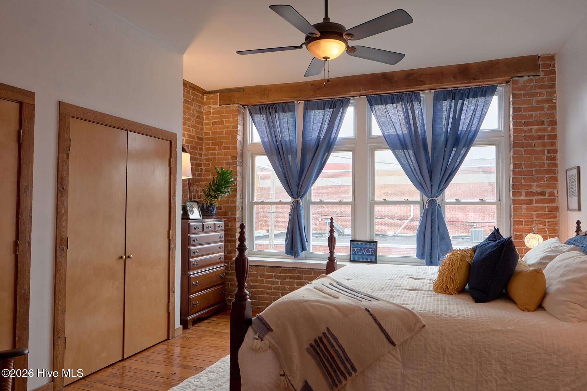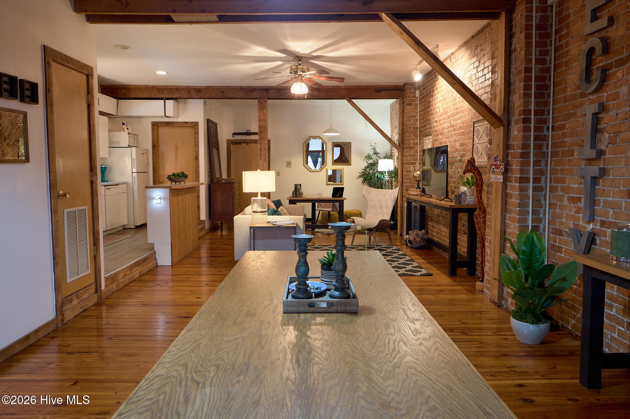 Downtown living or income producing Air BNB property! This historical corner building now houses a beautiful designed 2 bedroom / 1 bath condo known as 1920 Condominiums. Experience urban living at its finest in this beautifully restored property featuring originial wood floors, exposed brick walls, abundant natural light from large windows throughout. In 2020 the bath was renovated and kitchen subway tiles were installed. Just one block from the waterfront, enjoy the convenience of shopping, dining, and a vibrant social scene right outside your door. Covered parking space is included. Currently income-producing with a strong rental history and high cap rate. HVAC 2017, Water Heater 2018, Dishwasher and Refrigerator 2020. HOA installed a new roof approx 2013. Property may be purchased fully furnished or continue as an AirBNB, either way it's a turn key opportunity! . No flood insurance required.