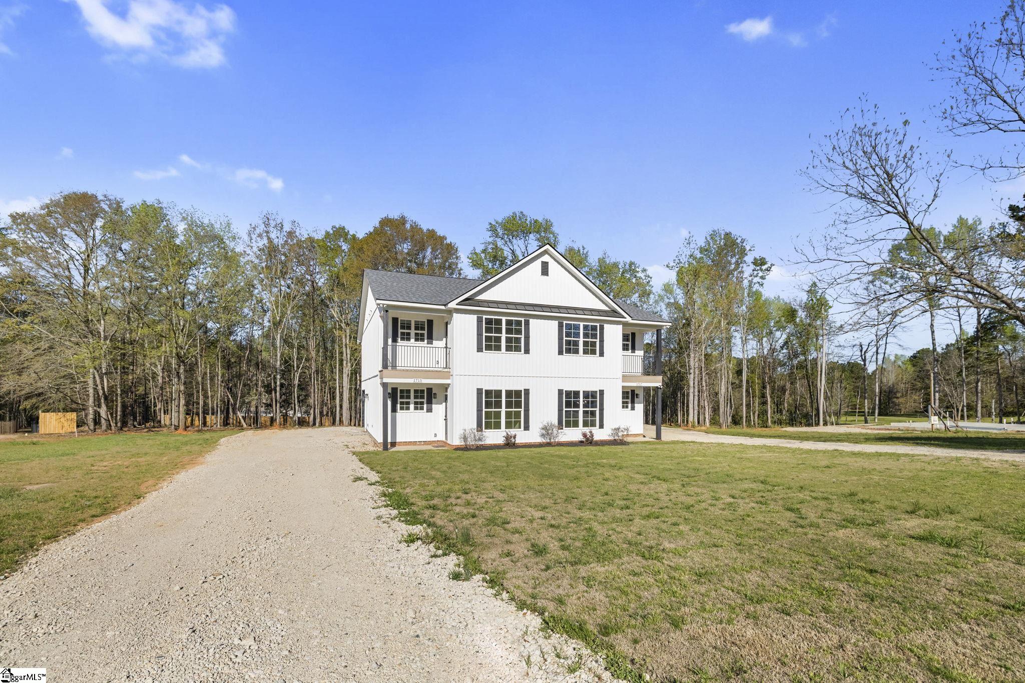 Whether you're looking for a smart way to offset your mortgage or add a strong, low-maintenance property to your portfolio, this brand-new duplex in Woodruff offers the kind of flexibility that's hard to find. Welcome to 1715 & 1717 Edwards Rd - a newly built duplex set on a full acre just minutes from the new BMW battery plant and the continued growth happening throughout Woodruff! Each side features 3 bedrooms, 2.5 bathrooms, and a clean, open layout with plenty of natural light. The main level flows easily from the living space into the kitchen, with a large island, granite countertops, and stainless appliances. Both units offer durable LVP flooring throughout the main living areas, modern fixtures, and a consistent, neutral finish that works for just about any style. The property also includes ample parking and a deep lot that gives you room to spread out - something you don't always get with newer construction. Live in one side and rent the other, or lease out both units and take advantage of the area's growth and rental demand. Either way, this one wont last long!