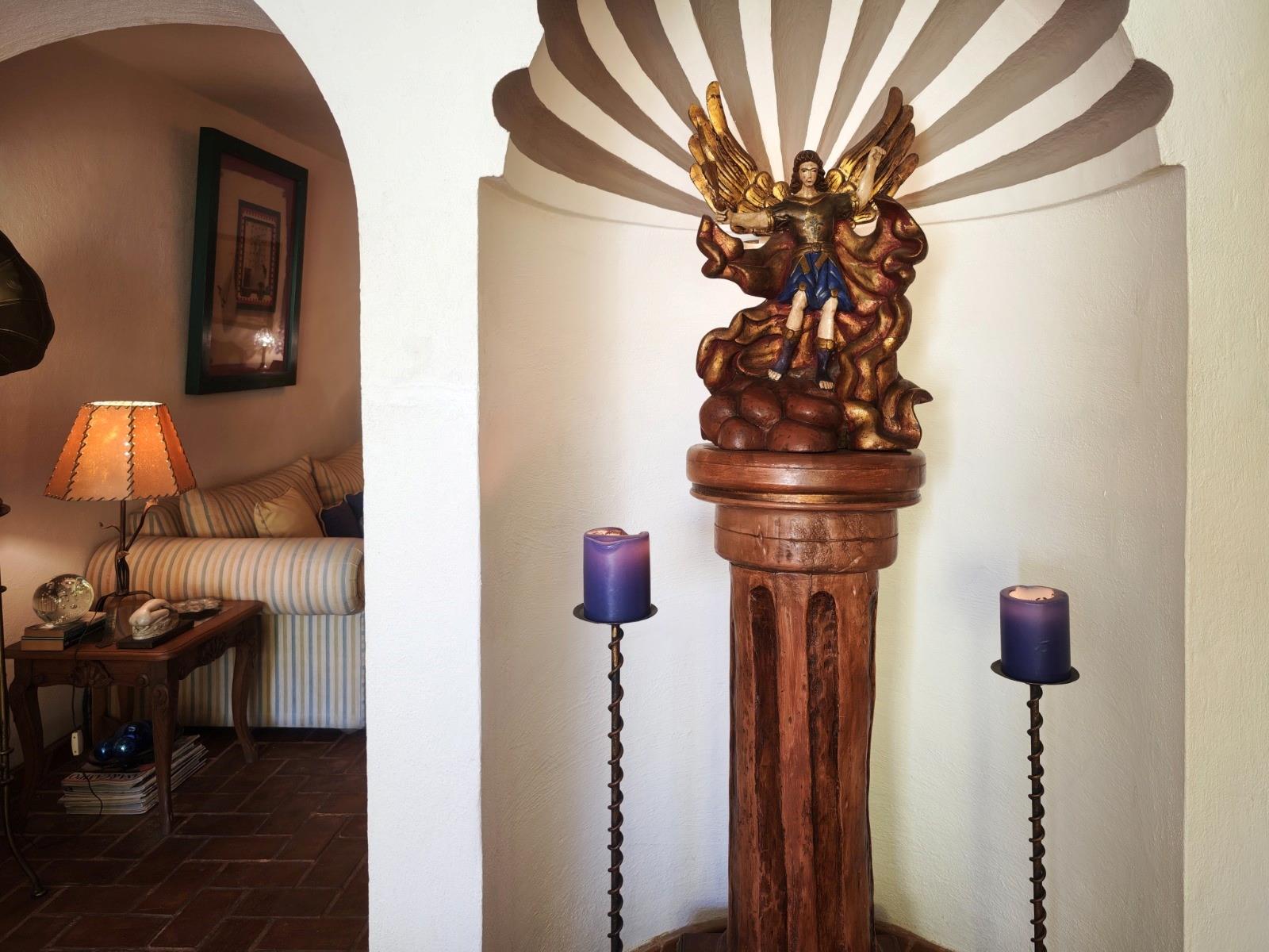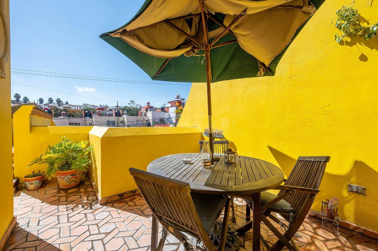Tucked away in a quiet and charming neighborhood of San Miguel de Allende, With beautiful b veda ceilings and exquisite handmade details throughout, including custom wood doors, windows, and colorful stained glass, the house feels both authentic and full of character. The bedroom is conveniently located on the ground floor, making daily living comfortable and easy. Every corner of the home reflects thoughtful craftsmanship and a sense of warmth, creating an inviting atmosphere to relax and unwind. the home is just steps from grocery stores, caf s, and local shops, allowing you to enjoy San Miguel's vibrant lifestyle.Where days are slower, walks are pleasant, and every sunset feels special. The highlight is the rooftop terrace, where you can enjoy breathtaking panoramic views of La Parroquia, the historic city skyline, and the surrounding mountains. It's the perfect place for morning coffee, sunset wine, or quiet evenings under the stars.