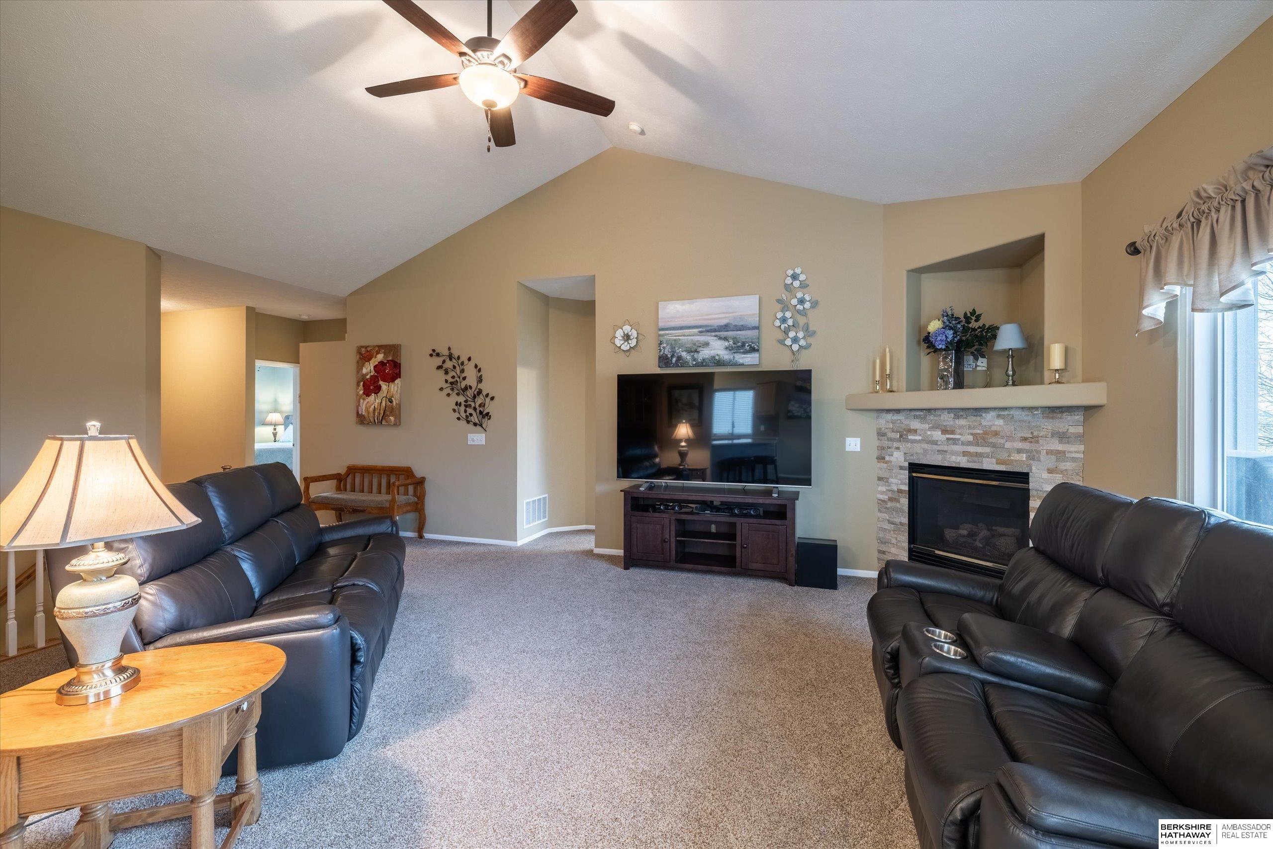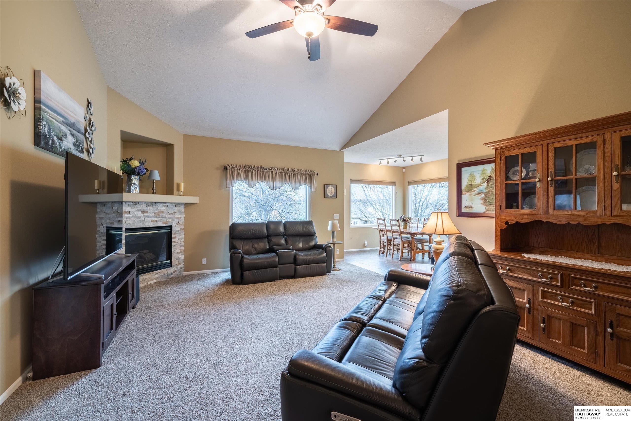 This carefree ranch-style villa offers an open, inviting layout with vaulted ceilings, warm flooring, and a dine-in kitchen with breakfast bar that flows into your living room with fireplace. Main floor laundry and a peaceful primary suite with walk-in closet, and dual sinks. The finished walkout lower level adds a spacious rec room, large 3rd bedroom/bath, and snack bar! Enjoy evenings on your east facing shaded deck! Updates include newer HVAC, windows, roof, carpet, countertops, onyx shower/sink, appliances, fixtures and much more!! HOA handles lawn care, snow removal, sprinklers, and trash. Schedule your showing today!