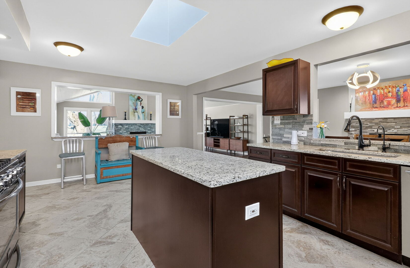 This is the one! Where panoramic fairway views meet refined design, this well-maintained Prestwick Country Club residence captures the essence of elevated living in Frankfort. Located on scenic hole number 9, this exceptional four-bedroom, three-and-a-half-bath home stands out from the moment you arrive. This immaculate, renovated stylish Ranch, with an open floor plan is located in the highly sought-after Prestwick Country Club community. Perfectly positioned on a private cul-de-sac lot, this home backs directly to the golf course and offers sweeping views, along with exceptional natural light throughout. From the moment you enter, the home showcases character and craftsmanship, from the brick accents and custom foyer flooring to the thoughtfully designed archways that frame the gorgeous golf course views. Gleaming hardwood floors lead into an expansive open-concept layout highlighted by a large, fully upgraded kitchen designed for both everyday living and entertaining. The space features granite countertops, custom cabinetry, stainless steel appliances, a skylight, and a large center island that flows seamlessly into the dining area and impressive two-story family room. The family room features vaulted ceilings, a stunning fireplace, recessed lighting, and striking exposed beams, creating a warm yet elevated living space. The home offers three beautifully appointed Fireplaces located in the Family room, Dining room, and Basement. The primary suite is a true retreat, privately situated at the rear of the home. Featuring vaulted ceilings, two oversized closets, including one with hookups for a second laundry area, and a luxurious en suite bath with dual vanities, custom tile work, and an oversized walk-in shower, along with direct access to the expansive deck. The finished lower level provides excellent flexibility with newer carpet, a full bathroom, and an additional family room/flex space, complete with its own fireplace. The exterior is equally impressive. The whitewashed brick enhances the curb appeal, while the expansive deck provides stunning golf course views. The outdoor space features mature trees and a BBQ area, creating the perfect setting for entertaining and relaxing while overlooking expansive green space. Additional updates include new fixtures and shutters, a new HVAC motor, a new water heater, three sump pumps, two air conditioning units, and added insulation to improve energy efficiency, plus many more improvements throughout. The attached oversized heated and air conditioned two-car garage adds further convenience, with added electrical outlets for hobbyists and potential electric car charging. Ideally located near the charm of historic downtown Frankfort, known as the "Jewel of the South Suburbs," this home is within the highly regarded Lincoln-Way School District and offers convenient access to Route 57, Old Plank Road Trail, forest preserves, local sports clubs, boutique shopping, dining, and year-round community events. This home also offers the opportunity for a special trial membership to Prestwick Country Club, which features golf, tennis, a clubhouse, and a heated in-ground pool. This is your dream home! Move Confidently.
