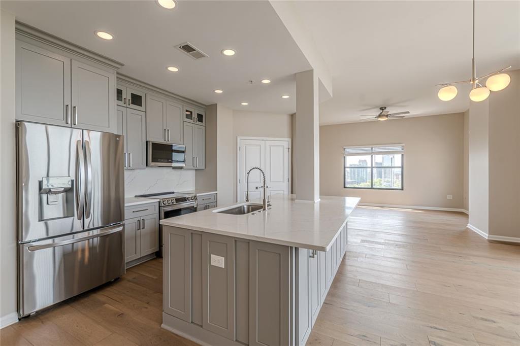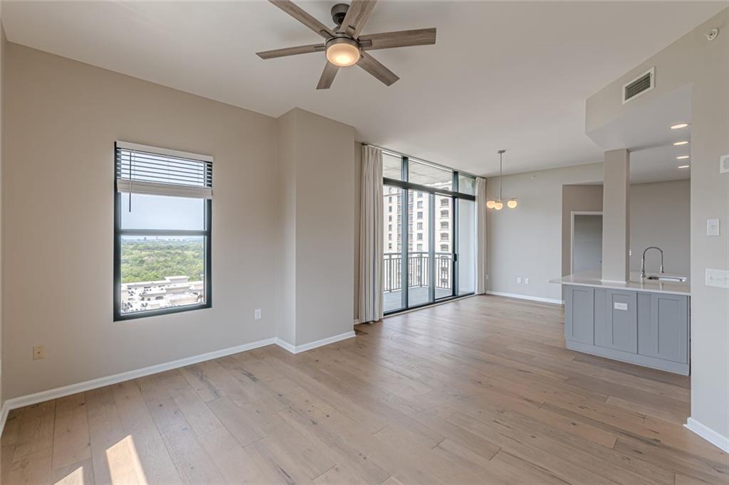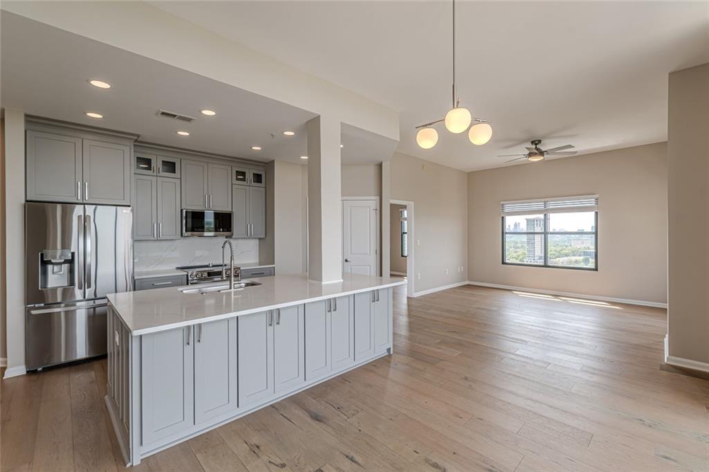 Welcome to this beautifully renovated 16th-floor condominium, where sweeping skyline views provide a truly breathtaking backdrop. Bathed in natural light, the open-concept design offers a seamless flow between the living, dining, and kitchen areas - perfectly suited for both everyday living and refined entertaining.The fully updated kitchen is a standout feature, showcasing sleek, modern cabinetry, new LG appliances, and an expansive island with abundant storage - an ideal setting for any culinary enthusiast. The generously sized bedrooms offer a tranquil retreat, complete with ample closet space, while the bathrooms are thoughtfully designed with clean lines and contemporary finishes. Step onto your private balcony to take in the stunning views - an inviting space for morning coffee or unwinding at day's end. Residents of this well-managed community enjoy access to a fully equipped fitness center, complete with a sauna, as well as a resort-style pool perfect for warm Georgia summers - all complemented by the ease of low-maintenance living. With two assigned covered parking spaces and a prime location just steps from Buckhead Village's premier shopping, dining, and conveniences, this residence offers an exceptional blend of urban sophistication and everyday comfort