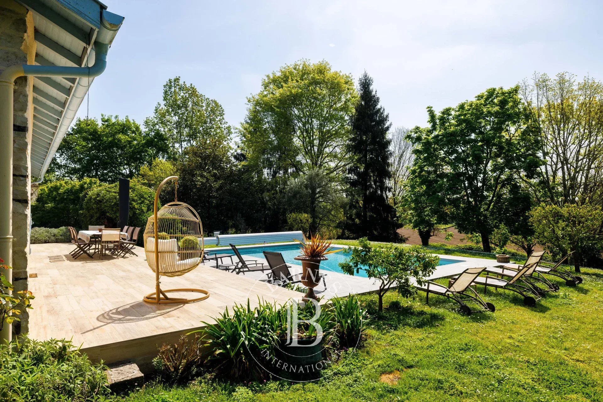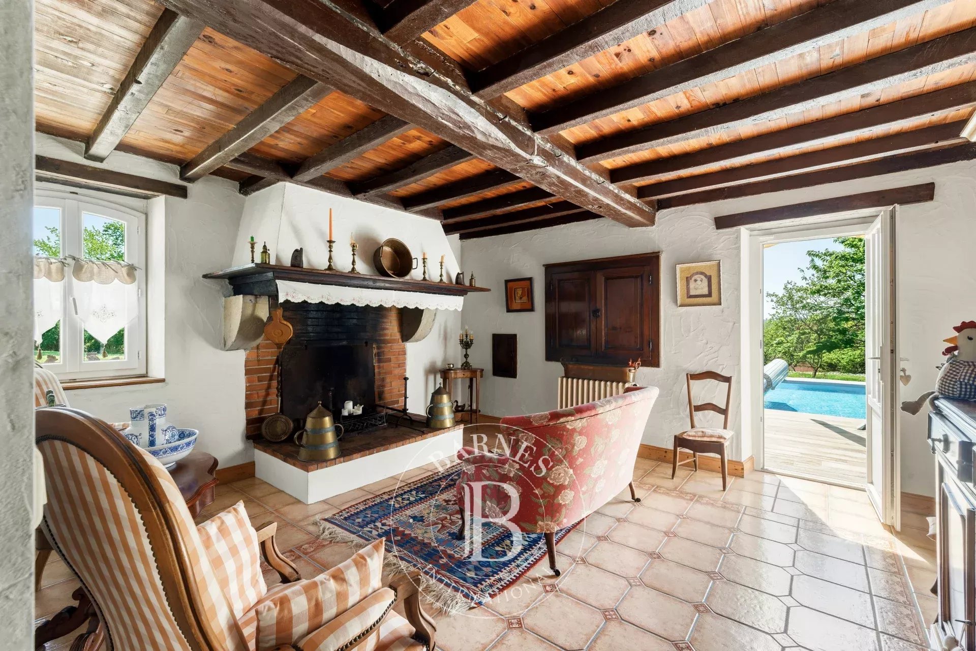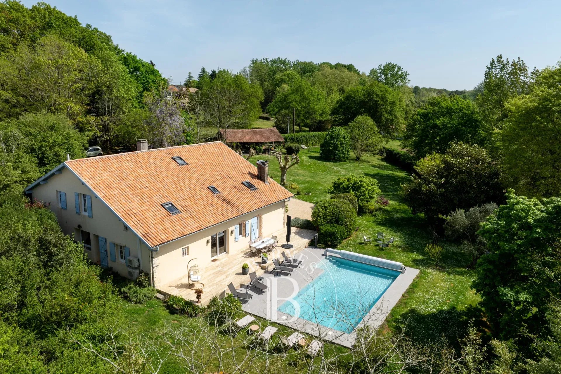 Authentic Landes farmhouse dating from 1750, offering approximately 360 m² of living space on a 5,642 m² plot.The house is in perfect condition and features on the ground floor a large 68 m² living/dining room with fireplace, a billiard room, a spacious fully equipped kitchen, a second living room with fireplace, and one bedroom with a shower room. On the first floor, there are 5 bedrooms, 2 bathrooms, and a large landing used as a relaxation area, as well as a study.Parquet and tiled floors, traditional canal tiles, gas central heating and a heat pump.A workshop, a barn and a double garage complete the property.Beautiful landscaped garden with various fruit trees, plane trees, lime trees, magnolias and oak trees.Lovely heated swimming pool (10 x 5 m) with recently landscaped terrace.Bakery and shops 2 minutes away, supermarkets 6 minutes, and Landes beaches 25 minutes. Motorway access 5 minutes. Possibility to rent a mooring on the Adour River.