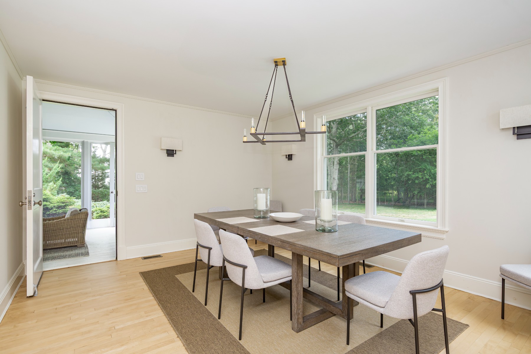 Nestled on a quiet Cul de Sac in a desirable neighborhood, this updated bright and airy home has all the features for Hamptons summer lifestyle. Spacious living room with high ceiling, dining room, and large kitchen. The kitchen leads to screened porch perfect for outdoor entertaining. Three large bedrooms, three bathrooms are set on the one-level floorplan. Newly finished wood floors, new Bosch kitchen appliances, and new furnishings. Two sets of French doors in the living room open to the outdoor patio, heated pool, and outdoor shower room. This backyard setting overlooks pastoral views of a twenty acre reserve. Enjoy the use of association tennis courts located within the neighborhood quiet lanes and views of natural pastures. Convenient location to East Hampton Village ocean beaches, downtown stores and restaurants, train station, Hampton Jitney. Only a few blocks to the Red Horse Gourmet Market and Flywheel spin studio! [[Rental Registration # 25-422]] EH RR #: 25-422