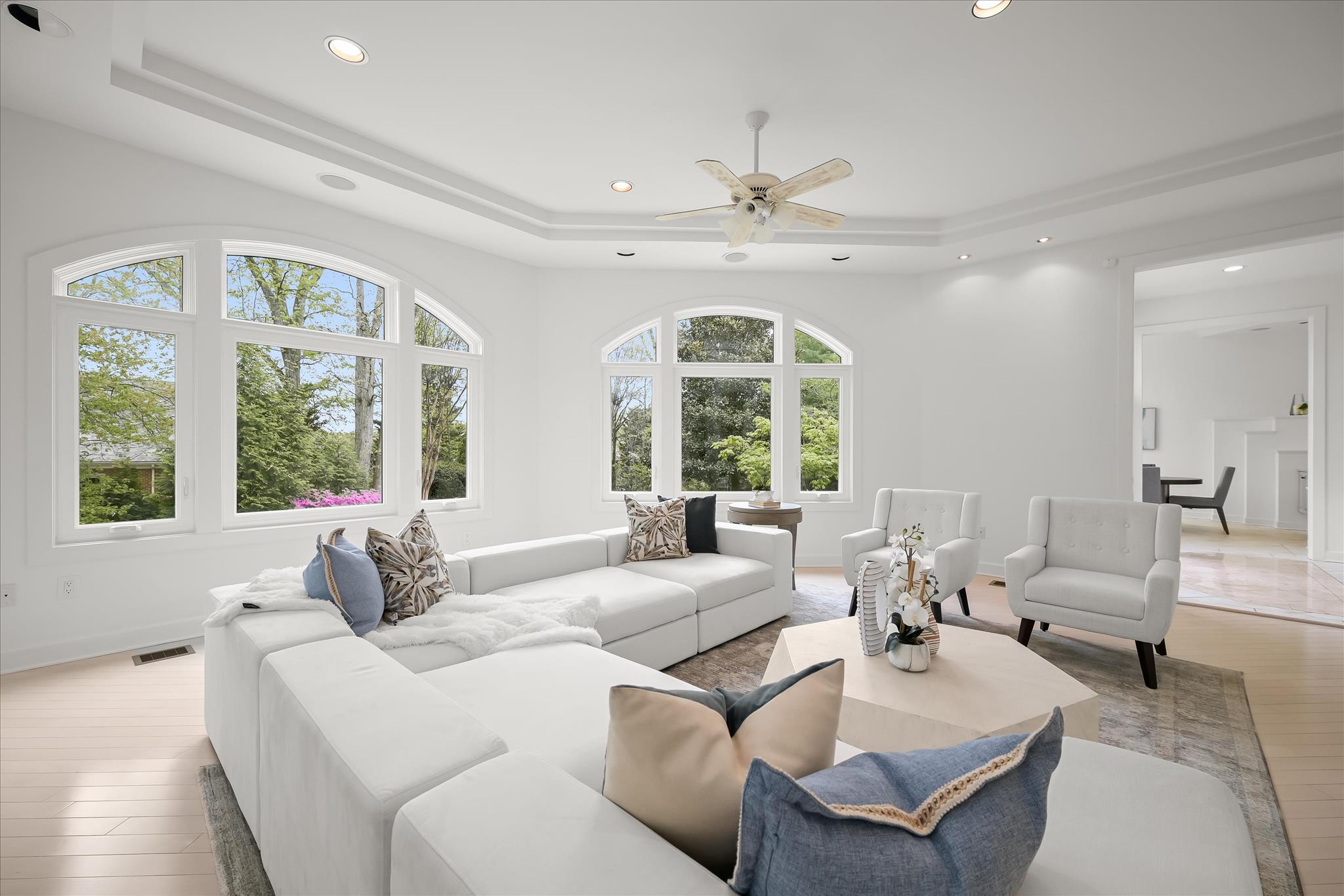 Set on a prominent corner lot along sought-after Avenel Farm Drive in Potomac, this expansive residence offers a thoughtful balance of scale, functionality, and flexibility. With a three-car garage, circular driveway, and welcoming front porch, the home makes a strong first impression while delivering everyday practicality.Inside, sun-filled spaces and soaring ceilings create an airy, luxurious feel throughout. The elegant two-story foyer is a showstopper from the moment you enter! A spacious, sun-filled formal dining room with a butler’s pantry leads seamlessly into the expansive kitchen featuring gas cooking, a walk-in pantry, a built-in desk, and ample cabinetry. From the kitchen, enjoy views through the incredible two-story breakfast room looking out on the lush grounds and pool. The adjacent family room, wrapped in windows and detailed with coffered ceilings and built-ins, offers a comfortable gathering space with direct connection to the outdoors. A formal living room with a wood-burning fireplace and stone mantle provides a quiet retreat, while the pool table room feels like a conservatory! A main-floor office provides excellent space for a comfortable work-from-home environment. Two powder rooms, as well as a mudroom providing access to the three-car garage, complete the exceptional main level. A bonus, private loft space above the garage is accessible via its own staircase and provides ample opportunity for a home office, studio, and more!Upstairs, stunning hardwood floors run throughout the versatile spaces. The primary suite is expansive and private, featuring a sunny sitting room, fireplace, dual walk-in closets, and a private balcony overlooking the backyard and pool. The en suite bathroom bathed in natural light includes a soaking tub, separate shower, and ample storage. Additional bedrooms are thoughtfully laid out, including a secondary bedroom with an en-suite bathroom and a separate wing with three sizable bedrooms, a shared hall bath, and generous closet space, offering versatility for a variety of living arrangements. The lower level with brand-new LVP floors continues to add meaningful living space, with a legal bedroom, full bath, and a fitness room with mirrored walls and gym floor. The spacious recreation room is ideal for guests of all ages with a built-in bar and fridge, a third wood-burning fireplace, and built-ins. Continue to a secondary recreation space, great for game tables or indoor sports play. A large laundry area, a bonus room ideal for a theater or sports simulator, and abundant storage complete this level. Outdoors, a stone patio leads to the pool and sun deck, all surrounded by beautiful, mature landscaping, fenced yard space, and room for gardening or play. The setting offers both privacy and usability, enhancing the home’s overall livability. This home features many improvements, including replacement windows and doors (2023), a newer roof (2020), new pool equipment, and new paint and other updates throughout, making it move-in ready yet leaving room for someone to make it their own! With its versatile layout, substantial square footage, and strong indoor-outdoor connection, this home presents a rare opportunity to tailor a well-built property to a range of needs in one of Potomac’s most established communities.