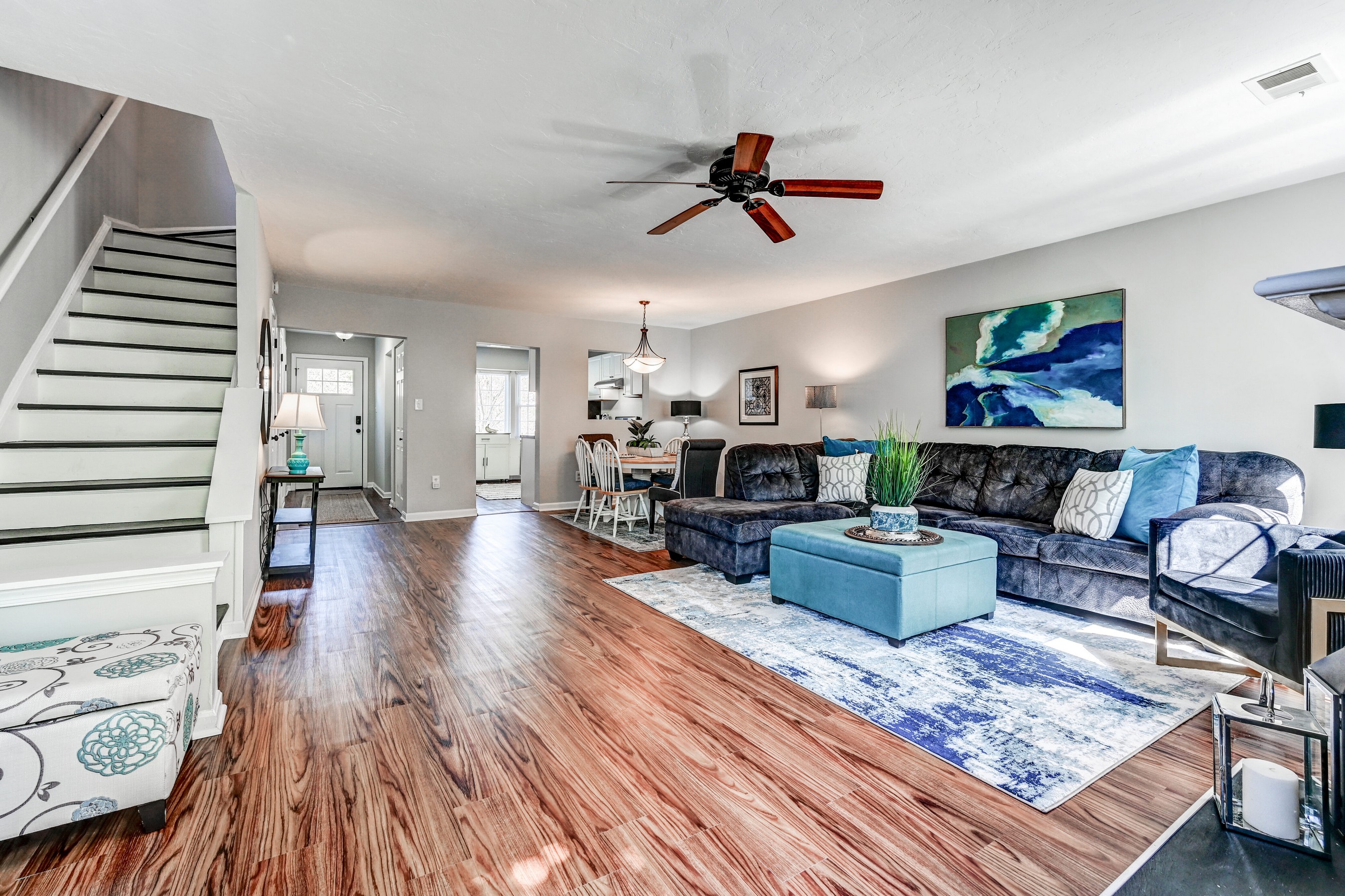 The main level features a warm and comfortable living room centered around a wood-burning fireplace—perfect for cozy evenings—along with access to a private deck for relaxing or entertaining. The spacious kitchen is well-equipped with stainless steel appliances, a pantry, and a portable island, offering both functionality and flexibility for everyday living.