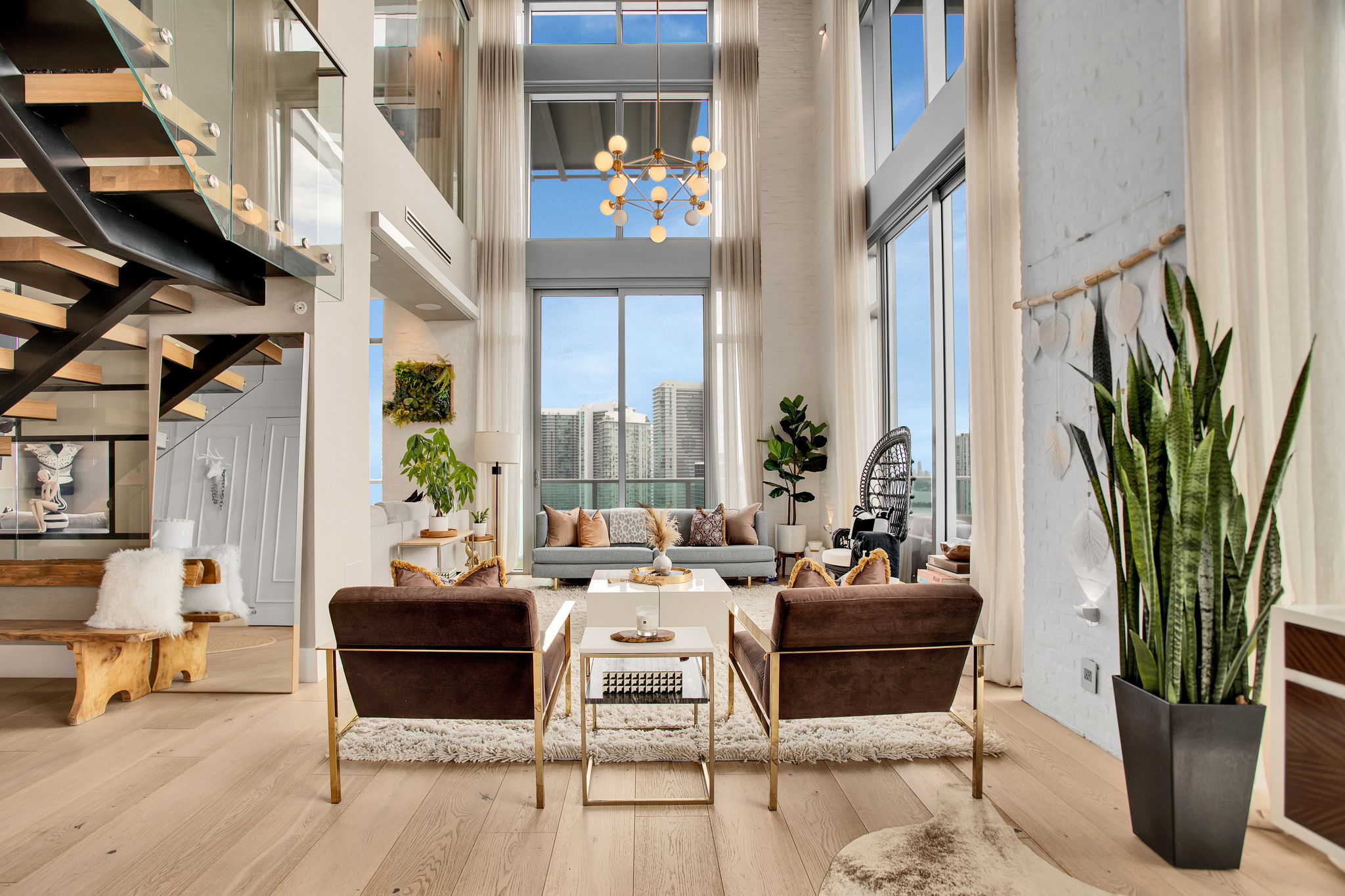 Created by esteemed Portuguese architect Ines Martins, this extraordinary Midtown Miami penthouse sets a new benchmark for upscale living. As the building’s largest residence, it captivates with flawless design and exceptional craftsmanship. Sweeping terraces wrap around the home, offering breathtaking views of Biscayne Bay, Downtown, Coral Gables, and Wynwood. The interiors are a testament to modern style, with soaring 20-foot ceilings, expansive glass walls, and refined finishes like marble and wood floors. The thoughtfully designed layout strikes a balance between spaces for entertaining and comfort, with state-of-the-art kitchen and central island, perfect for hosting or intimate dining, and master suite featuring a spa-inspired bathroom that invites relaxation and tranquility.