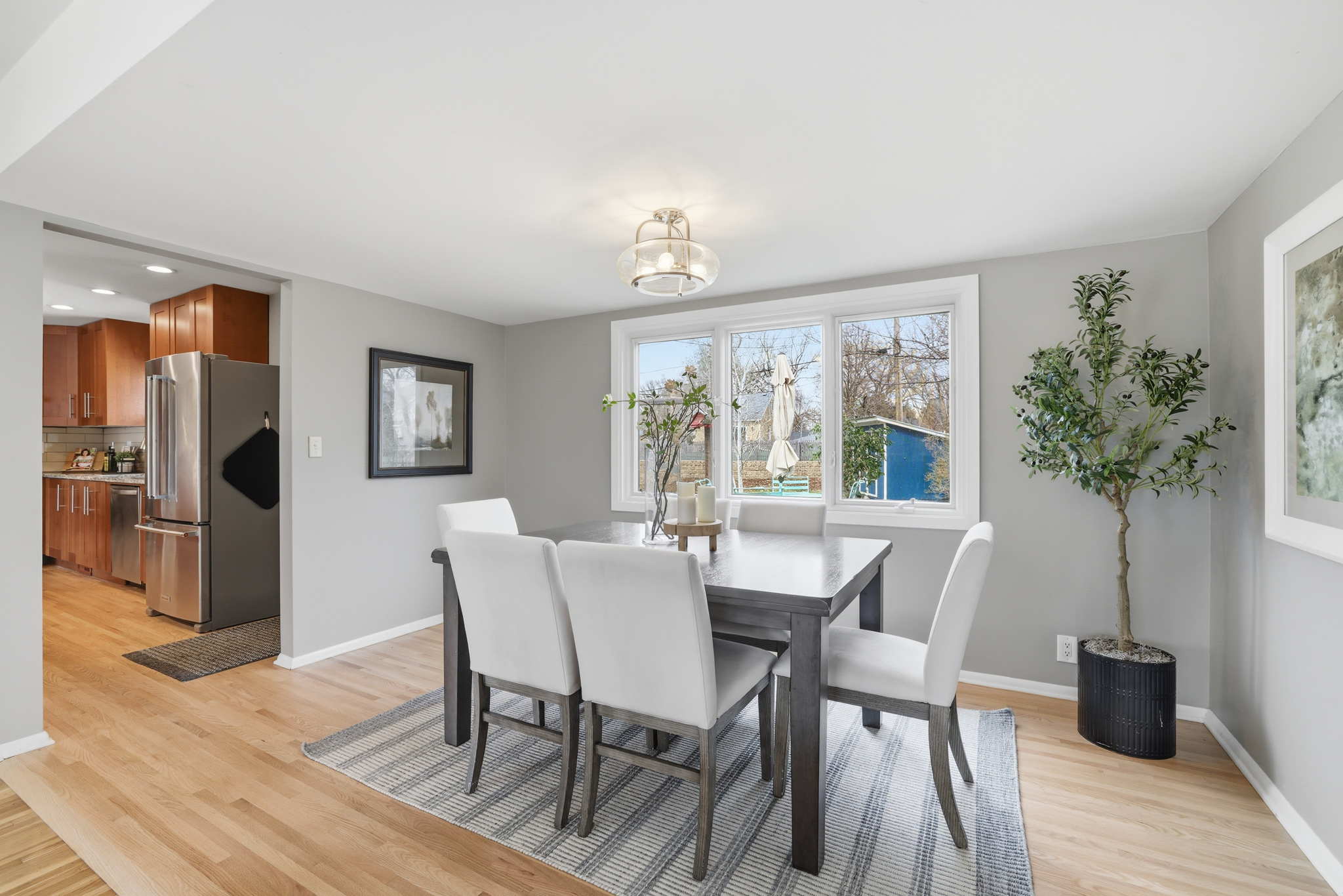 Turnkey mid-century rambler just a block form Cornelia School and Park (playground, fields, tennis courts, hockey rink), and close to Arneson Acres, Fred Richard Park, Lake Cornelia Nature and Trails, and Edina Aquatic Center! This well-kept home features newly refinished hardwood floors and fresh paint throughout. On the main level, enjoy a spacious, light-filled front living room with new gas fireplace, formal dining room, remodeled kitchen with new granite counters, breakfast bar, and stainless appliances, and bonus family room. Three bedrooms on this level as well, with two remodeled baths. Finished lower level features updated LVT flooring, brick fireplace, and large laundry/storage room. All the expensive updates have been done, including new windows on main level, composite shake siding, cedar deck, cedar fence, and water heater. Out back, enjoy a new, oversized cedar deck overlooking the lush, fenced, landscaped yard. One of the best locations in the Cornelia Neighborhood, close to schools, parks, and trails!