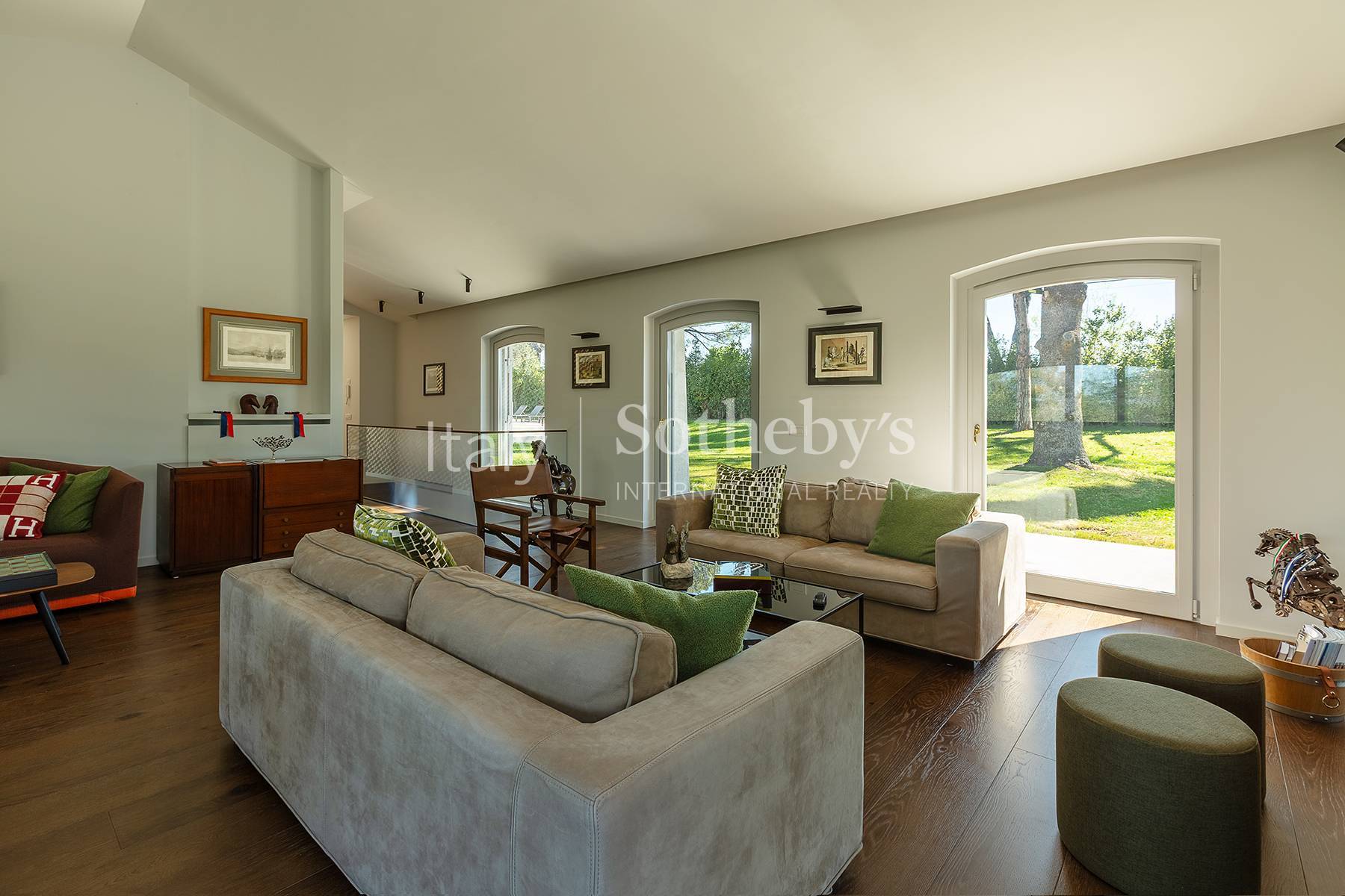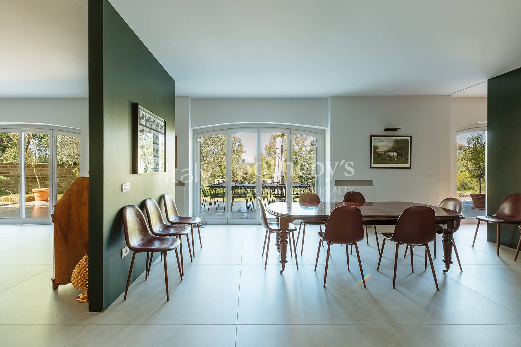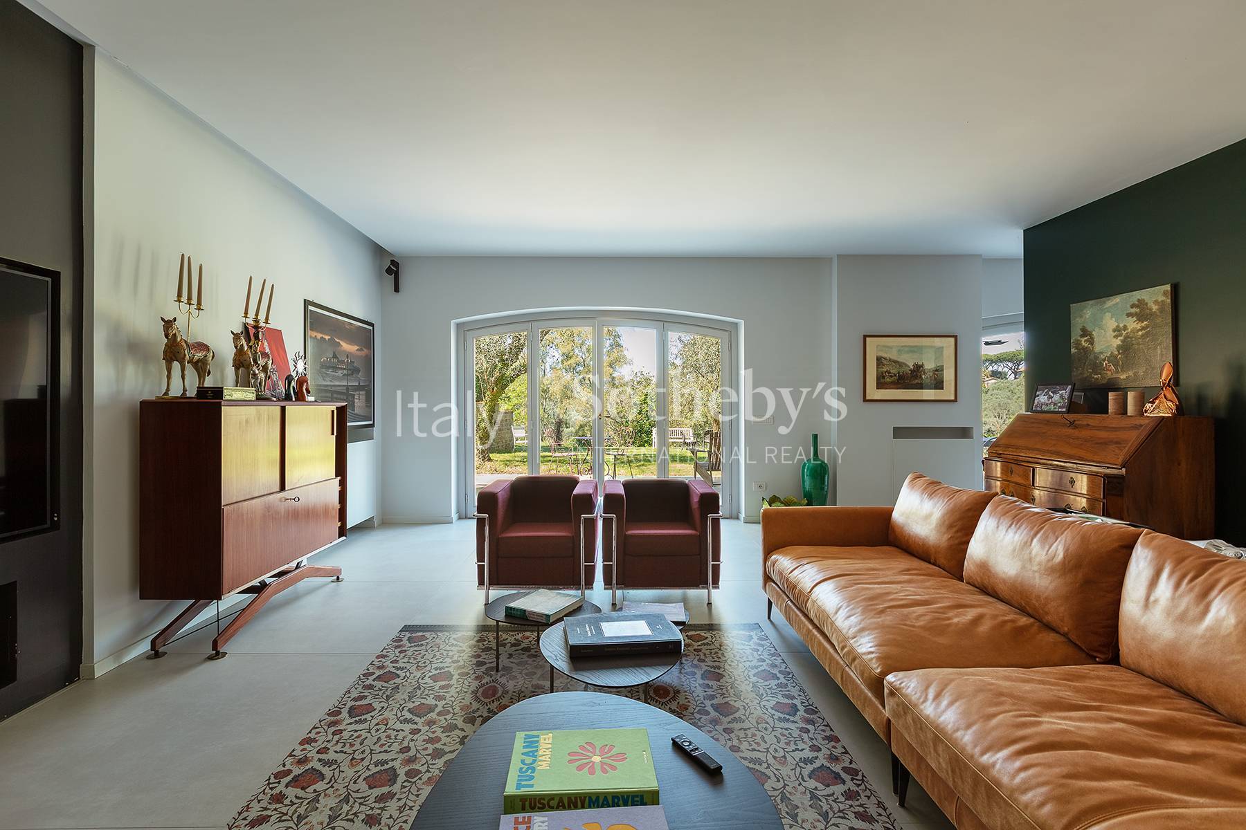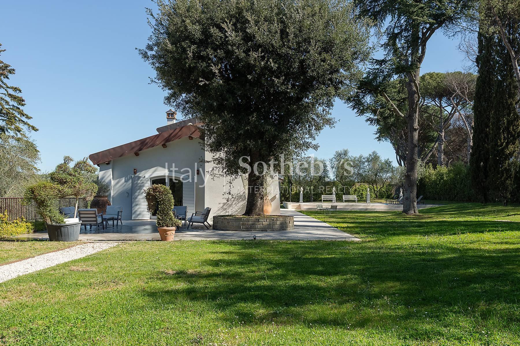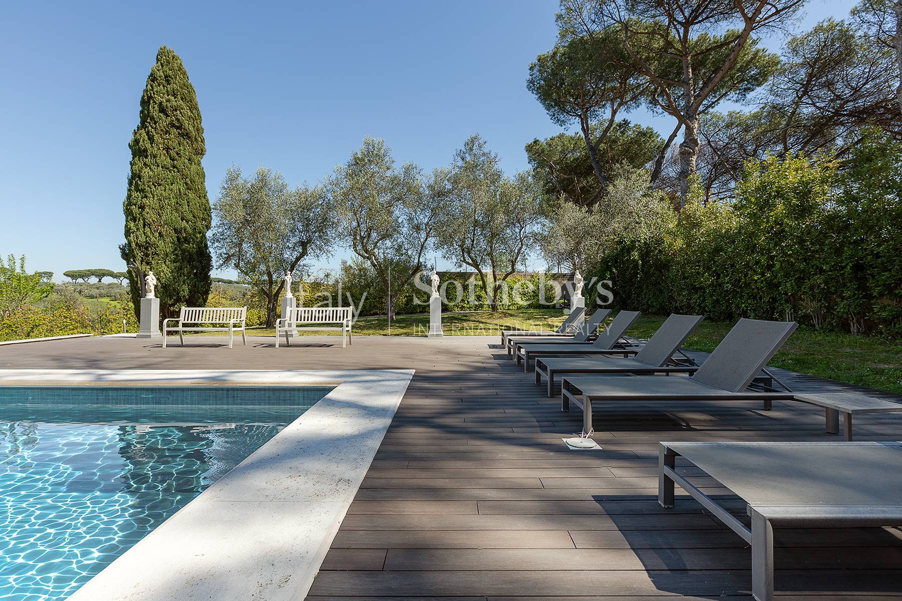 Elegant residence set in complete tranquility and absolute privacy, this beautifully restored former masseria blends timeless charm with refined contemporary living. The property is distinguished by generous reception areas, high-end finishes, and a curated selection of art and design details.Arranged over three levels, the villa offers bright and harmonious interiors, including elegant living rooms with fireplaces, a fully equipped kitchen, and a refined wine cellar area seamlessly connected to the outdoor spaces. The sleeping quarters ensure maximum privacy and feature five bedrooms, each with its own en suite bathroom.Additional amenities include staff quarters, a caretaker's annex, and covered parking spaces, ensuring both comfort and functionality.The landscaped grounds, complete with swimming pool, garden, and private park, create an ideal setting for relaxation and entertaining. A rare and charming private chapel further enhances the uniqueness of the estate.Located along Via Cassia, near Olgiata and approximately 40 minutes from the historic center of Rome, the property benefits from proximity to renowned equestrian facilities, prestigious international schools, and a full range of local amenities.An exceptional country residence, perfectly suited to an international clientele seeking elegance, discretion, and comfort.