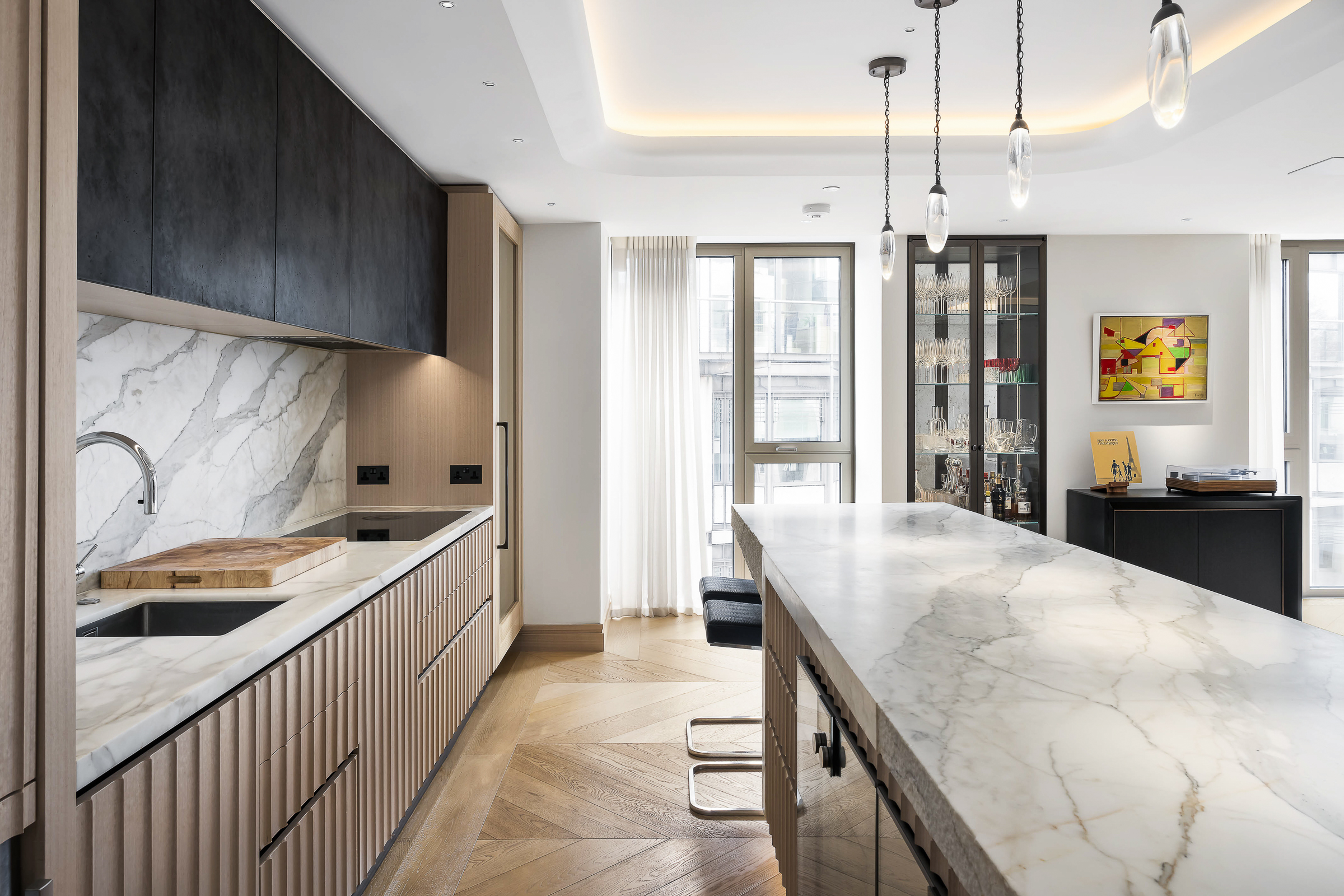 Set on the fifth floor of Mayfair Park Residences, this immaculately finished apartment pairs hotel-level service with a quietly confident, design-led interior. Floor-to-ceiling windows draw in light throughout the day, framing leafy views across Curzon Square and giving the principal living space a sense of openness rarely found in central Mayfair.