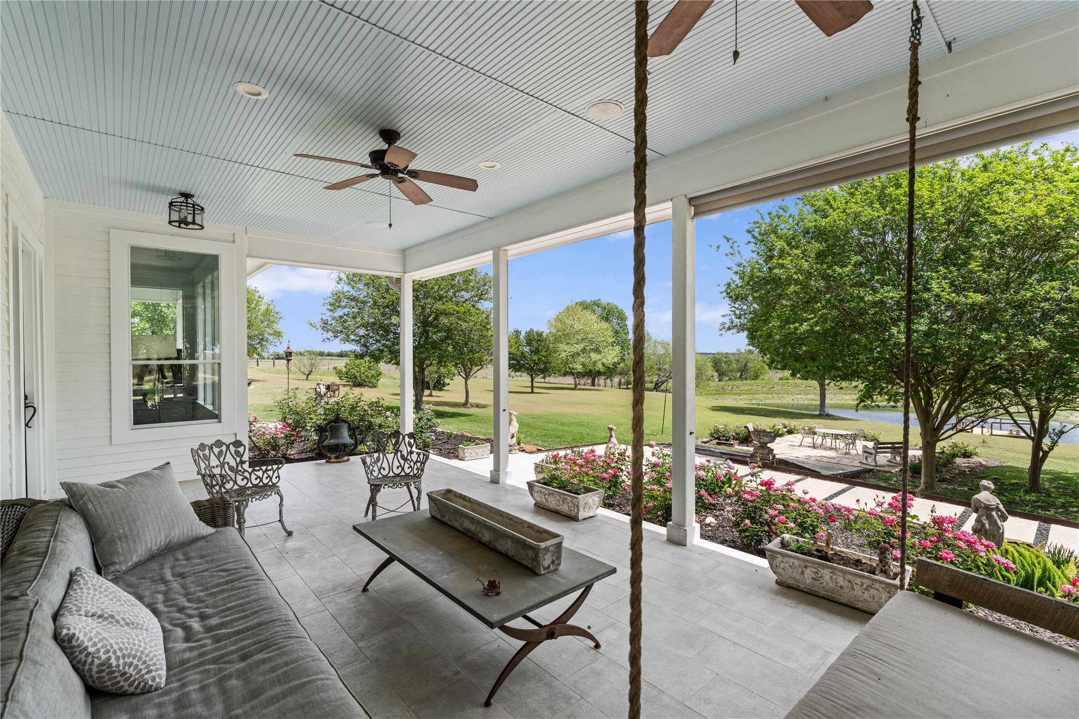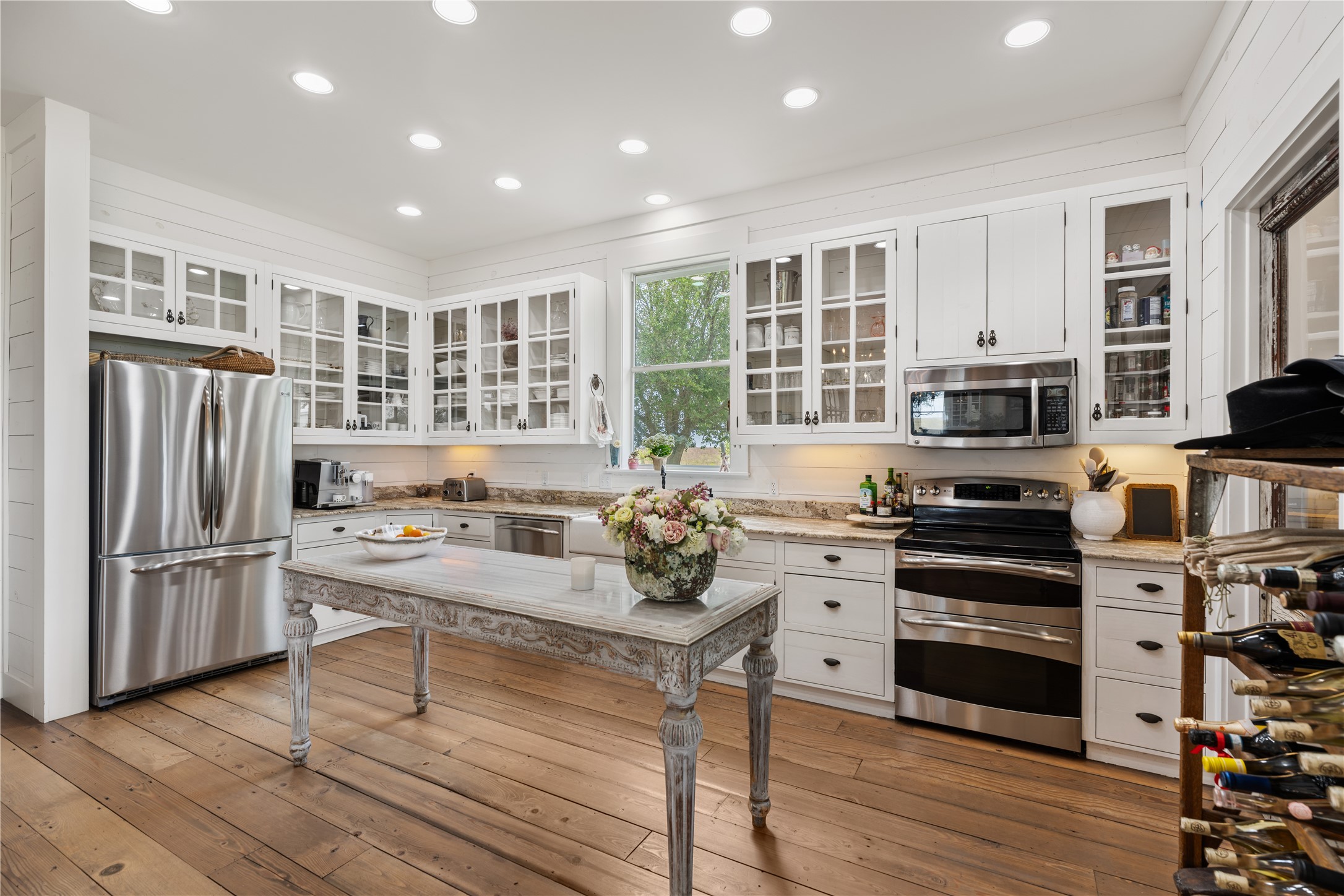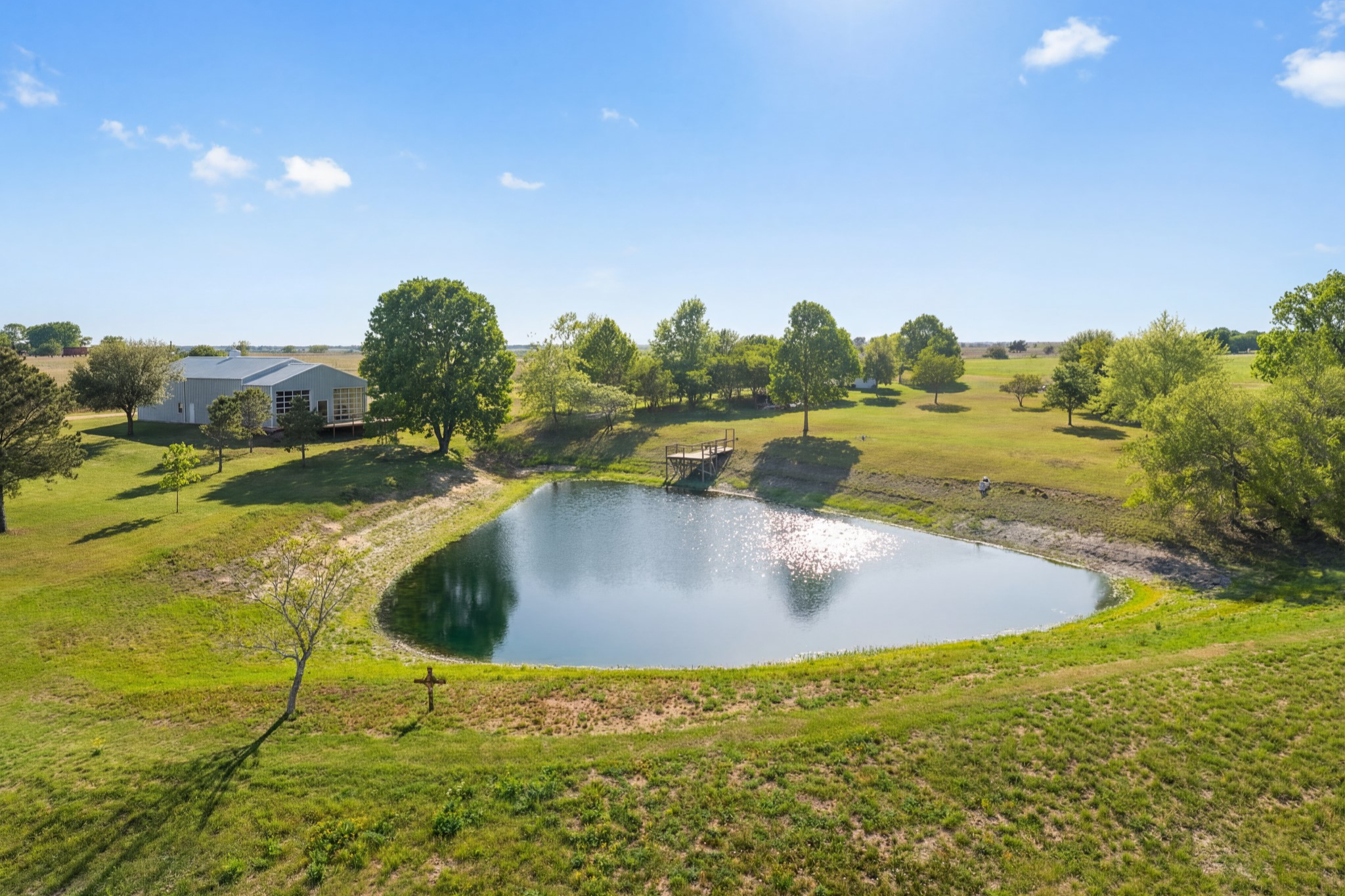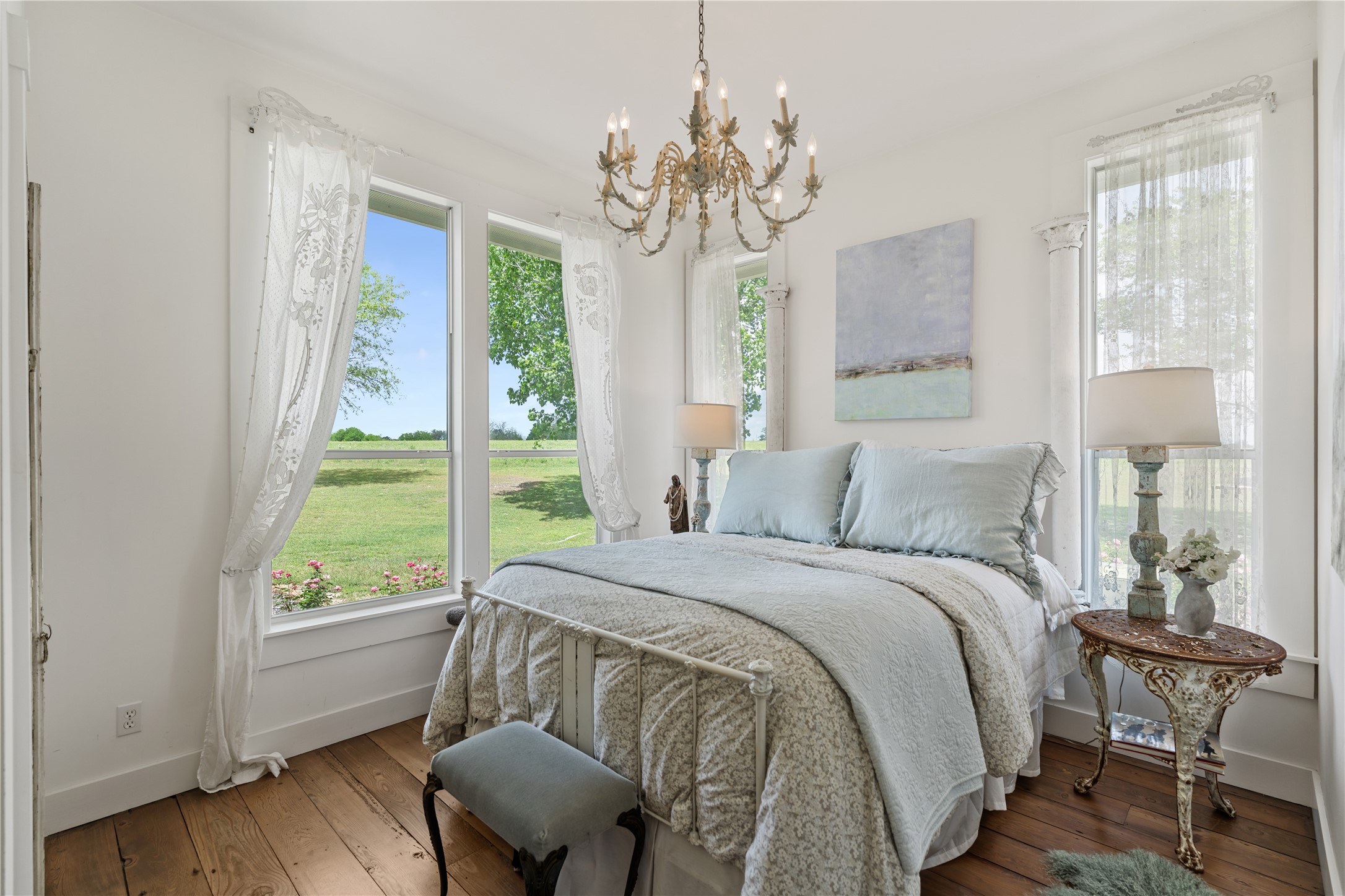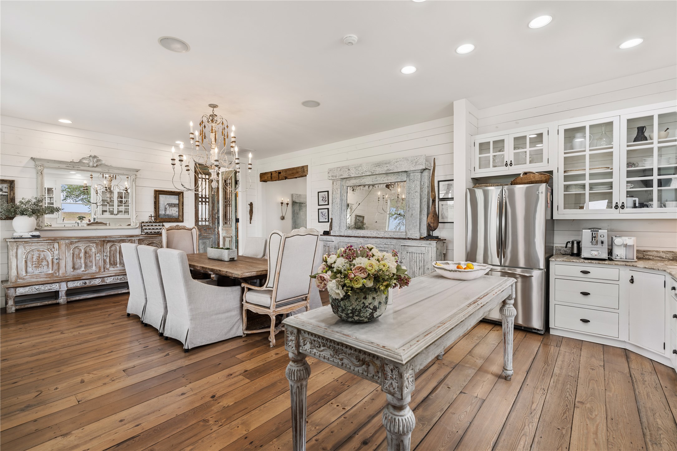 Experience this luxury Texas estate on acreage just minutes from Round Top, offering panoramic 360 degree views and exceptional income potential. The property includes a 4 bed, 2 bath French Country barn home, a designer 2 bed, 2 bath residence, a fully furnished guest house, and a charming 1 bed, 1 bath chapel style cottage ideal for weddings, events, or rentals. Interiors feature hand hewn beams, wide plank wood floors, and custom finishes. A 3,000 sq ft climate-controlled party barn with two story glass doors could easily be converted to living space. Set on one of the highest points in Washington County, the estate offers a fishing pond with pier, fire pit, orchard, raised beds, and a 400 vine Blanc du Bois vineyard. Ag exempt and operating as a successful event venue and B&B, it provides 7 bedrooms, 5 full baths, and 1 half bath, making it a rare turnkey retreat, investment property, or dream country home.