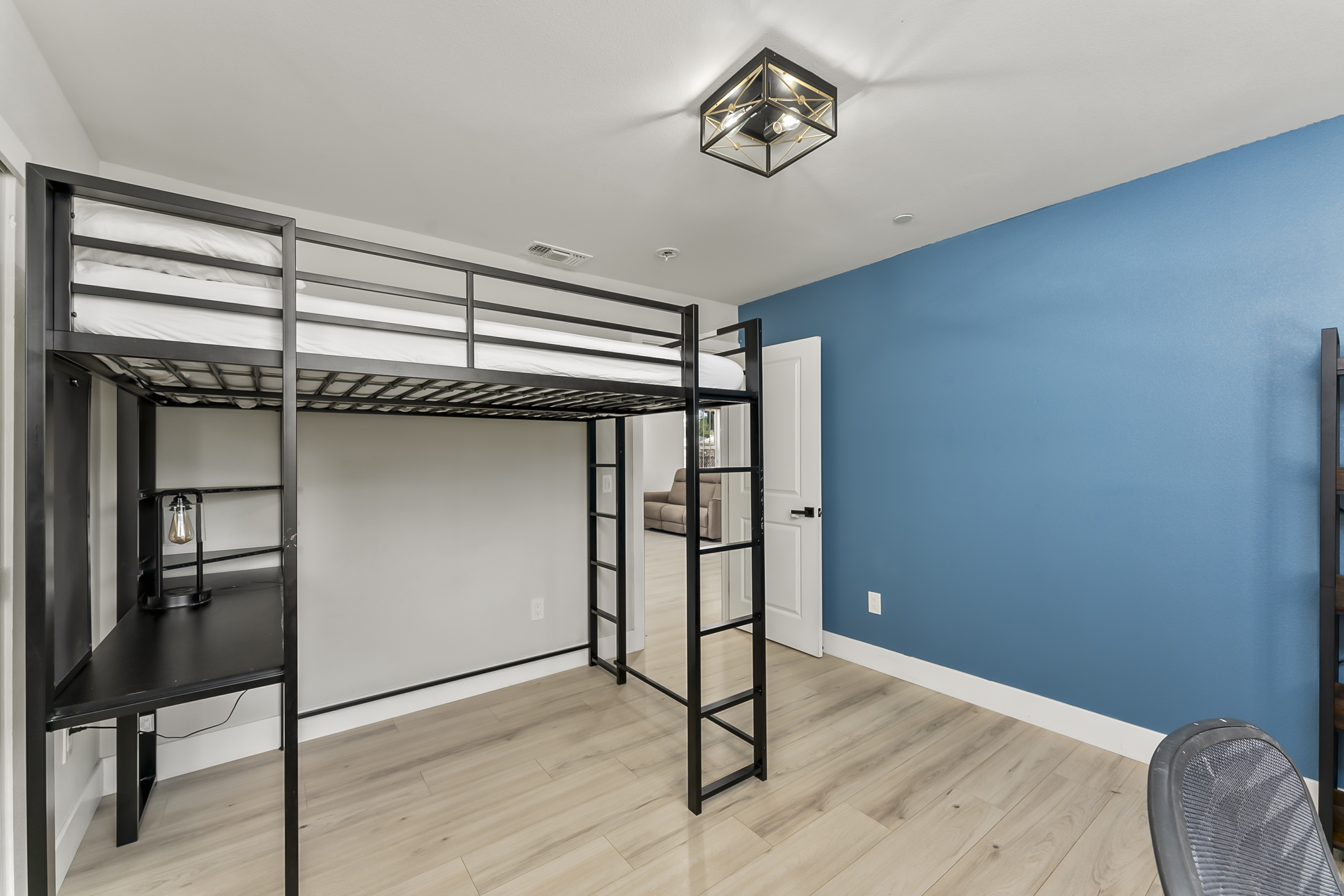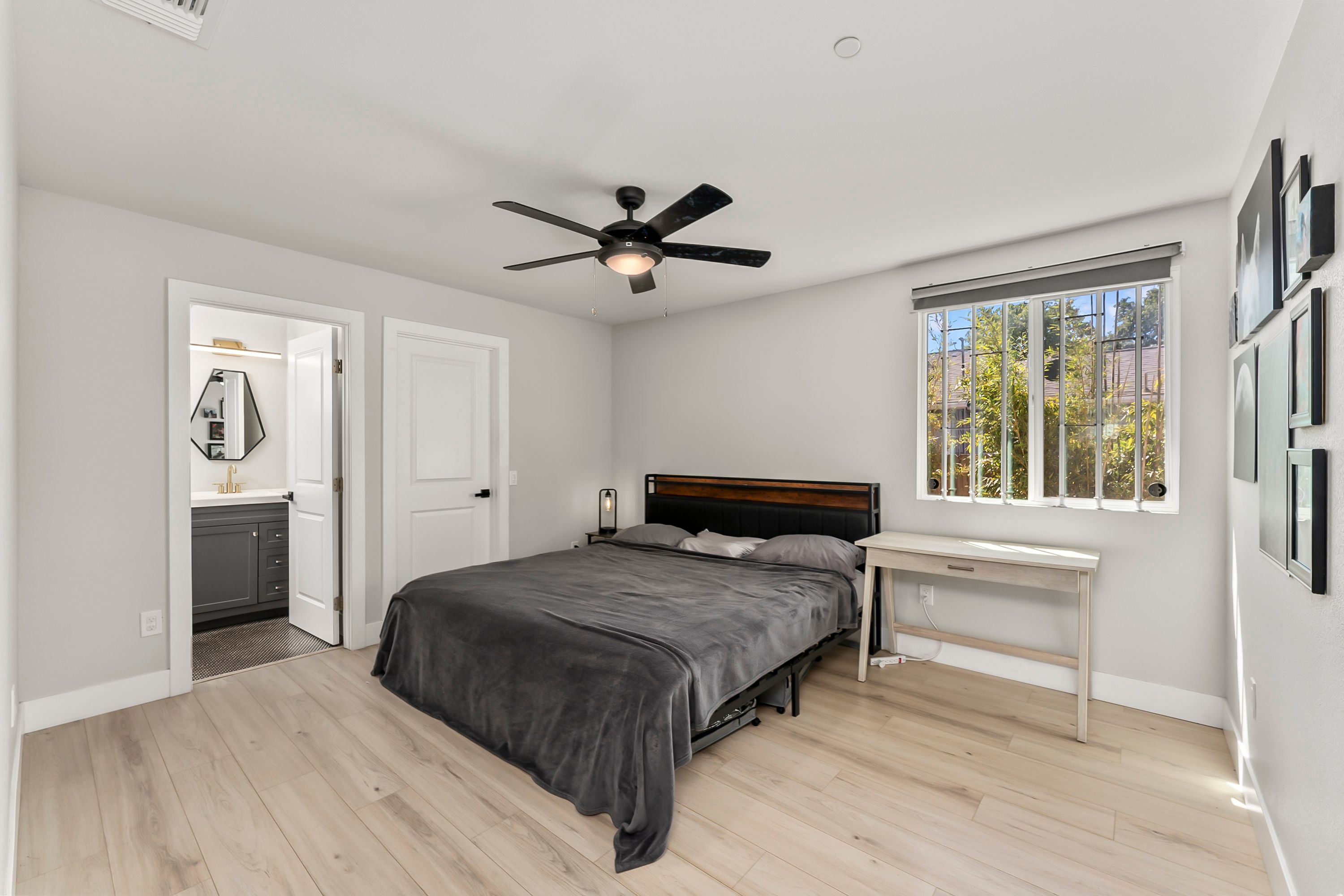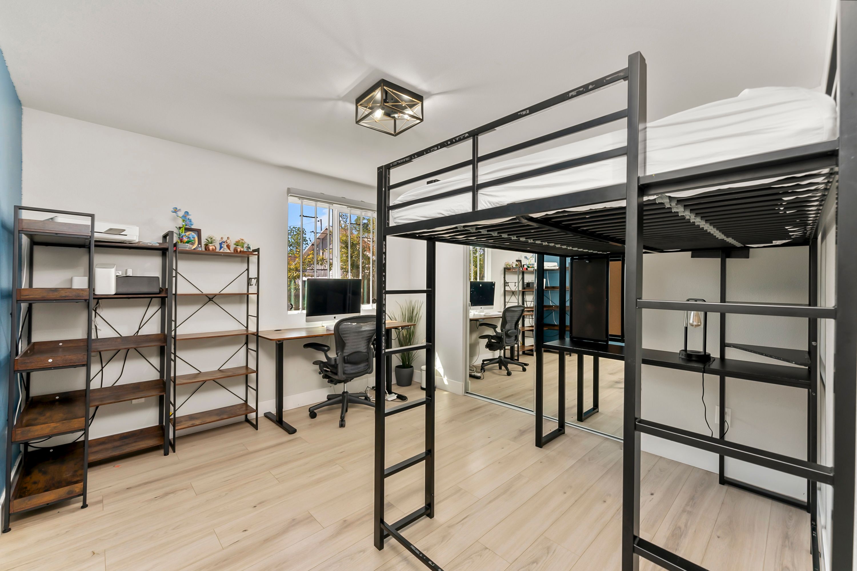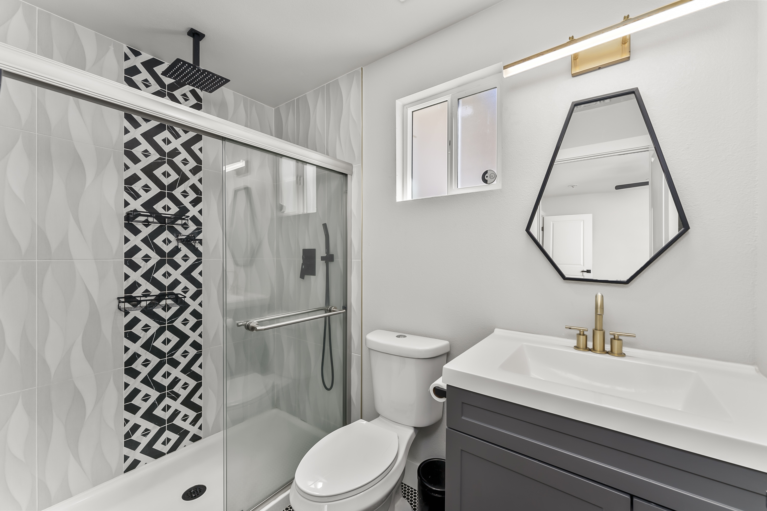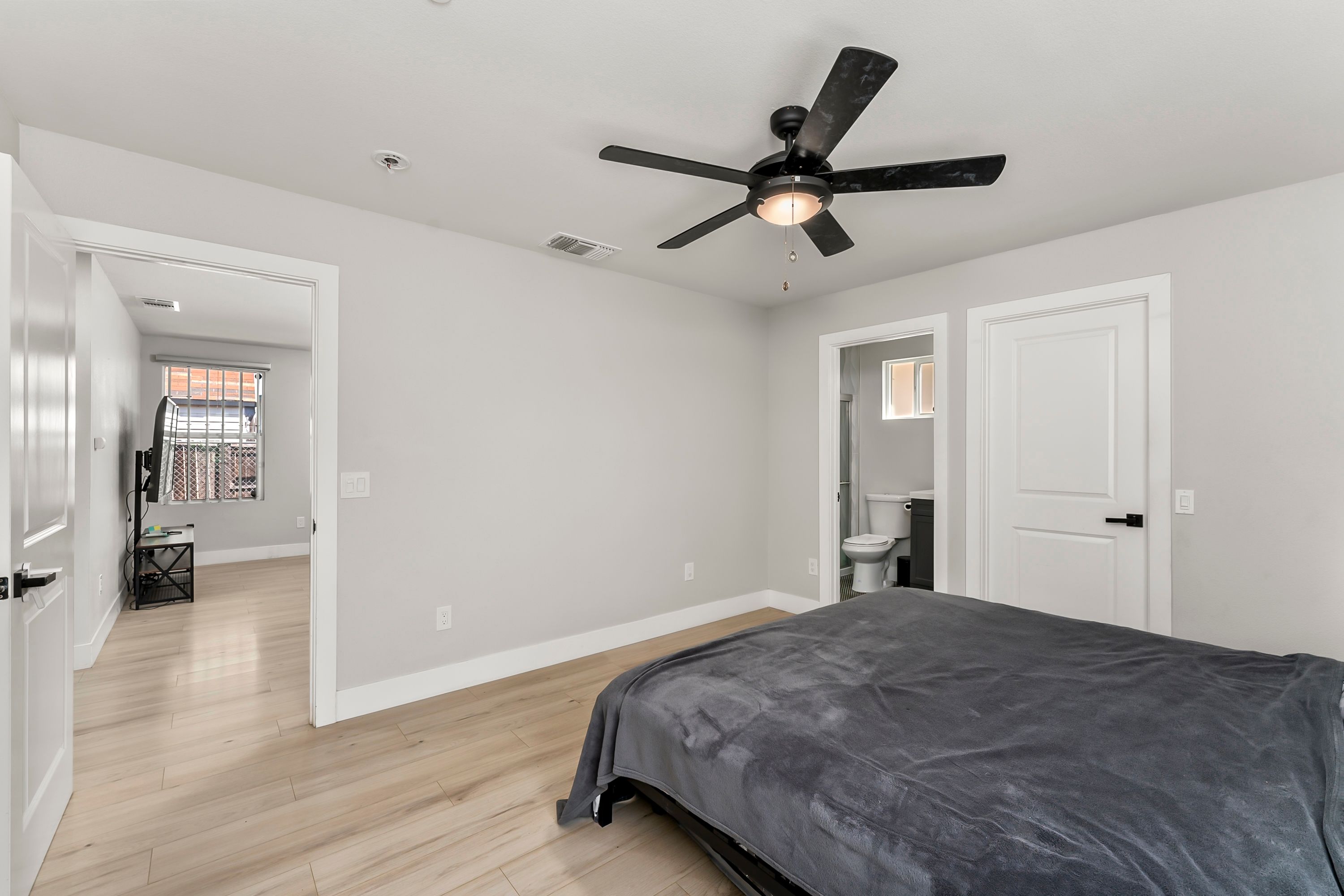 YOUR DREAM BACKYARD. Brand-new pool, freshly landscaped, detached office/home gym, basketball hoop, trampoline, and even an outdoor bathroom to keep your home (and pool) nice and clean. This property checks all the boxes for entertaining guests or for just a peaceful getaway, all in the comfort of your backyard. This 2022 Mid-Century Modern was carefully rebuilt from scratch, featuring a spacious great room with granite countertops and laminate flooring. With 3 Beds, 2 Baths, and a dream backyard, this home is turn-key and ready for you to move in.