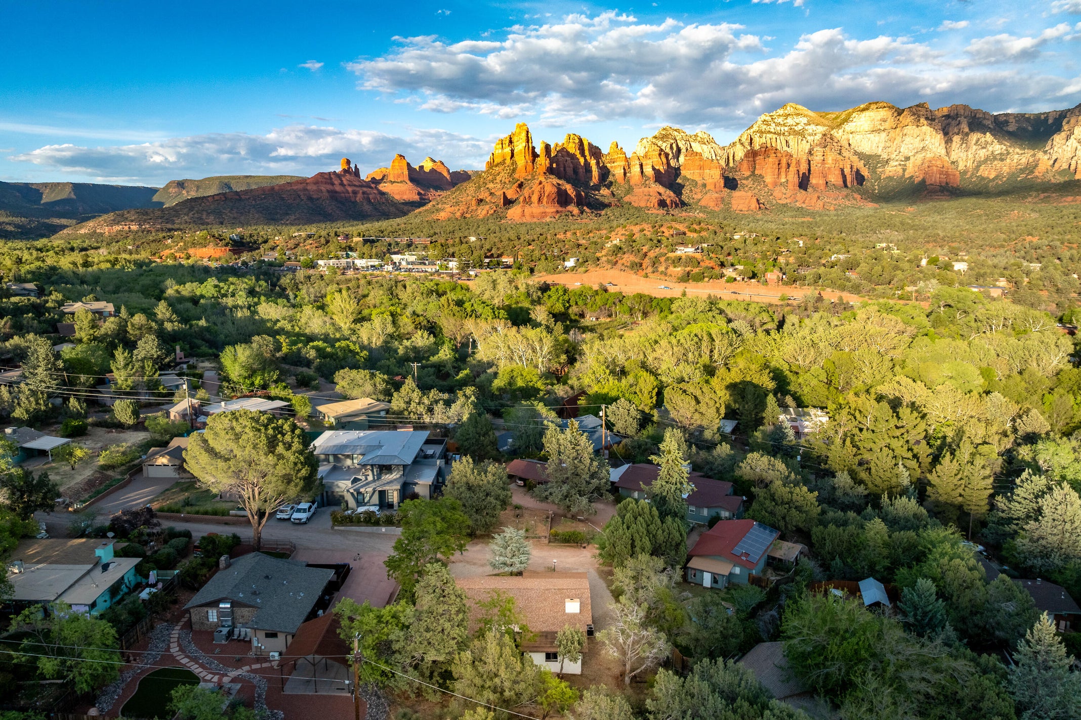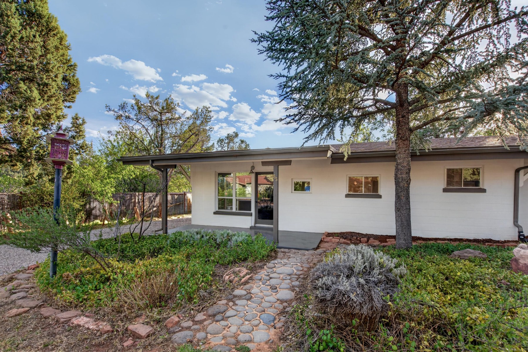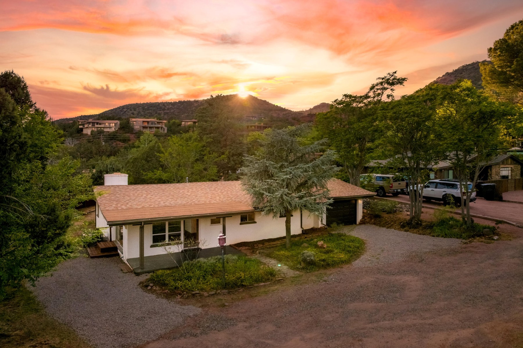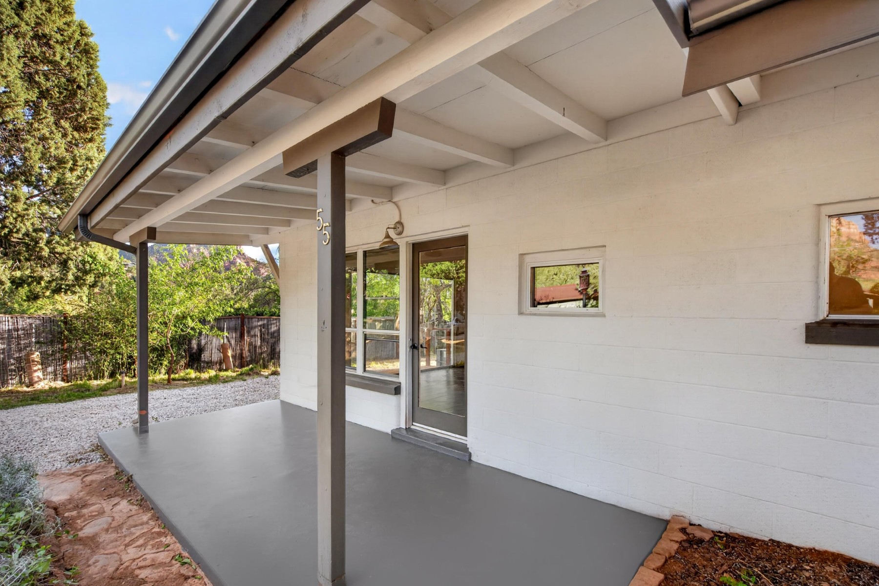 55 Roadrunner Lane offers an exceptional opportunity to own in one of Sedona's most desirable locations. Ideally situated in the heart of the city, the property is just minutes from Uptown Sedona and within walking distance to Tlaquepaque Arts & Shopping Village, providing convenient access to dining, galleries, and local shops. The home captures stunning red rock views and features classic mid-century architecture, highlighted by exposed beam ceilings and a flagstone wood-burning fireplace that creates a warm, inviting vibe. Positioned at the end of a quiet road with no through traffic, the setting offers both privacy and tranquility.Outdoor access is a standout feature, with nearby trails leading to Oak Creek for swimming and fishing. The property is approximately 1/4 mile from Brewer Trailhead, connecting to the Airport Mesa Vortex, ideal for hiking and enjoying Sedona's iconic scenery. Additionally, the recently completed park on Brewer enhances this neighborhood's appeal and livability.This property combines location, character, and access to Sedona's natural amenities in a highly desirable setting. No HOA!