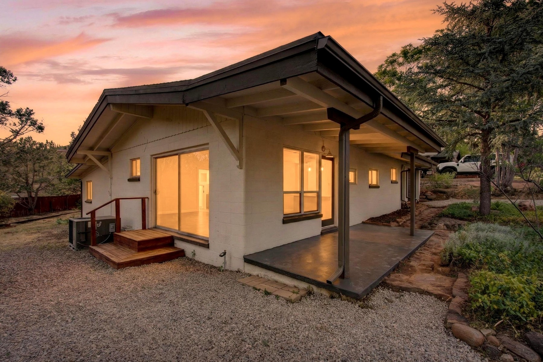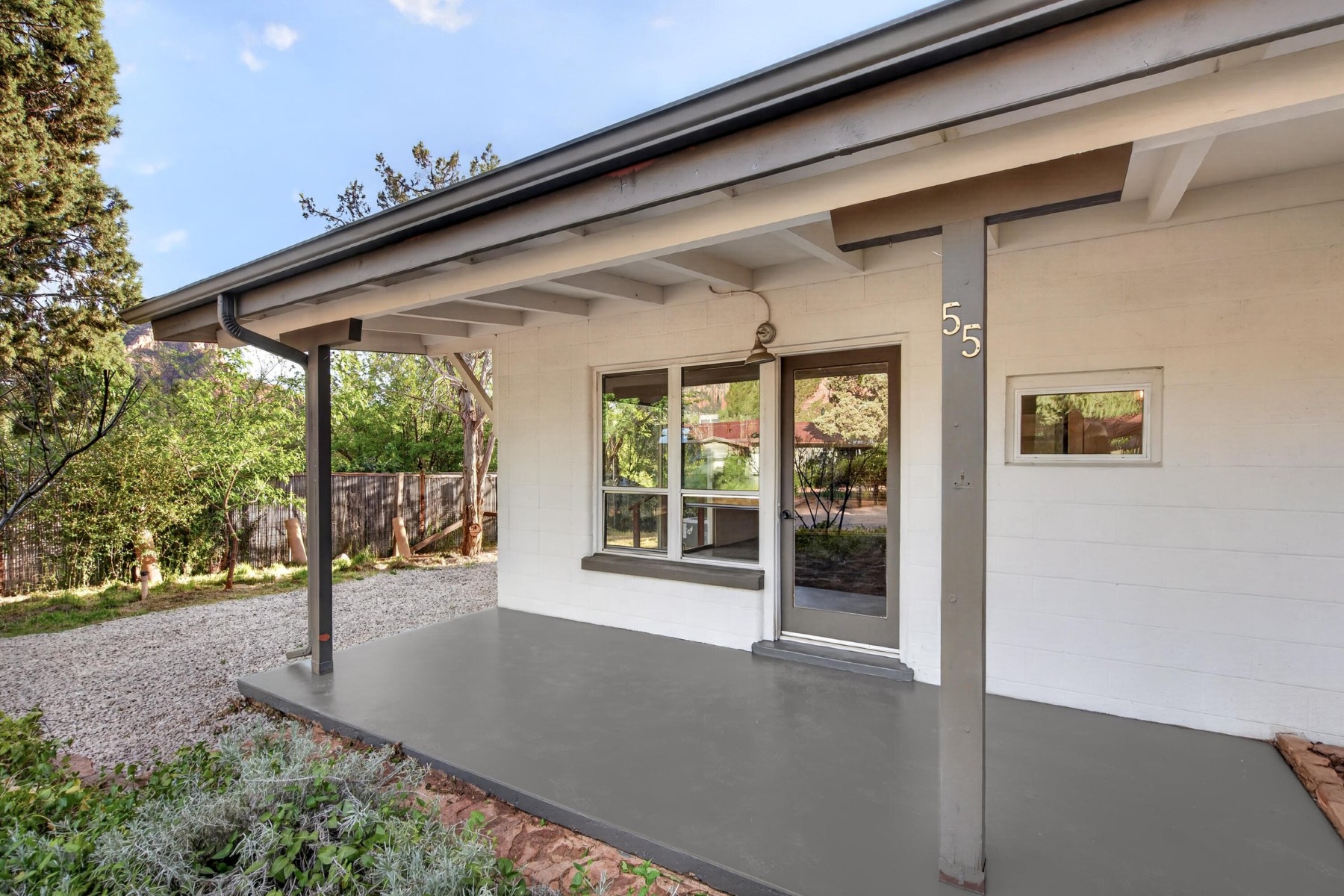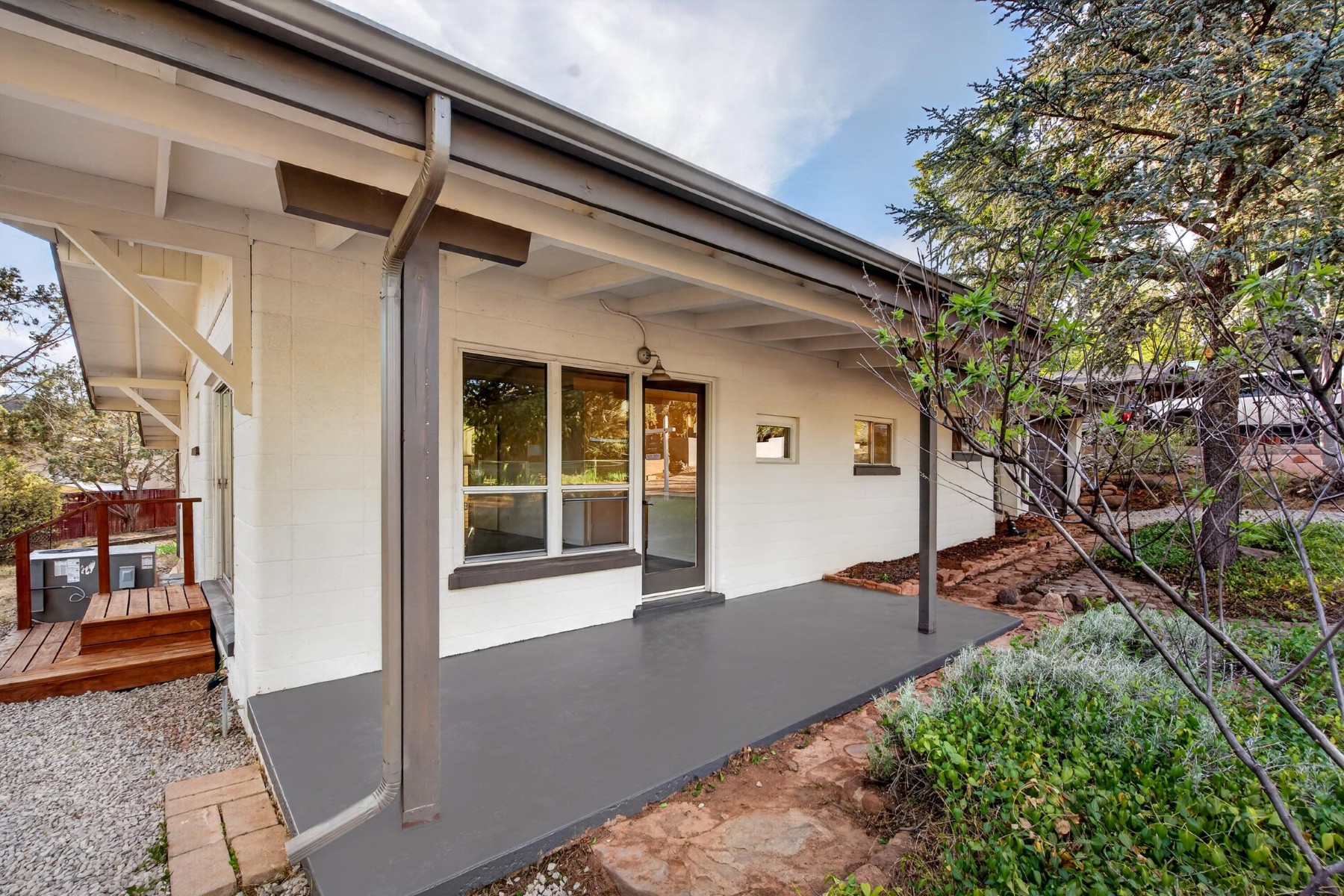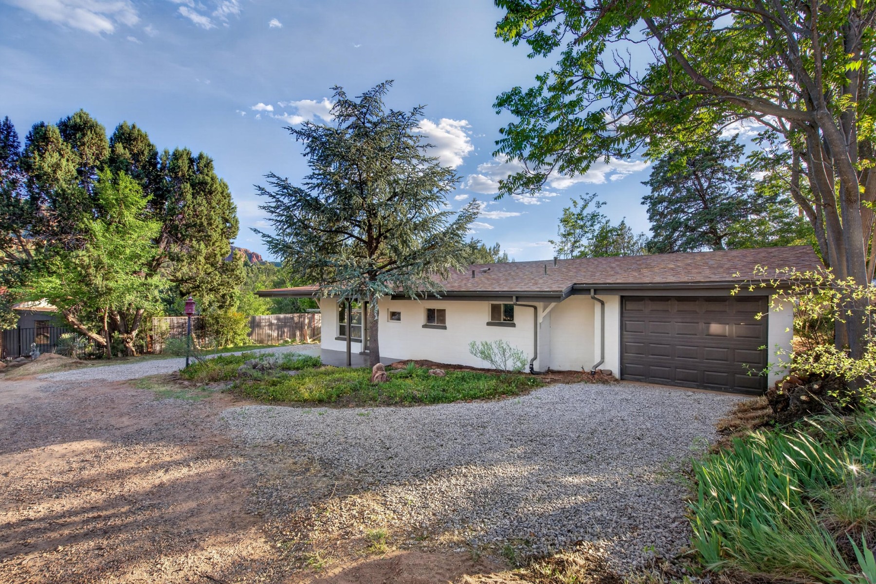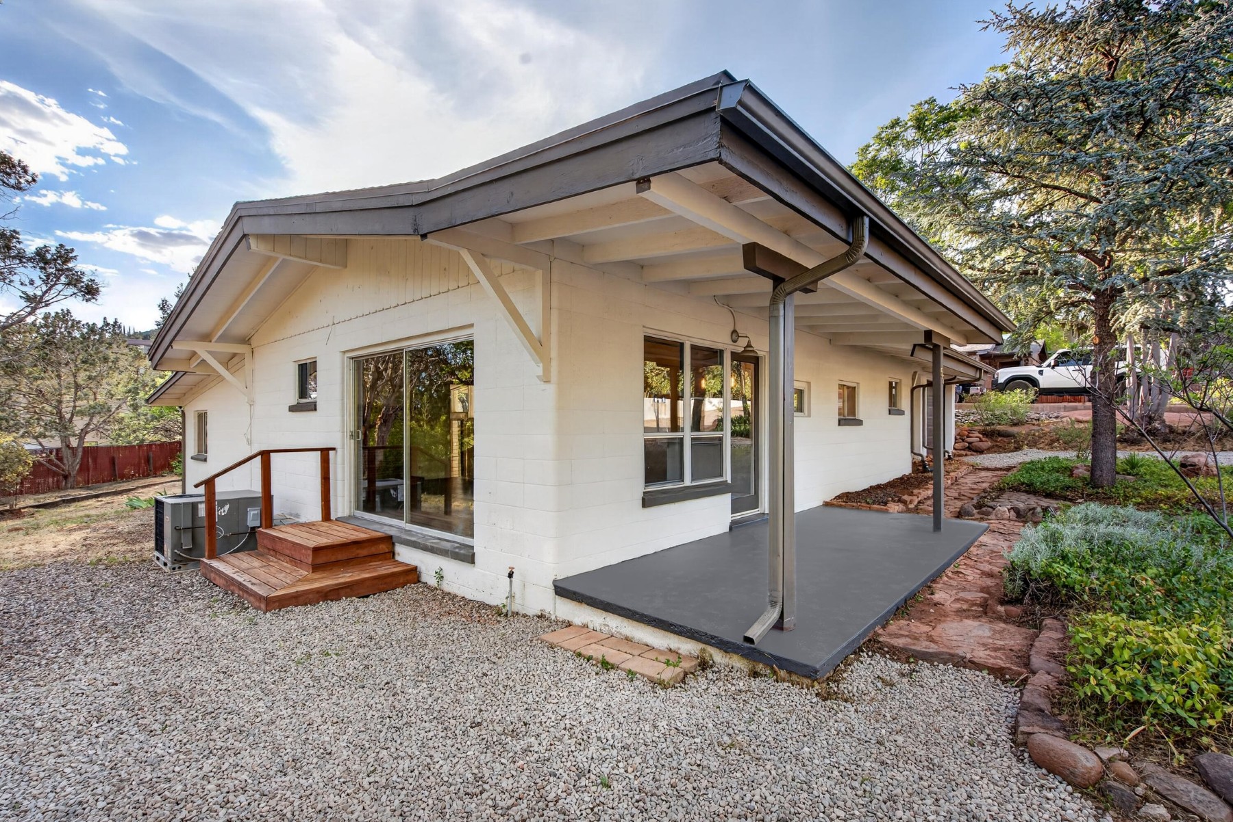 55 Roadrunner Lane offers an exceptional opportunity to own in one of Sedona's most desirable locations. Ideally situated in the heart of the city, the property is just minutes from Uptown Sedona and within walking distance to Tlaquepaque Arts & Shopping Village, providing convenient access to dining, galleries, and local shops. The home captures stunning red rock views and features classic mid-century architecture, highlighted by exposed beam ceilings and a flagstone wood-burning fireplace that creates a warm, inviting vibe. Positioned at the end of a quiet road with no through traffic, the setting offers both privacy and tranquility.Outdoor access is a standout feature, with nearby trails leading to Oak Creek for swimming and fishing. The property is approximately 1/4 mile from Brewer Trailhead, connecting to the Airport Mesa Vortex, ideal for hiking and enjoying Sedona's iconic scenery. Additionally, the recently completed park on Brewer enhances this neighborhood's appeal and livability.This property combines location, character, and access to Sedona's natural amenities in a highly desirable setting. No HOA!