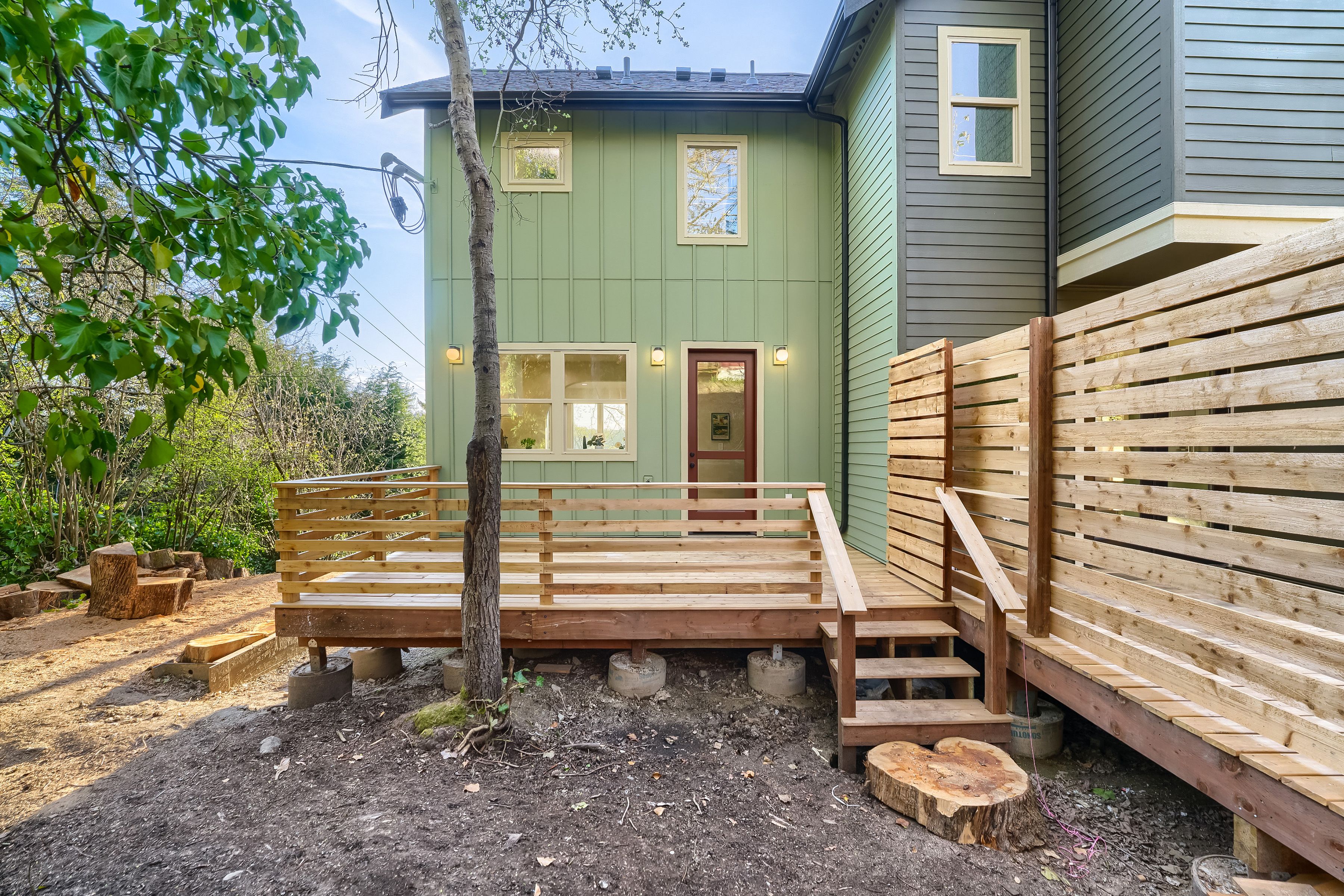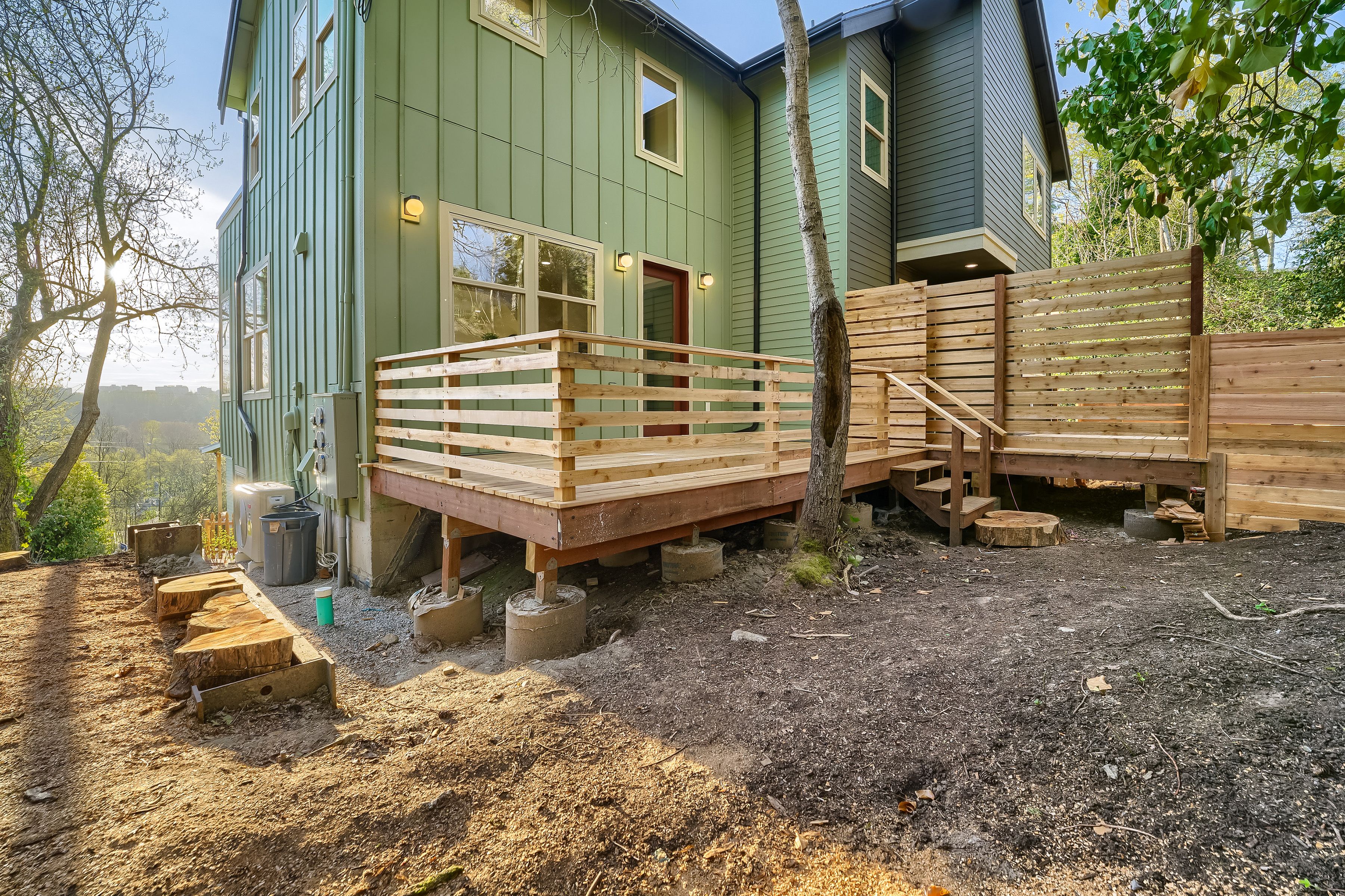 Crafted for entertaining and everyday comfort, this Pigeon Point home unfolds into bright, light-filled interiors where an open-concept design sets the tone. The kitchen anchors the main level with refined, modern finishes, flowing naturally into the living and dining spaces—an inviting backdrop for both lively gatherings and quiet nights in. From these main living areas, expansive windows frame tranquil views of the golf course, bringing in a sense of openness and green space. There’s a quiet magic woven throughout. Graceful coved archways soften each transition, while a beautifully crafted wood log staircase winds from the side yard to the backyard like a hidden path from another era. The deck, set against the woods, becomes a natural retreat—where mornings feel hushed and evenings linger a little longer—enhancing the home’s subtle treehouse sensibility and connection to nature. Designed for efficient, elevated living, the home offers two well-appointed bedrooms, including a serene primary suite that feels tucked away and private. Clean lines and intentional finishes carry throughout, creating a cohesive, polished feel without excess. A detached one-car garage adds everyday convenience, while the setting captures a quiet residential atmosphere, grounded by natural beauty and the lush. Come and be enchanted by a home that feels lifted from the pages of a storybook