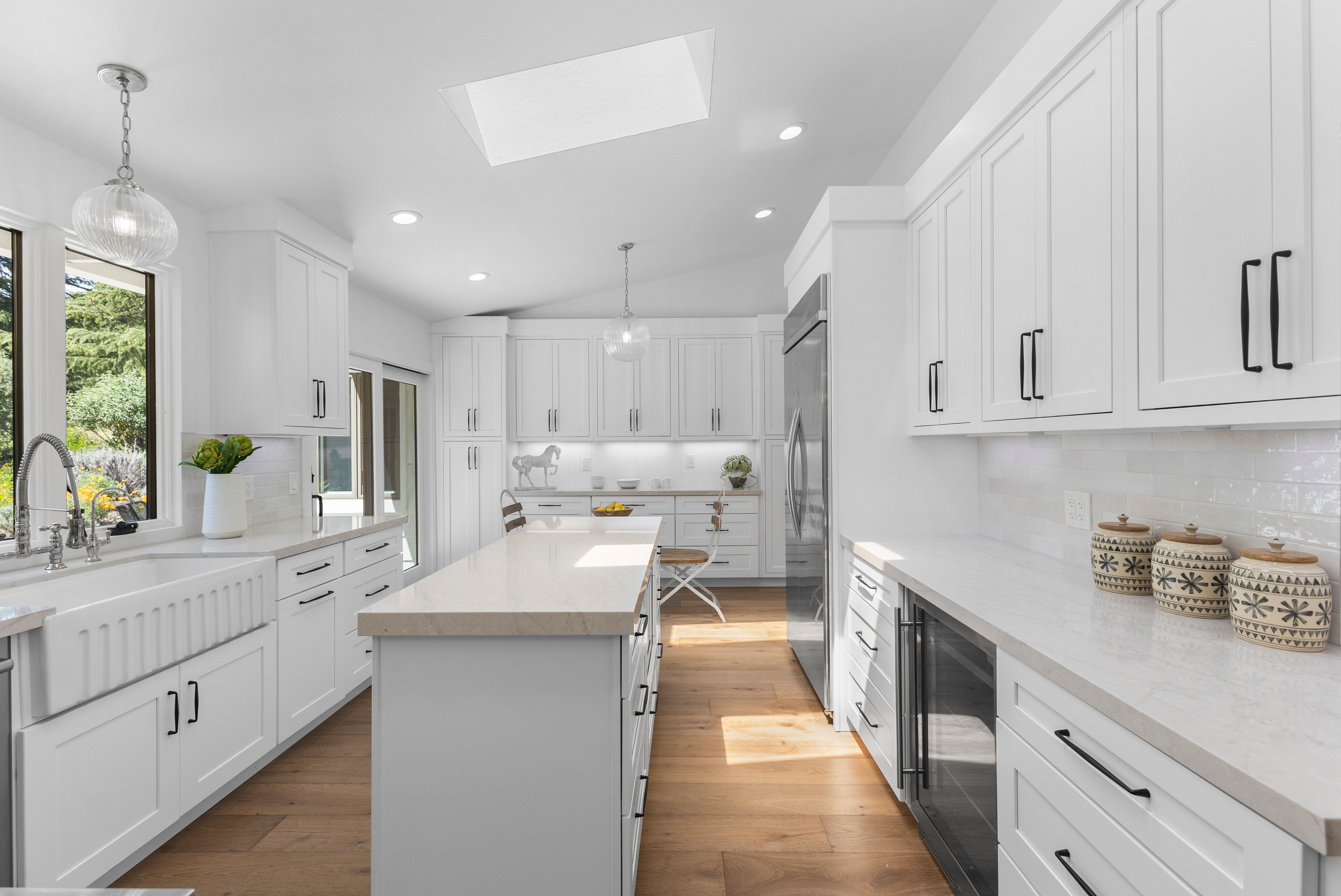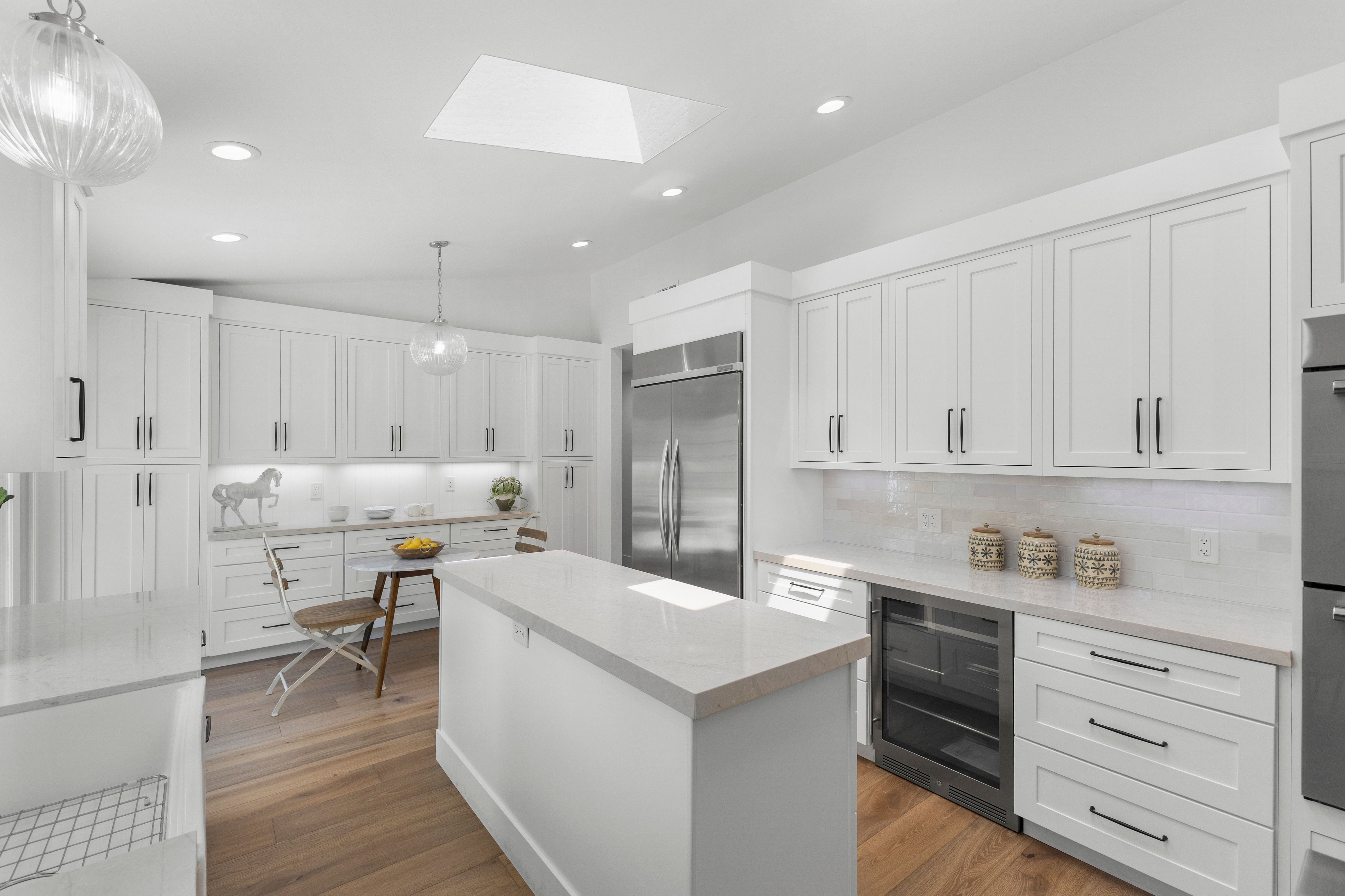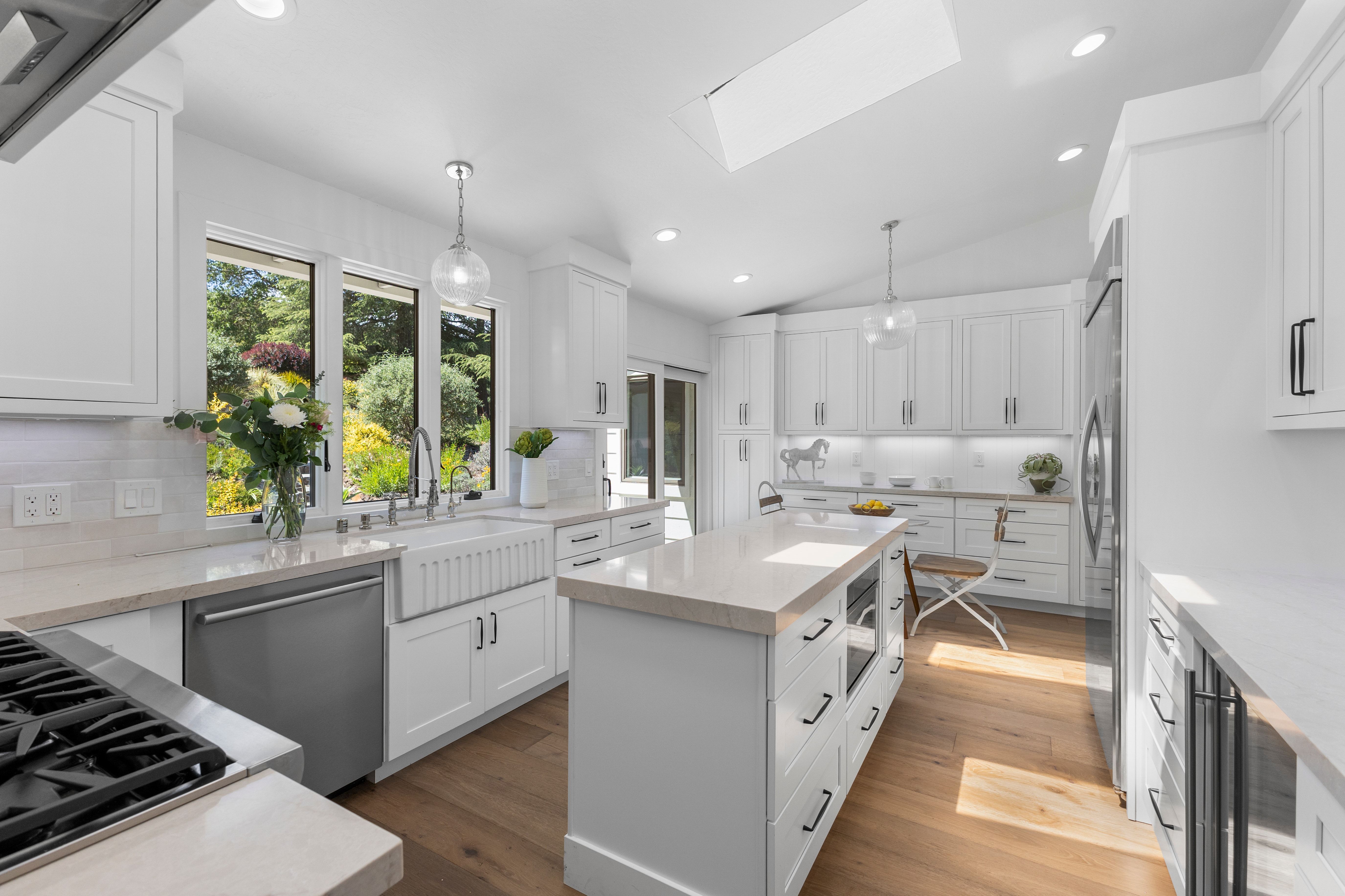 Prime Westside Danville court location on a rare 0.60± acre lot. This completely renovated residence blends quality craftsmanship with thoughtful design throughout. The custom kitchen features bespoke cabinetry, Taj Mahal quartzite slab countertops, a Thermador range, designer pendant lighting, and a custom tile backsplash. Bathrooms have been finished with high-end tile work, including a luxurious primary suite with a spacious stall shower, custom vanity, and heated towel warmer. Hardwood flooring runs throughout the home, enhancing the warm, cohesive feel. Additional improvements include new designer lighting fixtures throughout, fresh interior and exterior paint, and new interior doors. The expansive family room opens seamlessly to a resort-style backyard with pool and multiple walking paths, creating a private setting ideal for both everyday living and entertaining. A detached casita offers flexible space for a home office or gym. A rare opportunity in one of Danville’s most sought-after Westside locations.