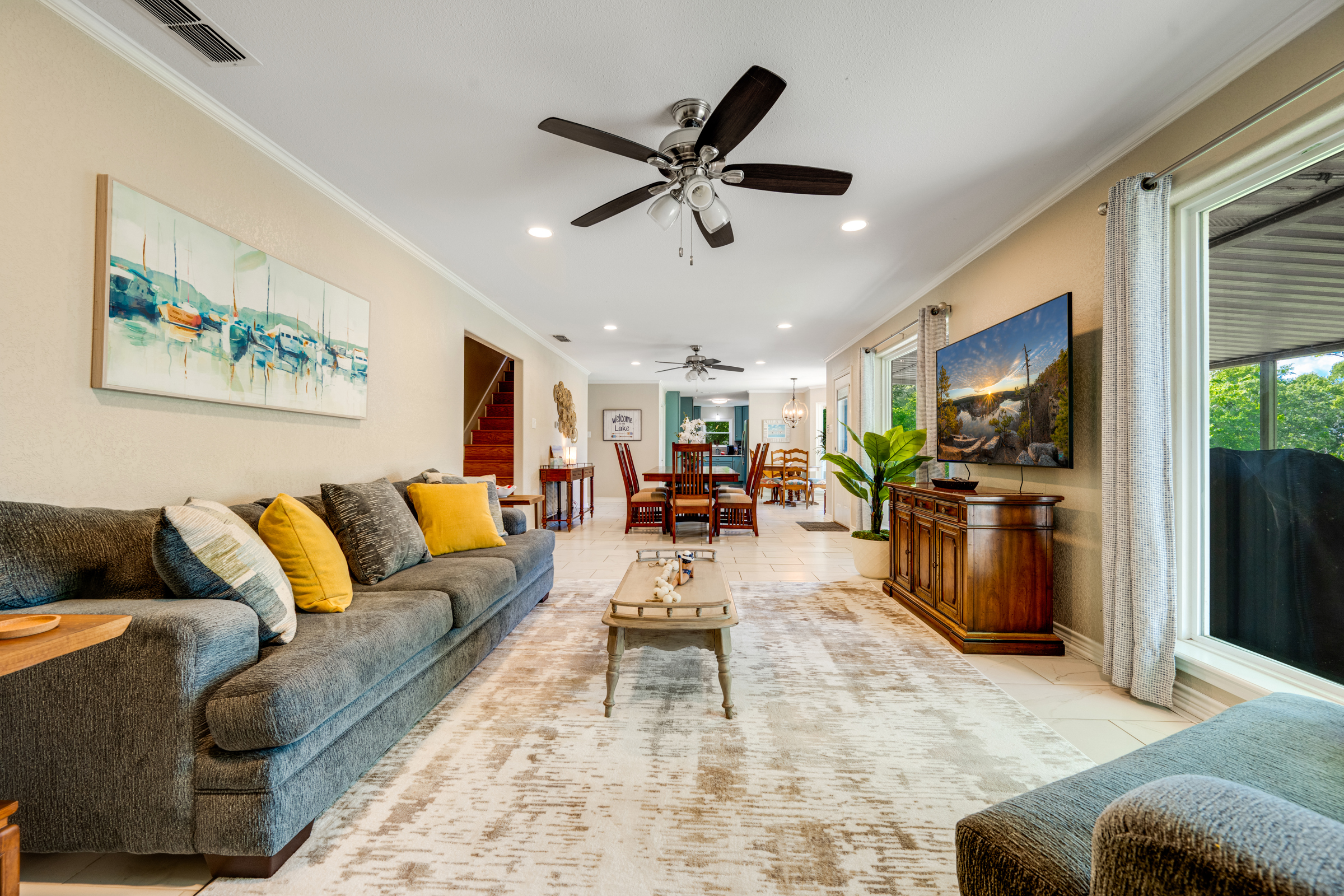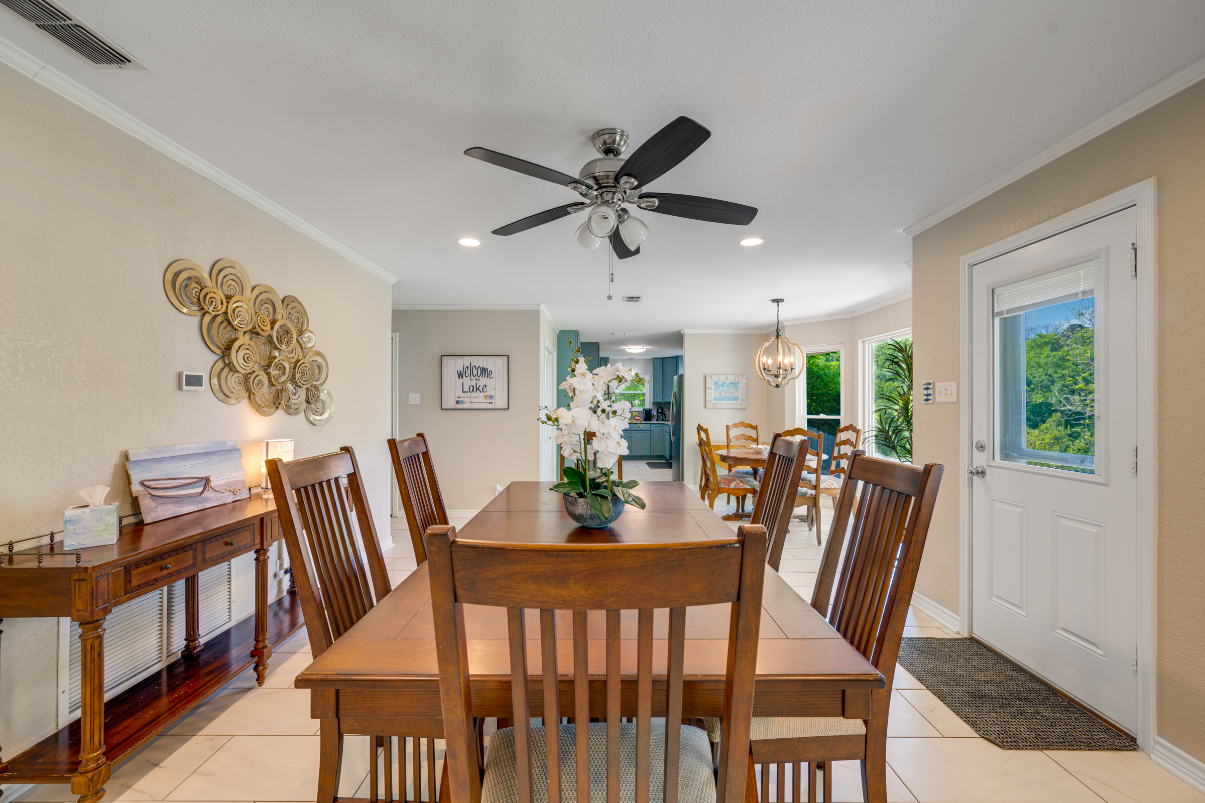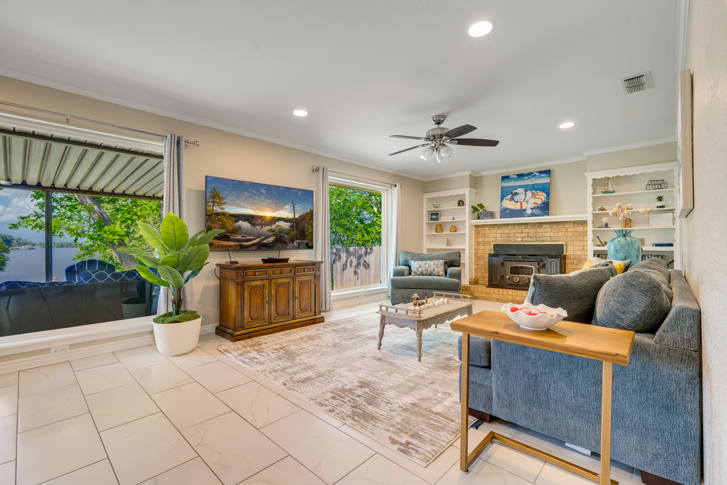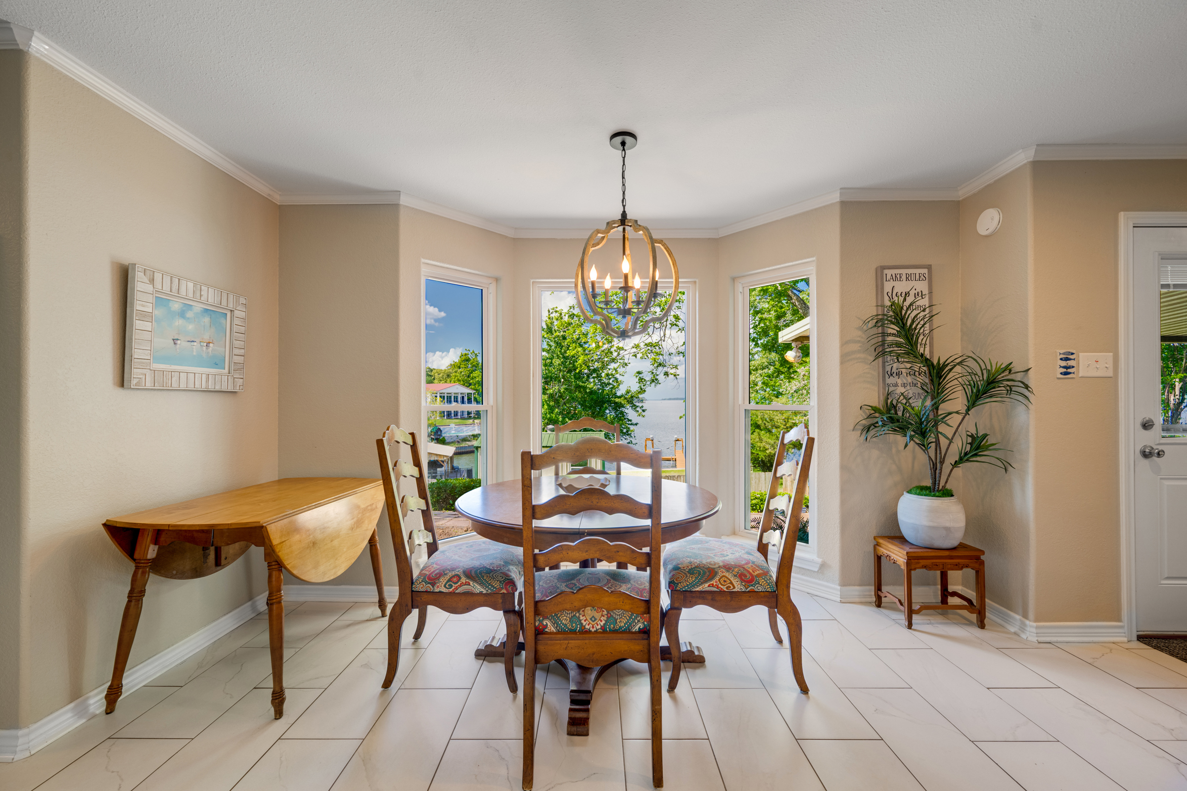 Imagine life here at the lake! Recently updated 3-bedroom, 3 bath, 2,320 sq foot home with amazing views of Lake Palestine in Frankston. This location in the established neighborhood of Three Points Estates offers a turnkey option for you with elegant furnishings allowing for sleeping space for 10! The floorplan functions well with living, dining and kitchen in one area, all with views of the lake. Two bedrooms and two bathrooms on the main level and the bunk room with a third bathroom upstairs. Ample space inside and out, with a covered patio in the back overlooking the sunsets and the stars. The home comes with a shed for your toys and a boat dock with a slip and boat lift. Property has an existing bulkhead and concrete sidewalk along the water. Water depth at end of boat dock is 5'. Adding a cover to the boat dock could be done easily. Lake Palestine is the largest lake in the area and offers easy access to Tyler and all of its offerings including restaurants, shopping and medical facilities.