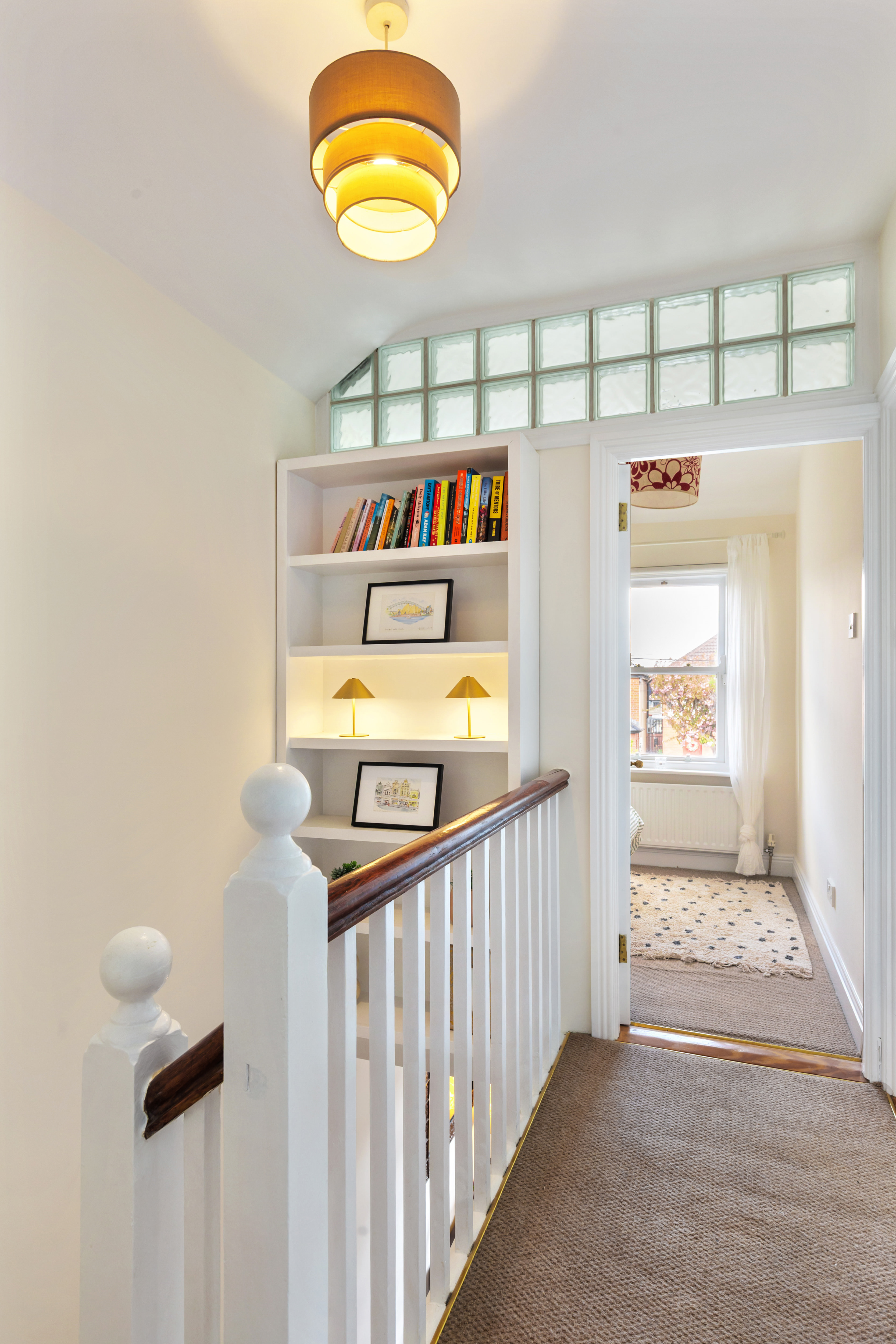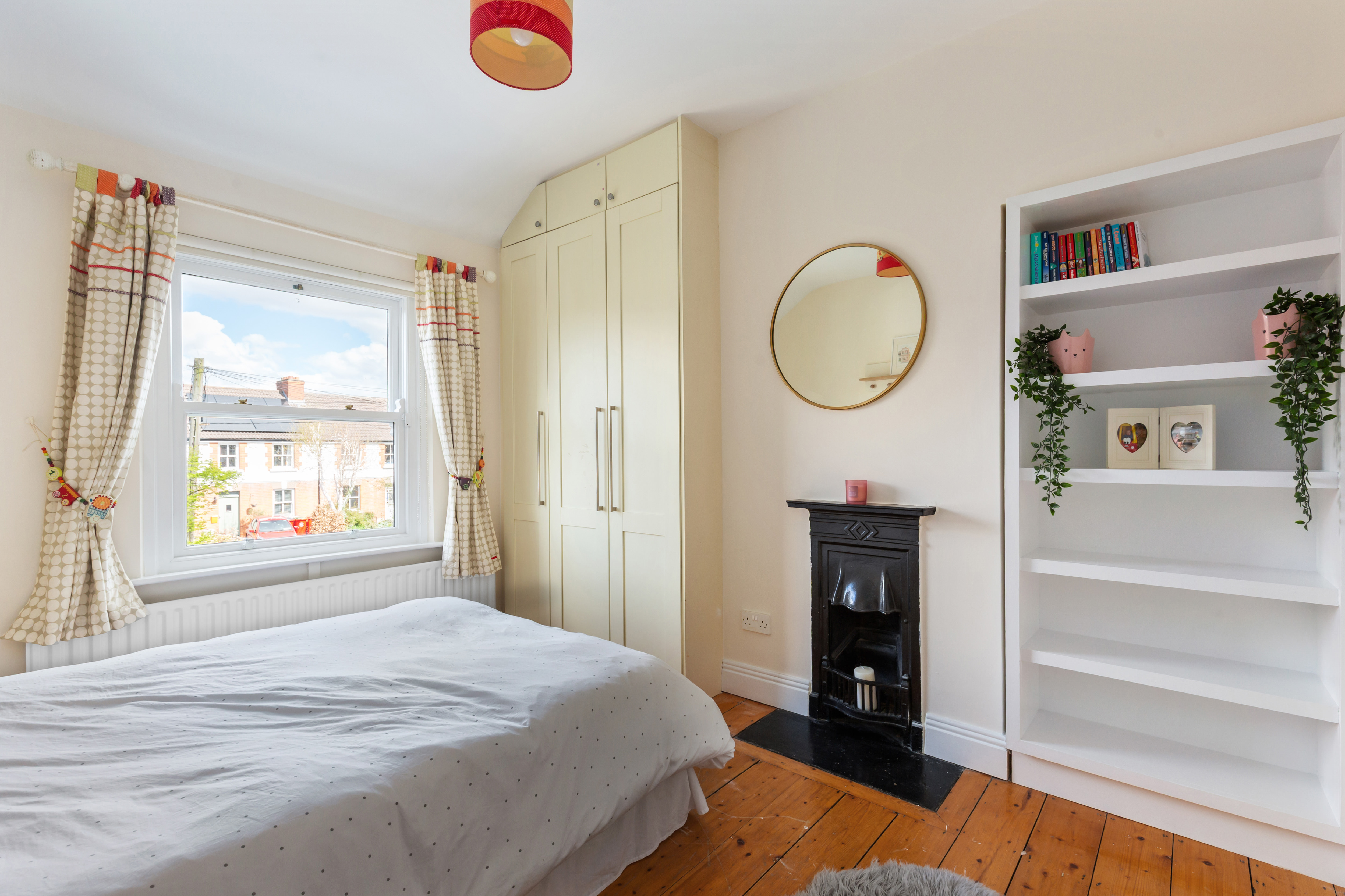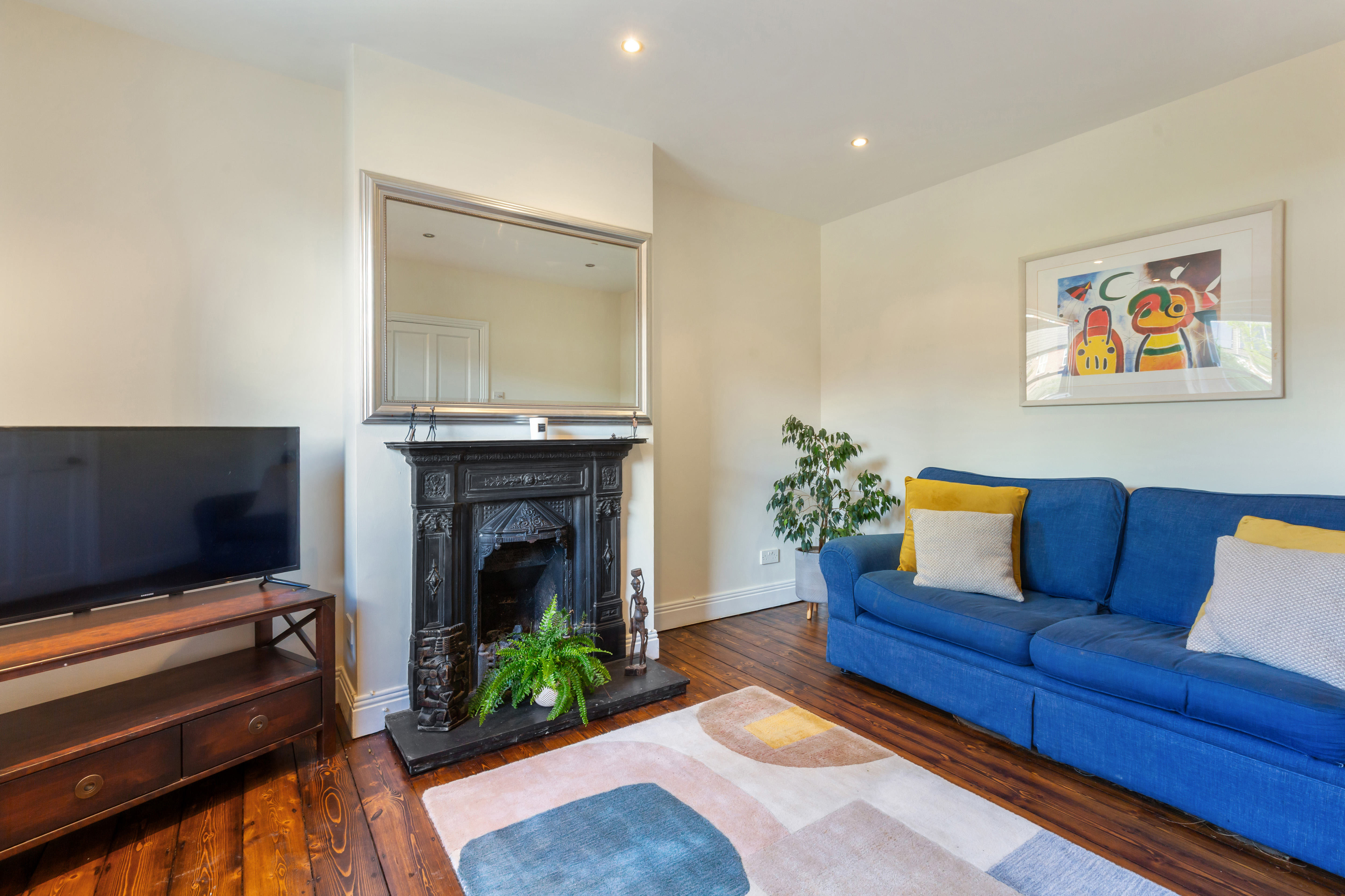 Beyond the welcoming entrance hall sets the tone for the wonderfully presented interiors. To the front, the gracious living room enjoys a tranquil outlook over the front garden and is centred around a beautifully cast iron fireplace, creating an inviting focal point. Stretching across the rear of the home, the generously proportioned kitchen is a superb hub designed for both everyday living and effortless entertaining. Flooded with natural light, it opens directly onto the garden, seamlessly connecting indoor and outdoor spaces. Thoughtfully finished with tiled flooring, part-tiled walls, an extensive range of fitted cabinetry, built-in double ovens, and a ceramic hob, this is a space where style and functionality exist in perfect harmony. Upstairs, the first floor hosts three beautifully appointed bedrooms. The first is a versatile and cosy room, ideal as a nursery, private study, or stylish single bedroom. The second is a bright double bedroom to the front, complete with wood flooring, built-in wardrobe storage, and an attractive cast iron fireplace. To the rear, the principal bedroom is a spacious double featuring built-in wardrobes, sash window, and an original cast iron fireplace, blending practicality with timeless elegance. Completing the upper level is a luxuriously finished family bathroom, fitted with a WC, wash hand basin, bath with overhead shower, heated towel rail, and a rear-facing window that fills the room with natural light.