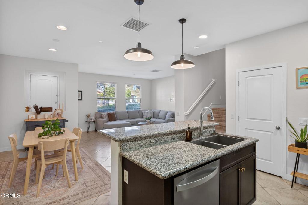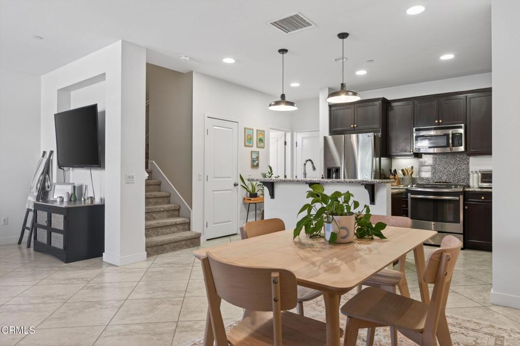 Come enjoy the ease of townhome living within a space that feels much like that of a single-family home. This charming 3-bedroom, 2.5-bath townhome, located within a newer East Ventura community, features a light and bright downstairs level with an open-concept floor plan. The family room flows seamlessly into an updated kitchen complete with granite countertops, stainless steel appliances, and a large center island--perfect for everyday living and entertaining. The main level also includes a designated dining area and a convenient powder bath for guests. Upstairs, a spacious loft provides a flexible living space, along with all three bedrooms. The primary suite offers generous proportions, a walk-in closet, and a well-appointed en-suite bathroom with dual sinks, a soaking tub, and a separate shower. Two additional bedrooms and an upstairs laundry area add to the home's thoughtful layout. Additional highlights include an attached 2-car garage and central AC for year-round comfort. HOA dues are an affordable $270/month and cover WATER, sewer, much of the exterior insurance and exterior maintenance. Come view today, as homes in this community do not come up often!