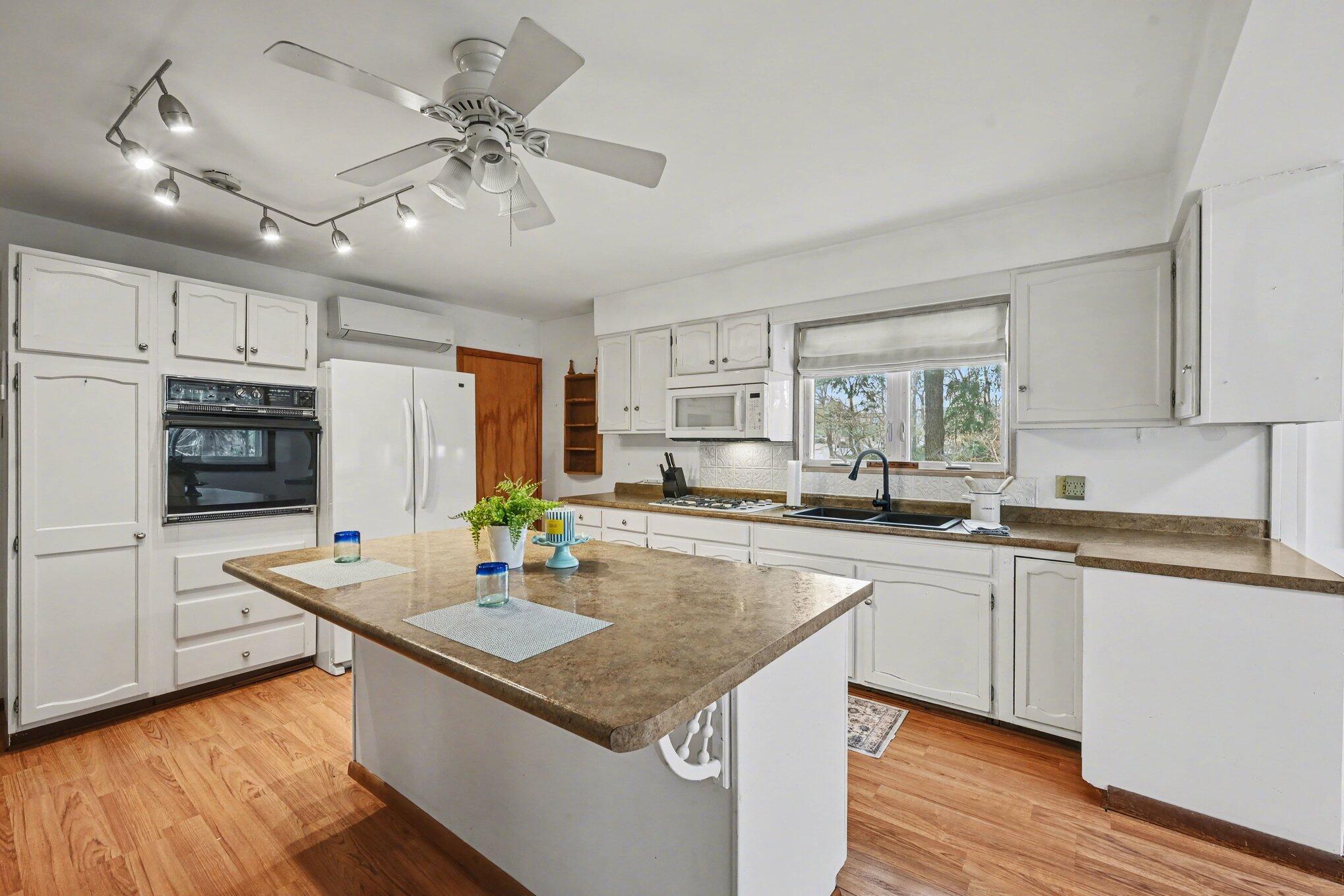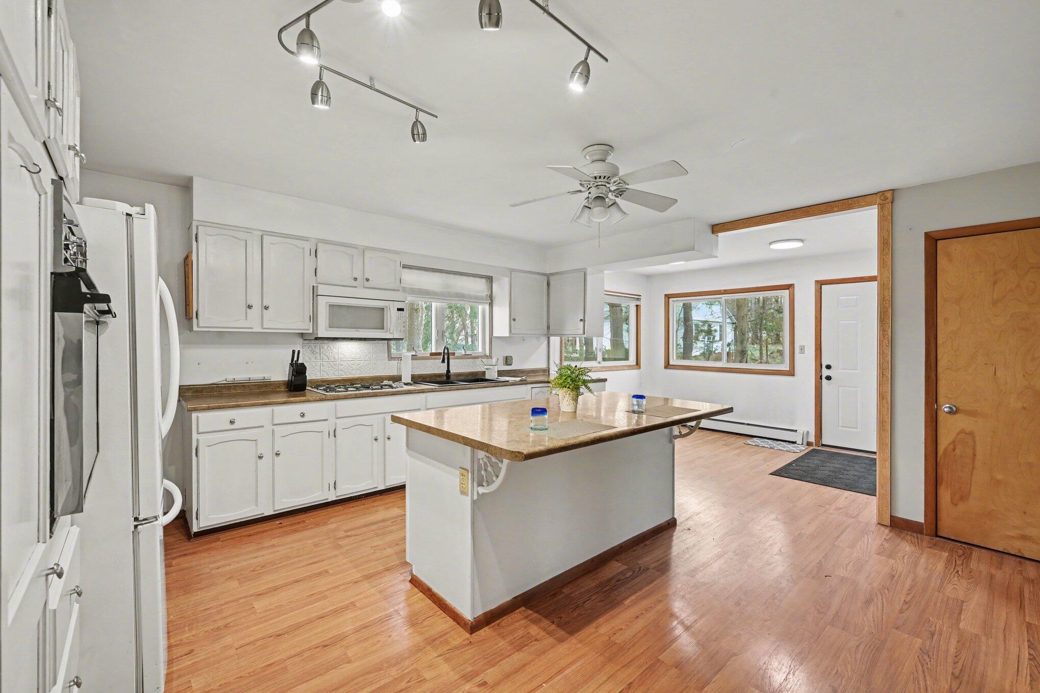 Get in before Summer lake living heats up! Welcome to this incredibly cute 3 Bdrm, 1 Full Bath home sitting directly across from Maple Lake! Ideal for a downsize or a starter home, the layout features a full heated Porch across the front (washer and Dryer Hookup for those that want Main floor living) watch the world go by on the Lake. Spacious Living Room with hardwood flooring and good sized windows let the light flood in. The front bedroom is perfect for your home office or guest room. The completely remodeled bathroom features a step in shower with glass doors, ceramic tile flooring and large vanity with wrought iron toned fixtures. Stylish and functional! The Kitchen is huge with a great island that could seat 4, eating area, a large pantry, dishwasher, built in oven and fridge. The full basement w baseboard heat allows for future expansion of living space. The detached 2 car side load garage has plenty of space for vehicles, toys, and tools! Walk to the Winefest in the Fall, downtown Warner Vineyards for music, out to eat at La Cantina. Welcome to your peaceful oasis!