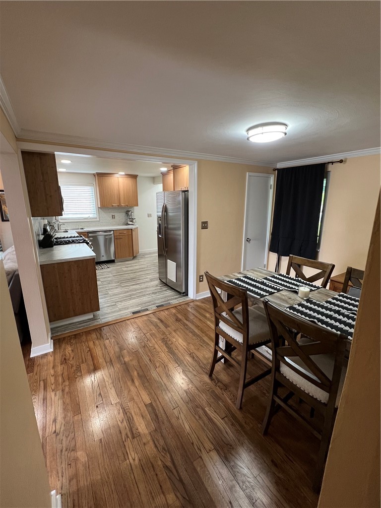 Fantastic opportunity to own the updated 2Br home. Looking for a starter home or to downsize this home is Move-In ready. Recent upgrades include New Kitchen - 2023, Bathroom - 2025, Interior / Exterior French Drain - 2021, Roof / Gutters - 2022, Shed - 2023 Repaired Concrete Patio - 2020, Refinished Hardwood Floors - 2020, Replaced 2 Block Windows in basement, Recessed Lighting in LR. Level backyard with area for fire pit. Home is located in the Baldwin-Whitehall School District Sellers had Radon test done in 2020 and passed at 1.4. It is available to view.