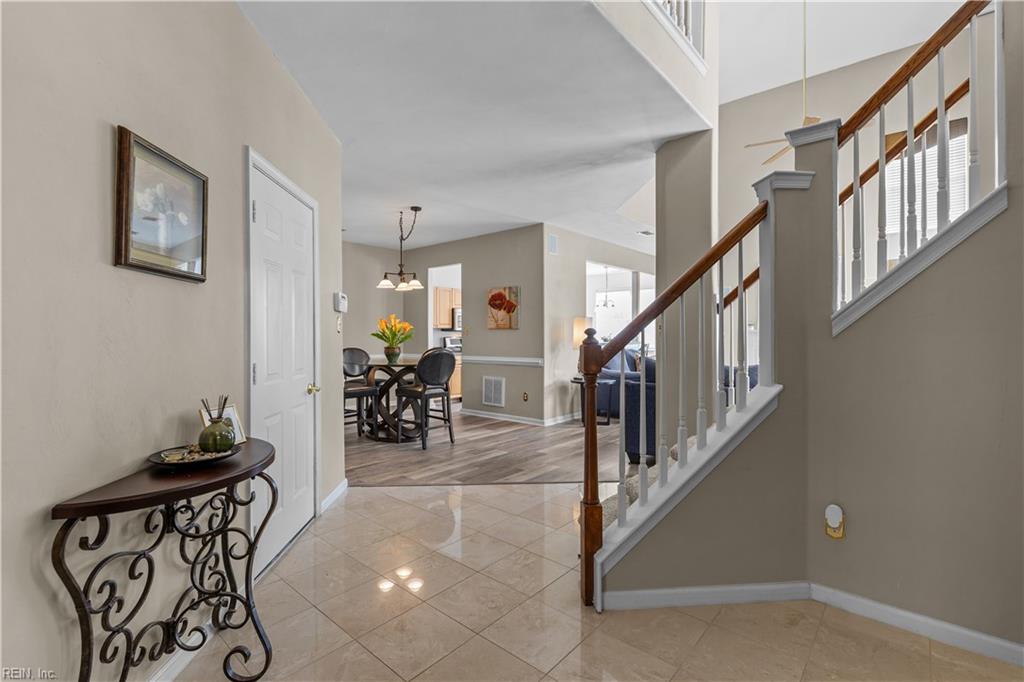 Welcome to Suffolk's desirable Golf Villages at Harbour View. This updated twin home offers low-maintenance living with NO condo fees, a rare find in the community. Recent upgrades include 2026 LVP flooring, HVAC, bathroom vanities, mirrors, and toilets, plus a roof and water heater (2021) giving buyers peace of mind with major systems already done. Step inside to a bright 2-story foyer and living room filled with natural light. The flexible layout features a first-floor bedroom or office, ideal for guests or remote work. The spacious primary suite offers two closets and a private bath with double vanity, jetted tub, and separate shower. Two additional bedrooms and second-floor laundry add convenience. HOA includes ground maintenance and access to golf and clubhouse amenities. Convenient to shopping, medical facilities dining, and major route I664.