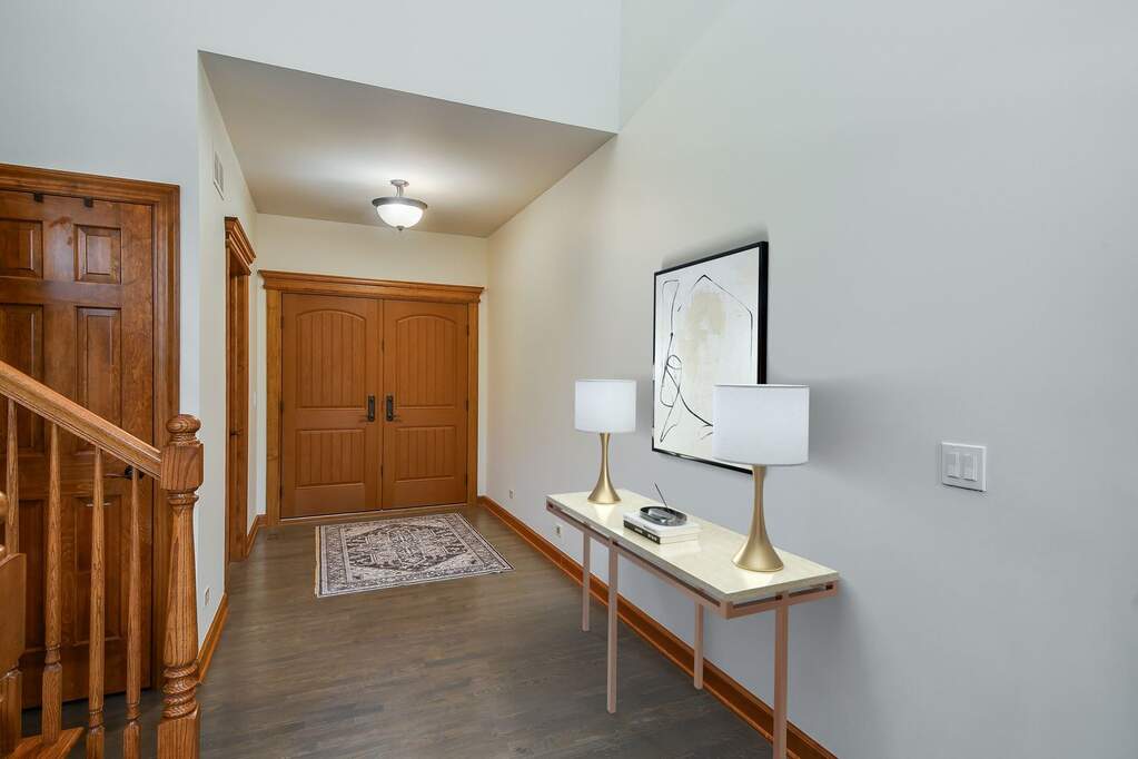 Sprawling reimaged executive townhome built with exceptional quality. The present owners combined unit 2009 and 2011 into one home boasting 5,401 sq ft above grade and 7,432 sq ft finished living space. This extraordinary all-brick double townhome offers dramatic scale, an open concept living space, refined craftsmanship, and luxury amenities. Vaulted ceilings, dual staircases, and a private elevator create architectural presence and effortless flow throughout. At the hub of the home, a chef's kitchen designed by the Kitchen Studio delivers statement design and professional performance - Sub-Zero PRO refrigerator, Viking ovens, dual dishwashers, oversized quartz island, beverage fridge, ice machine, a commercial-grade ice cream maker and separate eating area. The adjoining dining room accommodates an 18-seat table and opens seamlessly to expansive entertaining spaces. The sitting and living rooms are divided by a striking double-sided stone fireplace with recessed firewood storage. A fully customized bar room elevates hosting with dual beer taps, wine dispensing system with argon preservation, Sub-Zero wine storage, rough-cut beam accents, and a dramatic LED-backlit liquor display wall. The primary suite offers vaulted ceilings, custom California Closets, and a spa-inspired bath with heated floors, towel warmers, and multi-head shower. The finished lower level is a destination of its own with a 25x30 private theater with Sony laser projector, surround sound with six in-ceiling speakers wet bar and shuffleboard. The in-home gym has mirrors and Vita Vibe dance bar. A separate lower-level family room and office with custom built-ins rounds out this large basement. Professionally landscaped grounds surround an oversized brick paver patio with wrought-iron enclosure. Dual heated two-car garages and dual driveways reinforce the estate's scale and presence. This is not simply a home - it is a fully integrated luxury environment designed for entertaining, comfort, and distinction.