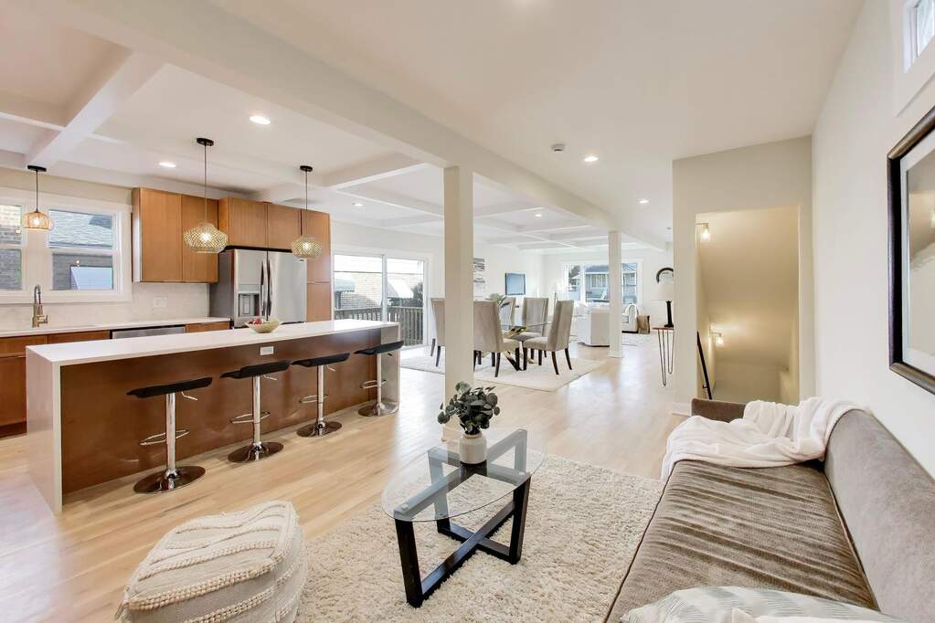 Introducing this exceptional single-family residence set on an expansive 9,000+ square-foot lot, a truly rare offering on Chicago's north side. Expertly de-converted from a two-unit into a grand single-family home, this property delivers impressive scale, thoughtful design, and modern infrastructure throughout. The plumbing and electrical systems have been completely updated, and dual-zoned HVAC has been upgraded to provide optimal year-round comfort and reliability. Elevated finishes are found at every turn. White oak hardwood floors flow effortlessly from the living room through the dining area and into a brand-new designer kitchen that anchors the main living space, offering another bedroom, half-bath, and eat-in kitchen option or additional family space-ideal for both everyday living and elegant entertaining. The white oak flooring continues upstairs into three generously sized bedrooms with ample storage, including a walk-in dressing room in the primary suite, providing remarkable flexibility for today's lifestyles. The basement features a private exterior entrance, making it perfectly suited for in-law living, extended family accommodations, or a private guest suite, complete with one bedroom and a full bathroom, while remaining seamlessly connected to the home. Set on an oversized lot with abundant outdoor space, this residence combines rare land, comprehensive updates, and refined craftsmanship-creating a truly distinguished opportunity for sophisticated city living. Agent owned.