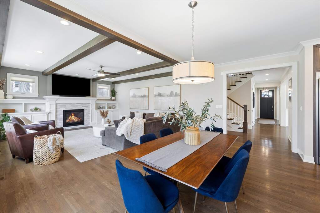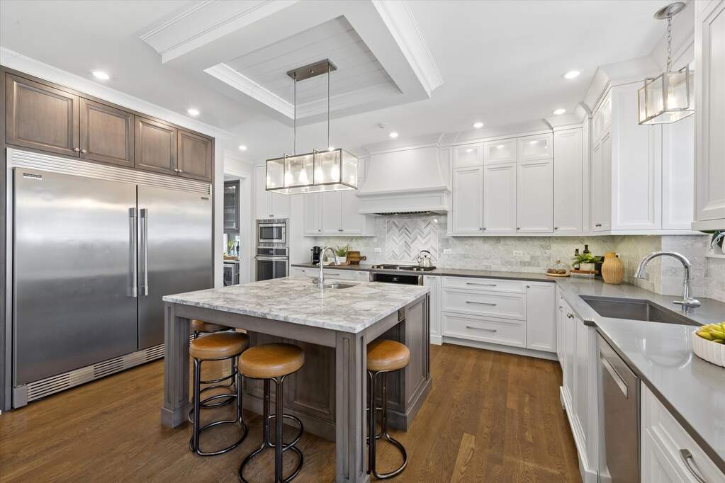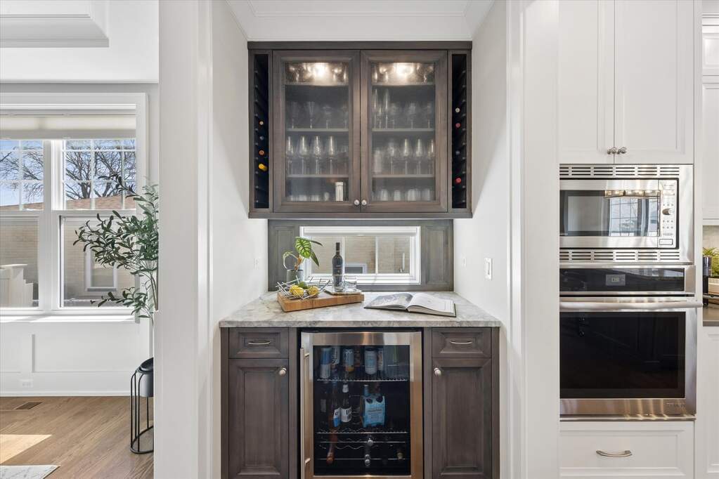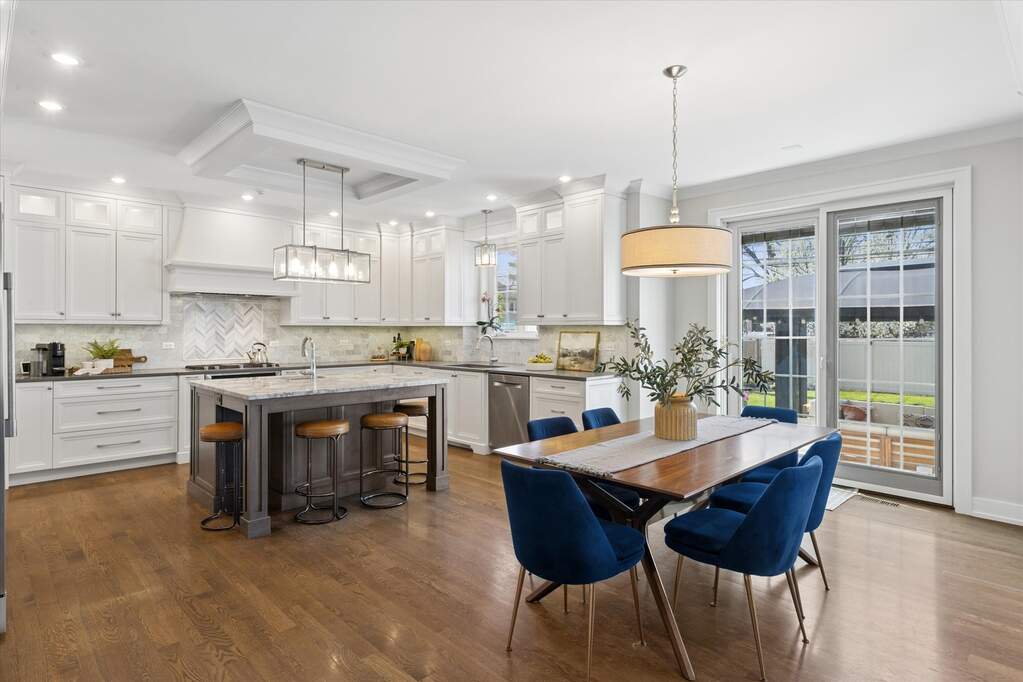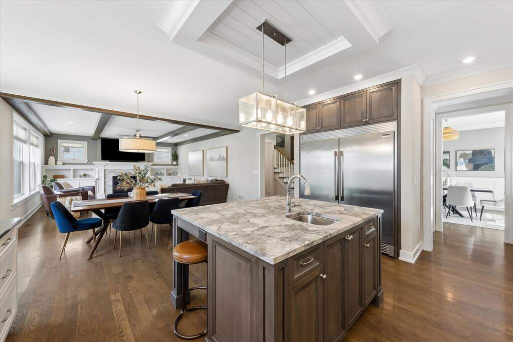 Custom built by one of Elmhurst's top builders, this exceptional home sits on a 60-foot-wide lot and offers a rare 3-car heated garage with epoxy floors, a circular driveway, and a covered front porch that creates unforgettable curb appeal. Inside, the home opens to a welcoming foyer and features a flexible front room perfect as a private office or cocktail lounge, along with a formal dining room designed for entertaining. The custom gourmet kitchen is the heart of the home, showcasing a large island, commercial-grade stainless steel appliances, bar area, and a walk-in pantry, all flowing into a spacious eating area. The family room is rich with character, featuring a fireplace, custom built-ins, and decorative beamed ceilings. The main level also includes a powder room and a beautifully designed custom mudroom. Upstairs, the second-floor landing is accented with decorative ceiling detail and leads to a luxurious primary suite with a vaulted ceiling, dual walk-in closets, and a spa-like bath with a soaking tub and oversized walk-in shower. Four additional spacious bedrooms, beautifully finished bathrooms, and a custom second-floor laundry room complete the upper level. The oversized backyard is built for enjoyment with a large patio, pergola, and plenty of space to play or relax. Additional highlights include custom window treatments throughout. All this in an outstanding location just a short walk to Berens Park with its playground, batting cages, mini golf, splash pad, sled hill, beach volleyball, and more