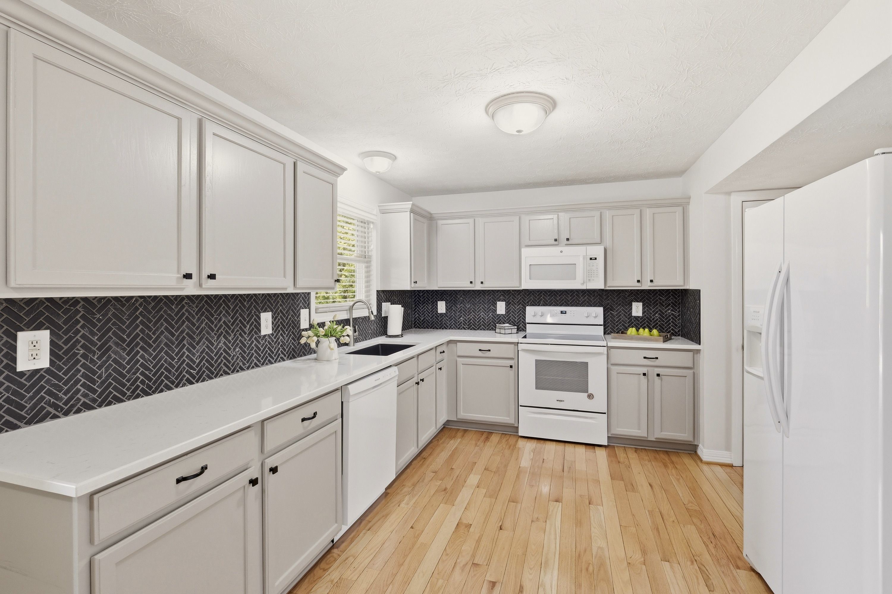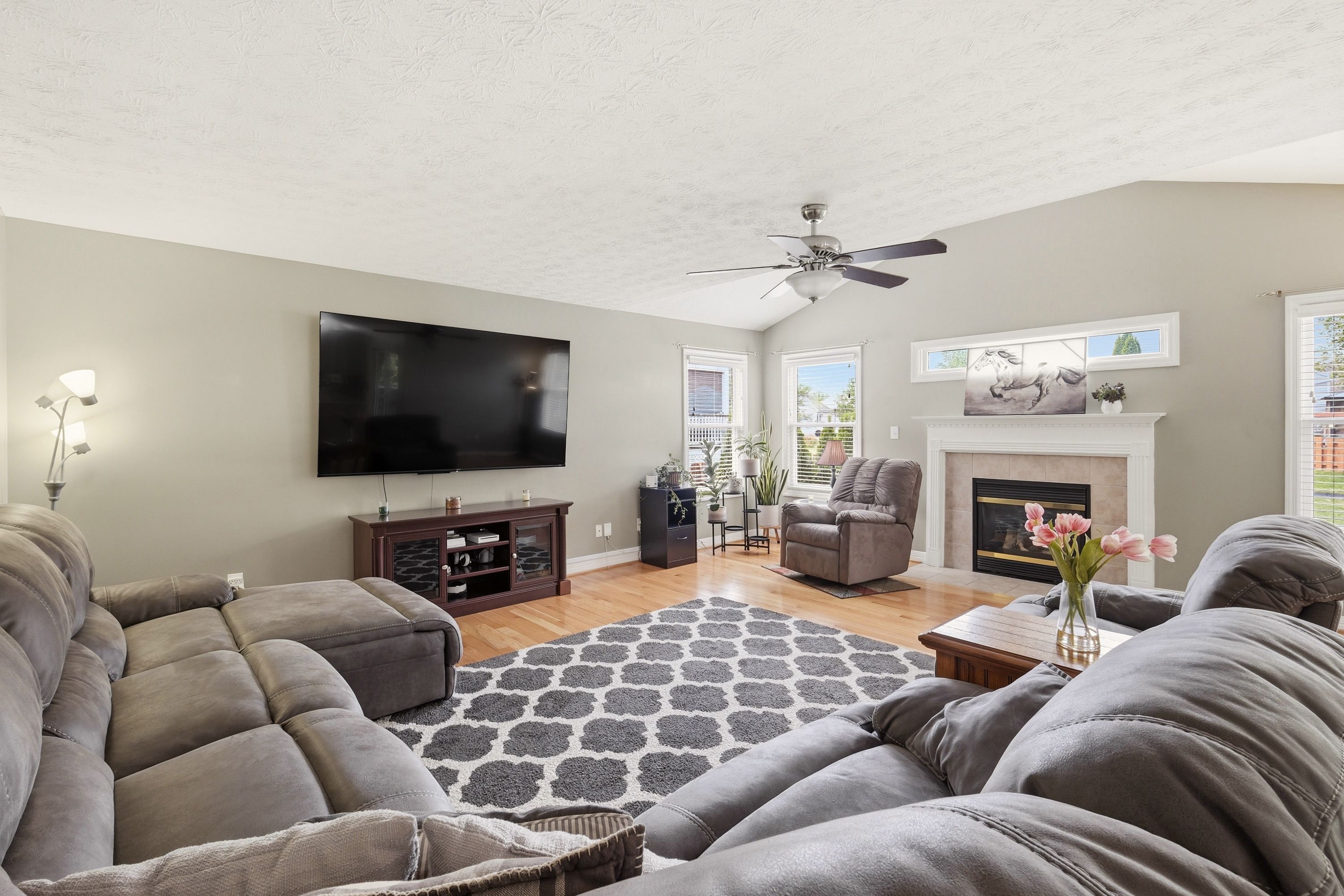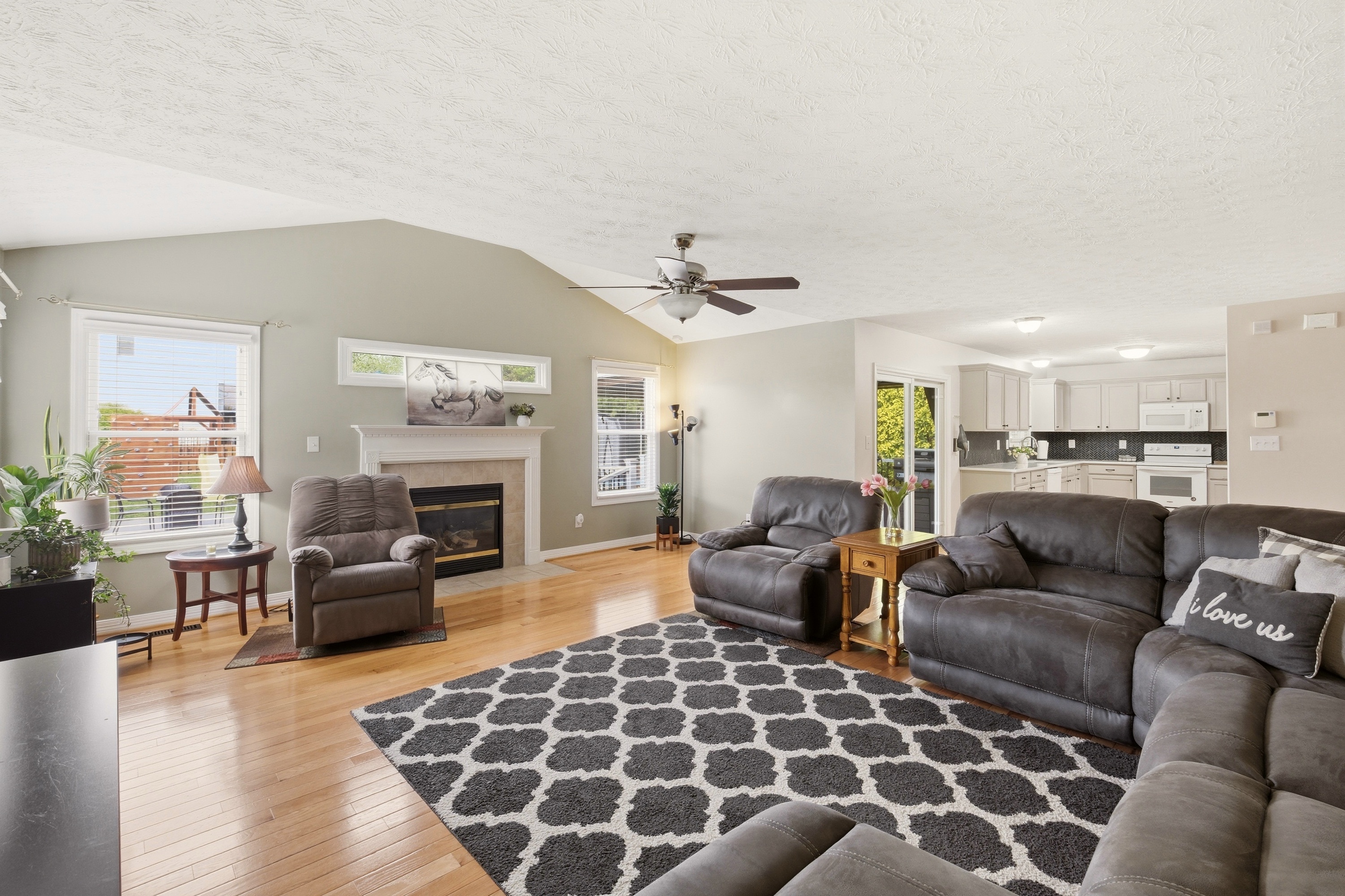 This beautifully maintained home offers the perfect blend of comfort, style, and privacy. It features three spacious bedrooms and two and a half bathrooms, making the layout both functional and inviting. Gorgeous LVP flooring runs throughout the home, adding warmth and elegance to every room. The heart of the home is the expansive great room—ideal for relaxing or entertaining. The open floor plan flows seamlessly into the eat-in kitchen. Step outside to enjoy a covered deck overlooking a fabulous outdoor living space and a fully fenced backyard, perfect for gatherings, pets, or quiet evenings. For peace of mind the decking is a quality, no-maintenance material. A darling powder room completes the lower level. Upstairs, you will find a primary bedroom with a completely updated bath that includes a double sink vanity and a tiled walk-in shower. There are two other bedrooms and another full bath that is fully renovated. Tucked away on a peaceful cul-de-sac, this property offers privacy while remaining conveniently located. The garage has been converted into a fun-filled family recreation space, offering flexibility for entertainment or hobbies. If desired, the seller is willing to convert it back to a traditional garage. The basement has a full laundry room and an area currently used as an office space. This home truly has it all—comfort, versatility, and a wonderful setting to enjoy both indoors and out.