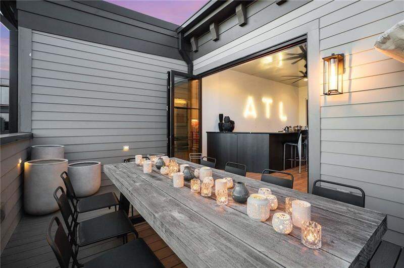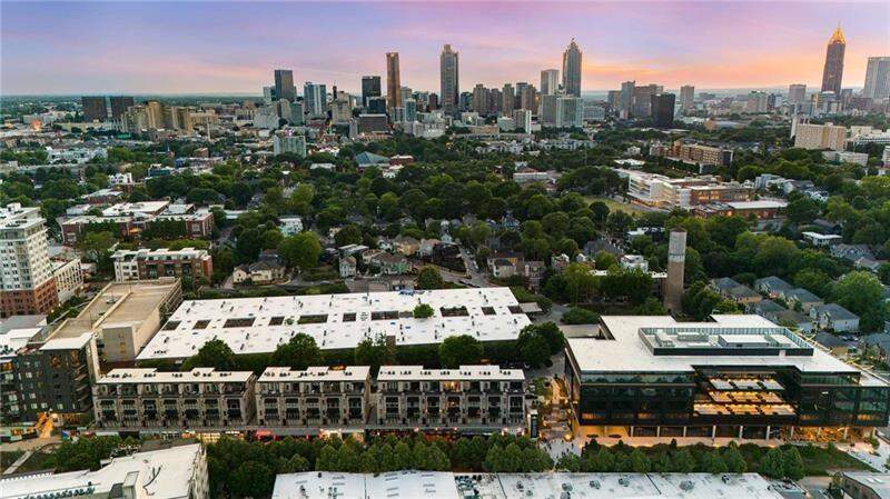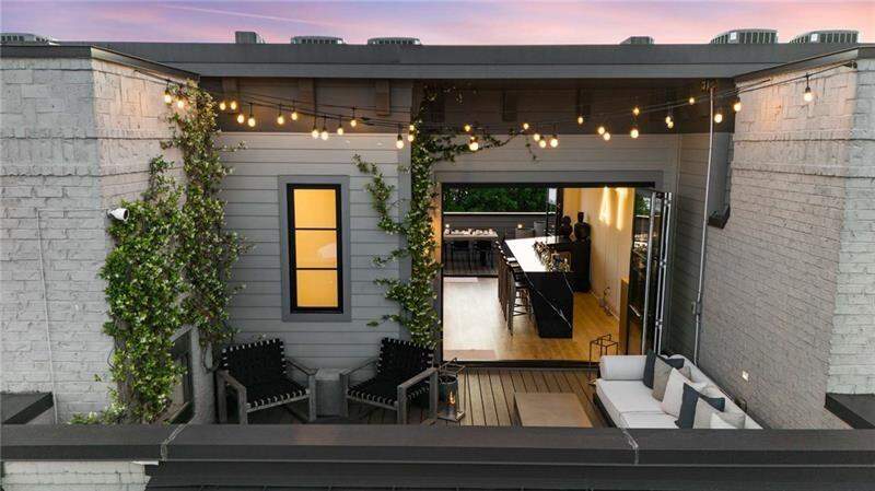 Luxurious, sleek, and modern, custom/designer outfitted, four-floor (with elevator), 3-bedroom, 3 full bath and 2 half bath, townhouse on the Beltline in Inman Park. Adjacent to Krog Street Market with beautiful downtown Atlanta city views to the west and green Inman Park views to the east. Starting from the top: Fourth floor features a beautiful custom bar with riveted aluminum ceiling and DOUBLE rooftop terrace, one with an alfresco dining area with city views perfect for sunset, and the other with a cozy patio with mature jasmine vines + fireplace. Along with a half-bath, this rooftop floor is the ultimate entertainment space! Moving down to the third floor, you find the primary suite with fireplace, built-in custom gun metal cabinets, large walk-in closet, 55" TV, and full ensuite with double-sinks. Opposite the primary suite is the library-come-office with custom white-oak shelving and views of the Beltline and its tree tops, with floor to ceiling windows, perfect for working from home. This room, which can be used as a bedroom as well, has its own full bath. Keep moving down to the main living area with 9' ceilings and you find perfect indoor entertainment and living space. Starting with the chef's kitchen outfitted with Wolf/Thermador appliances including built-in double-ovens, a steamer, dishwasher, four-burner stove with grill top, and paneled fridge/freezer + a sexy copper hood. The dining area includes a built-in banquet seating with floor-to-ceiling shelving, and wine fridge. The main living area adjacent to the kitchen/dining also features a Francoise mantel and designer furniture with a 55" TV and direct views of the Beltline. The ground floor level has an ensuite guest bedroom, providing guests with complete privacy. This floor also contains the 21ft wide garage with space for 2 SUVs and includes an electric vehicle charging port. This perfect urban living home is just steps from epic eateries like Superica, Boccalupo, Staplehouse, Rathbun's Steak, and dozens more.