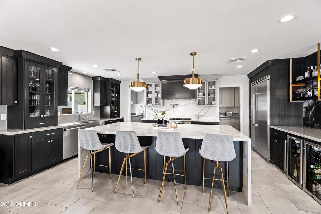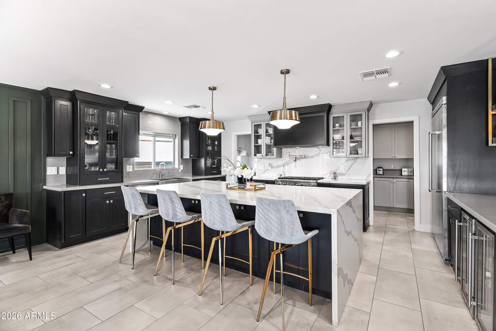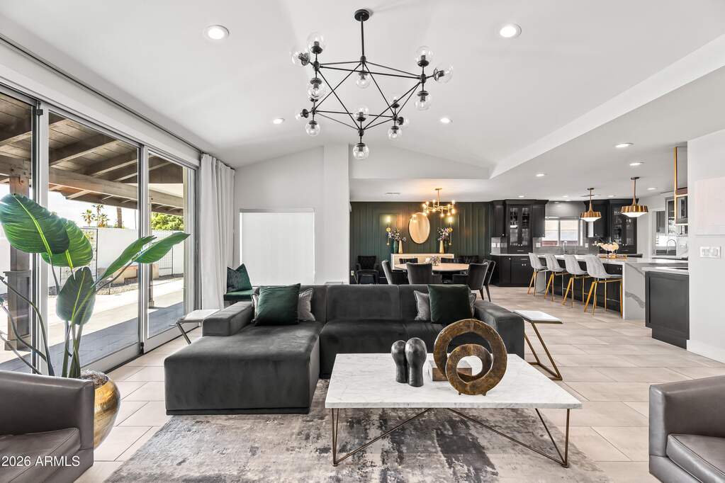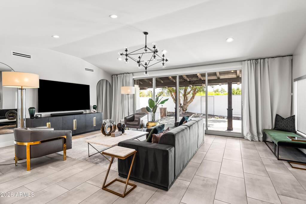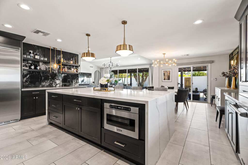 Located within the gated Taliverde sub-community of the prestigious Arizona Biltmore Estates, this classic Phoenix ranch style home offers contemporary finishes and timeless charm in one of the city's most sought-after neighborhoods. Ideally situated in the heart of Biltmore, just minutes from premier dining, upscale shopping, scenic hiking trails, luxury resorts and spas, and world-class golf. Inside, the remodeled home showcases open-concept living, dining, and kitchen spaces. Designer lighting, a new wall of sliding glass doors, and a bright dining area with a paneled accent wall create seamless indoor-outdoor living. The upgraded chef's kitchen features new appliances, a gas range, wine refrigerator, large island, and a newly added butler's pantry-perfect for both everyday living and entertaining. The primary suite serves as a private retreat with a fireplace and direct backyard access, complete with a walk-in closet, dual vanities, a soaking tub, and an oversized shower. Outdoors, the front yard offers lush grass and mature palms, while the backyard is designed for low-maintenance living with turf, desert landscaping, an outdoor kitchen, covered patio, and a tranquil water feature. Additional highlights include a 2-car garage and HOA-provided 24/7 roving patrol for added security and peace of mind.