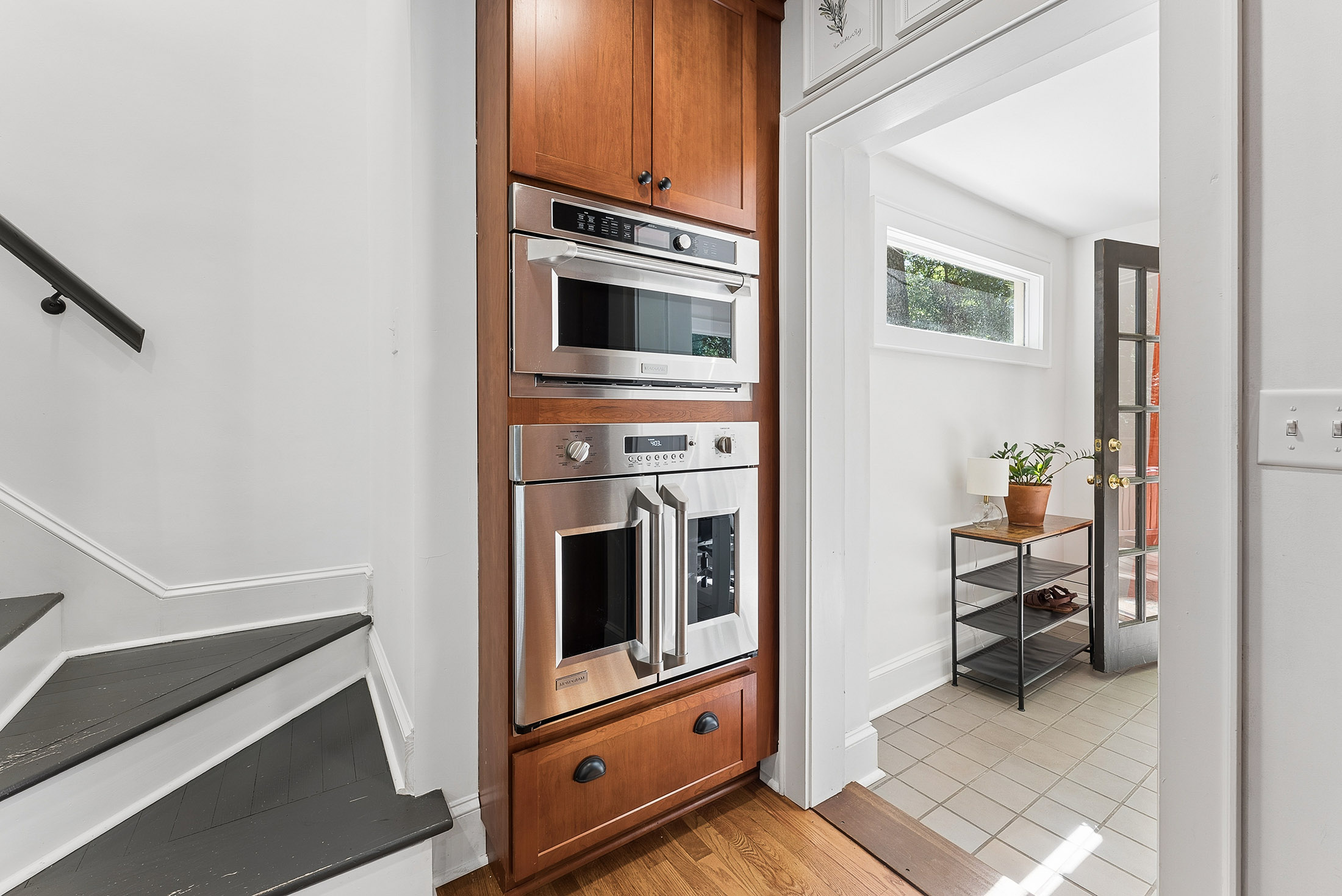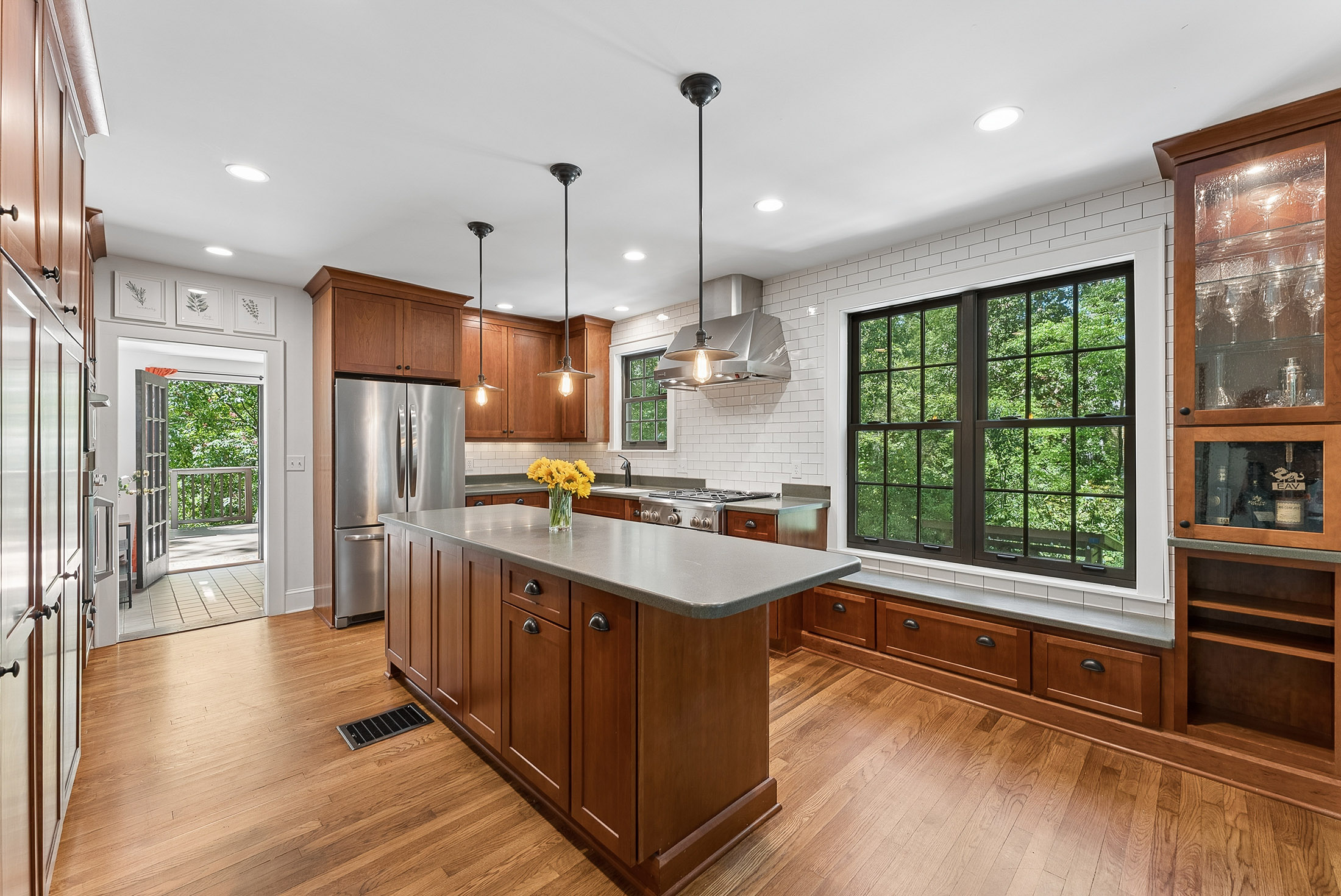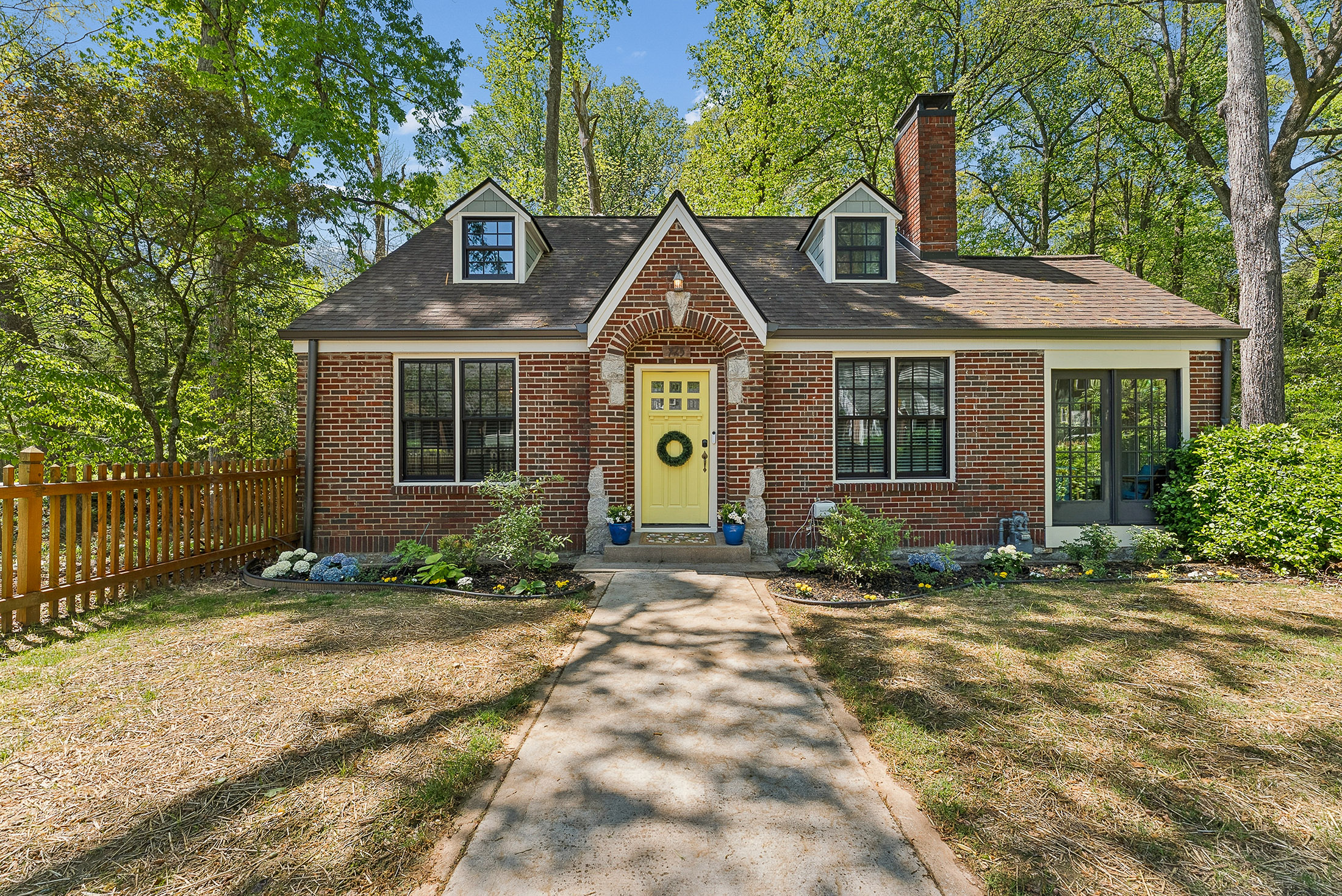 Nestled on a rare triple and corner lot backing directly onto Brownwood Park and just three blocks from East Atlanta Village, this delightful stone and brick cottage is filled with character and charm at every turn. The exceptional outdoor space features a fenced front yard, wooded side yards, and a private backyard with creeks and a bridge to your own private island oasis. The perfect serene getaway on your own property! Inside, the renovated chef's kitchen seamlessly connects to the living and dining areas and showcases custom cabinetry, a spacious island, and an upgraded Monogram appliance package with two smart oven options. The main level also includes two secondary bedrooms, a full bath with charming original tile, a side all window sunroom with reading nook and a versatile rear bonus room ideal for a breakfast nook or home office. Upstairs, the owner's suite offers a refined retreat with a custom vanity, walk-in shower and separate closets/storage. A generous back deck overlooks the park, providing the perfect place to relax or entertain. Additional highlights include a large paved driveway with ample off-street parking that can be covered under the deck, a full unfinished basement with abundant storage and potential for a workshop or gym, and zoning for highly regarded Atlanta Public Schools. Located just steps from East Atlanta Village and a short stroll to the Beltline and Madison Yards, this home offers a rare blend of privacy and convenience grab this East Atlanta gem before it is too late!