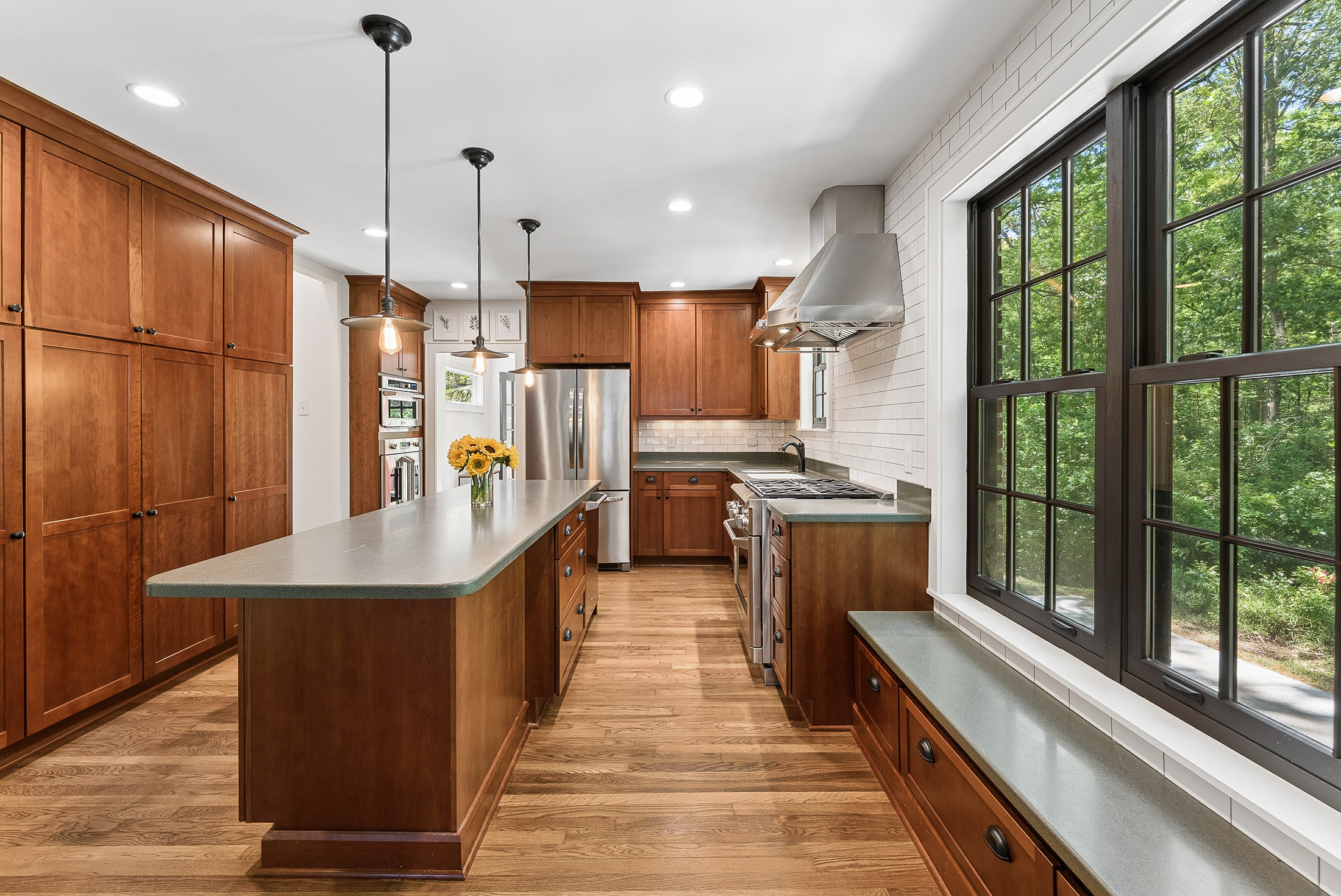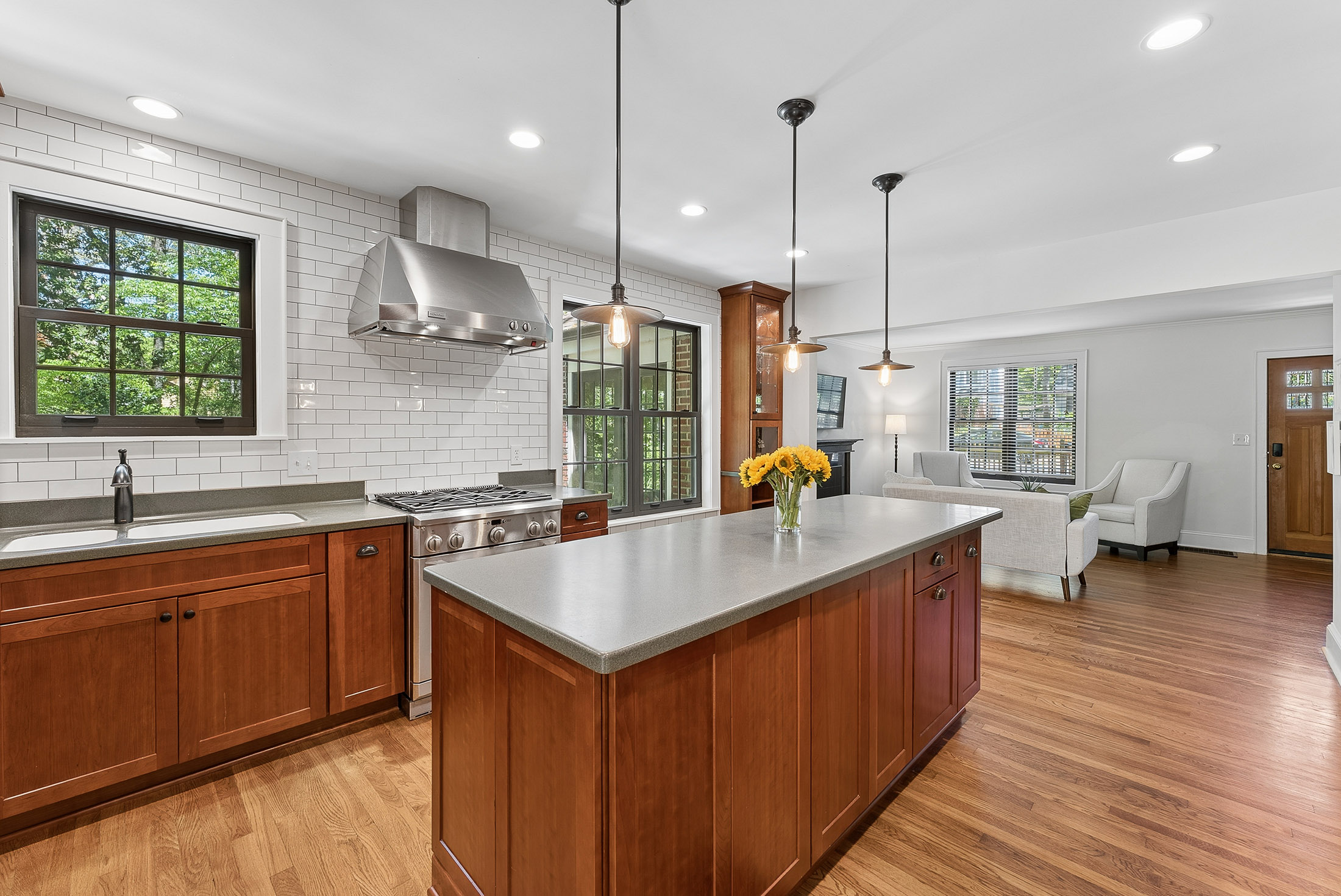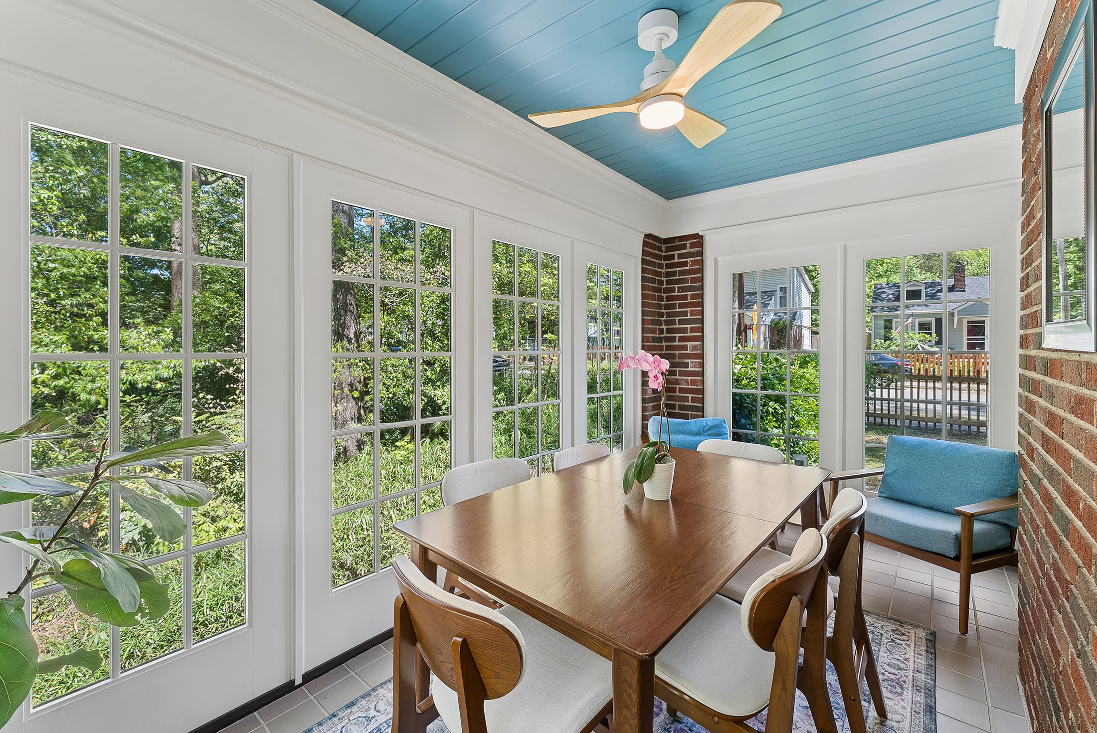 Nestled on a rare triple and corner lot backing directly onto Brownwood Park and just three blocks from East Atlanta Village, this delightful stone and brick cottage is filled with character and charm at every turn. The exceptional outdoor space features a fenced front yard, wooded side yards, and a private backyard with creeks and a bridge to your own private island oasis. The perfect serene getaway on your own property! Inside, the renovated chef's kitchen seamlessly connects to the living and dining areas and showcases custom cabinetry, a spacious island, and an upgraded Monogram appliance package with two smart oven options. The main level also includes two secondary bedrooms, a full bath with charming original tile, a side all window sunroom with reading nook and a versatile rear bonus room ideal for a breakfast nook or home office. Upstairs, the owner's suite offers a refined retreat with a custom vanity, walk-in shower and separate closets/storage. A generous back deck overlooks the park, providing the perfect place to relax or entertain. Additional highlights include a large paved driveway with ample off-street parking that can be covered under the deck, a full unfinished basement with abundant storage and potential for a workshop or gym, and zoning for highly regarded Atlanta Public Schools. Located just steps from East Atlanta Village and a short stroll to the Beltline and Madison Yards, this home offers a rare blend of privacy and convenience grab this East Atlanta gem before it is too late!