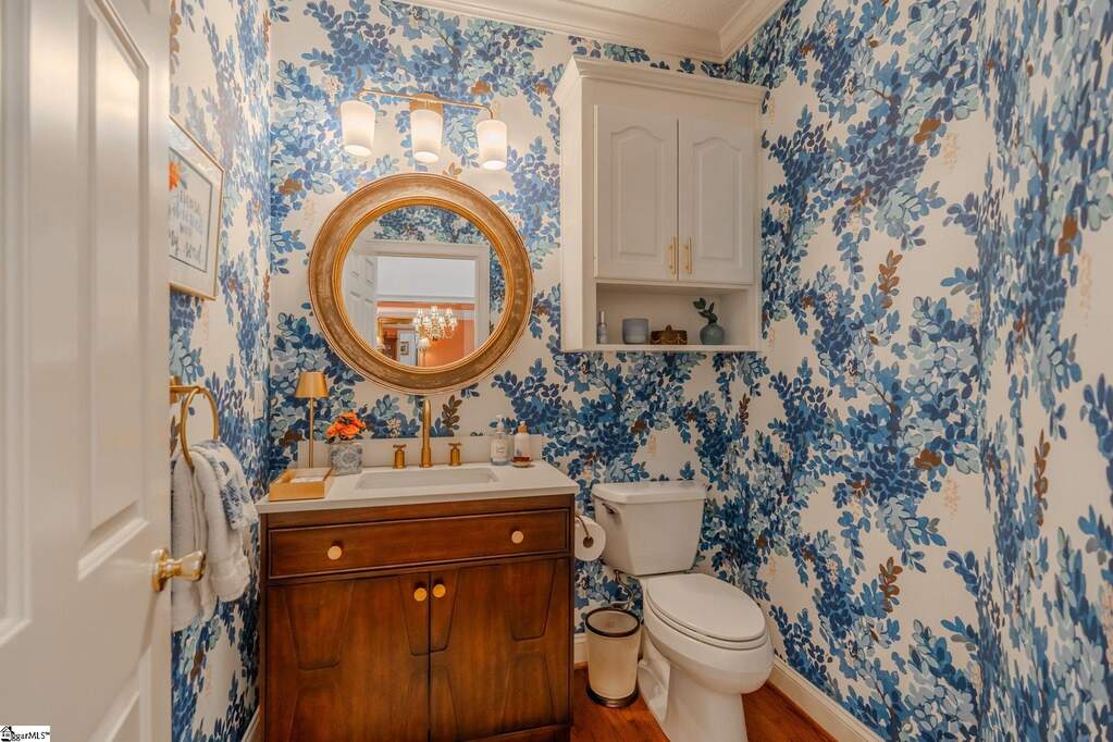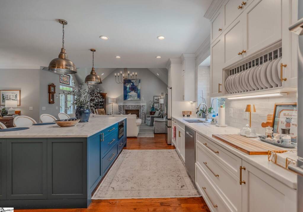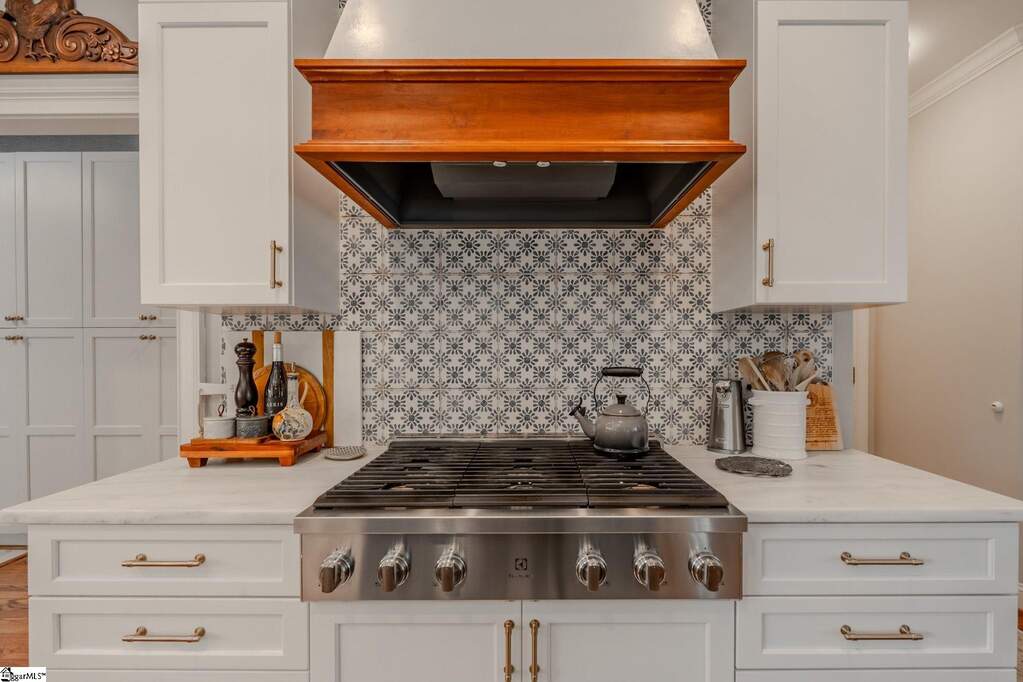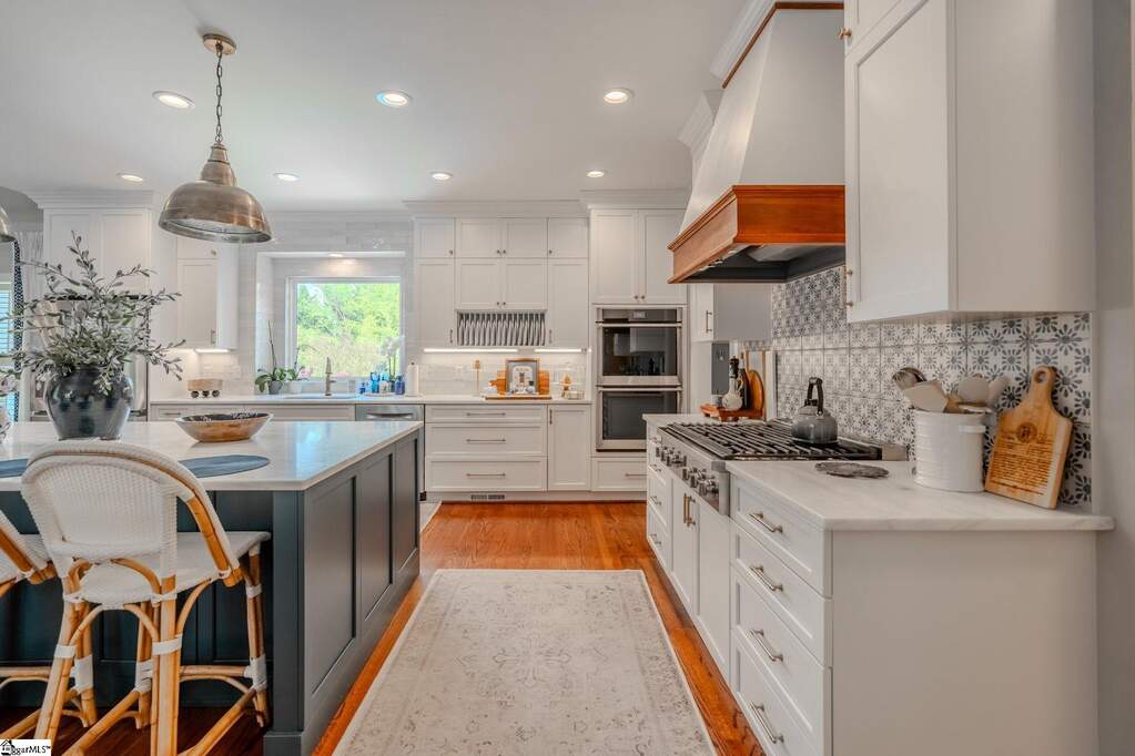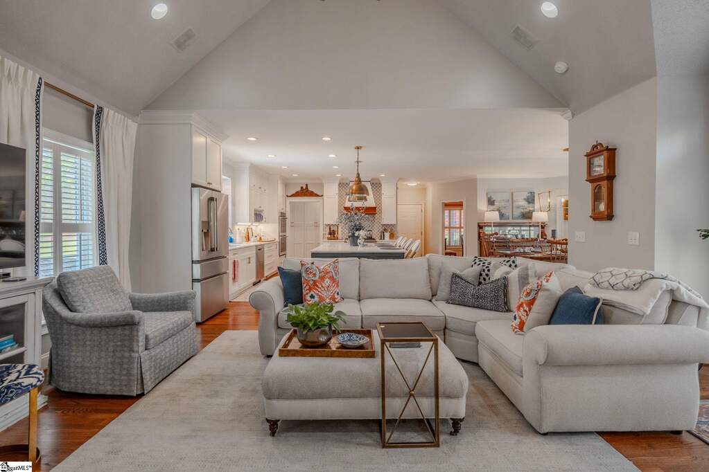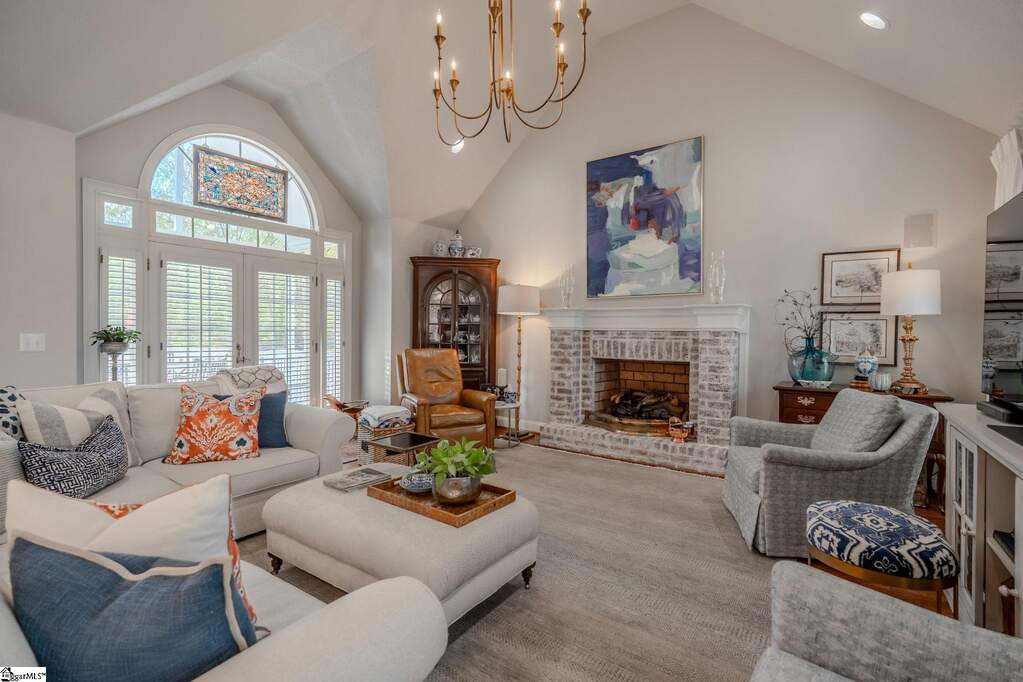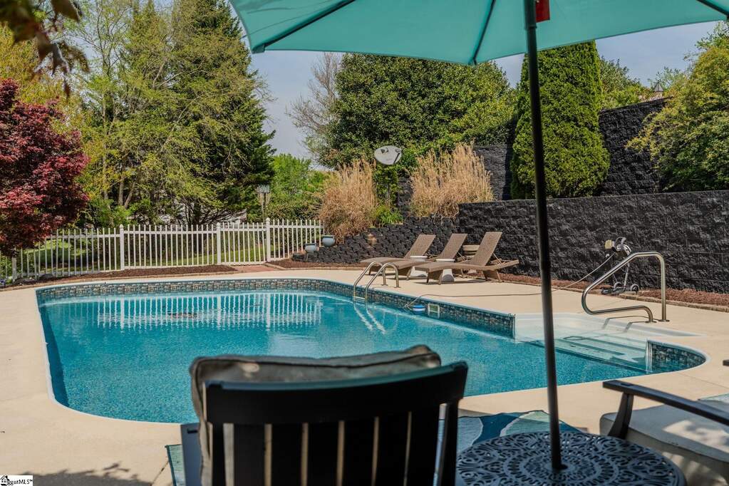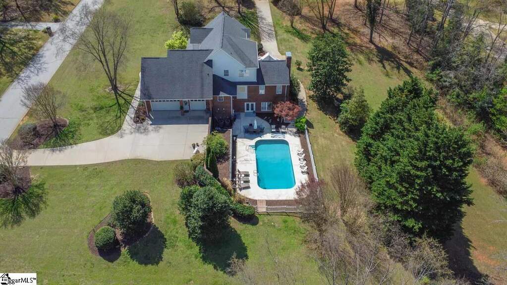 An exceptional estate in the Woodlands that masterfully blends timeless elegance, modern comfort, and resort-style living on a private, lush 2-acre setting. Perfectly positioned just 20 minutes or less from downtown Greenville, Greer, and Travelers Rest, this home offers the rare combination of peaceful seclusion and everyday convenience. From the moment you enter, a dramatic two-story foyer sets the tone, flanked by a private study and flowing into thoughtfully designed living spaces ideal for both refined entertaining and relaxed daily living. The heart of the home features a stunning great room with soaring cathedral ceilings, a cozy fireplace, and seamless access to an expansive deck complete with a covered grilling area-perfect for year-round enjoyment. The custom kitchen is both beautiful and functional, renovated and showcasing upgraded stainless-steel appliances, marble countertops, and a bright breakfast area that opens effortlessly to the main living space. A spacious main-level owner's suite provides a true retreat with generous proportions and privacy, while four additional large bedrooms and a loft sitting/reading area offer flexible space for family and guests. Car enthusiasts and hobbyists will appreciate the rare 4-car garage capacity, including an oversized 3-car garage on the main level and a separate lower-level garage. The fully finished walkout basement elevates the home's versatility with a complete secondary living space featuring a kitchenette, private entrance, dedicated driveway, 2nd fireplace, additional laundry room, and its own patio-ideal for multi-generational living, guests, or an in-law/teen suite. Step outside to your own private oasis, where a well-landscaped yard surrounds a sparkling in-ground pool, creating the perfect backdrop for relaxation or entertaining. Abundant storage throughout, a large laundry/ utility room, and meticulous upkeep further enhance the home's appeal. Set within a friendly, walkable community just off the beaten path, this remarkable property offers a lifestyle of comfort, space, and understated luxury-where every detail has been designed to feel like your own private retreat, yet remains close to top schools, shopping, dining, and recreation.