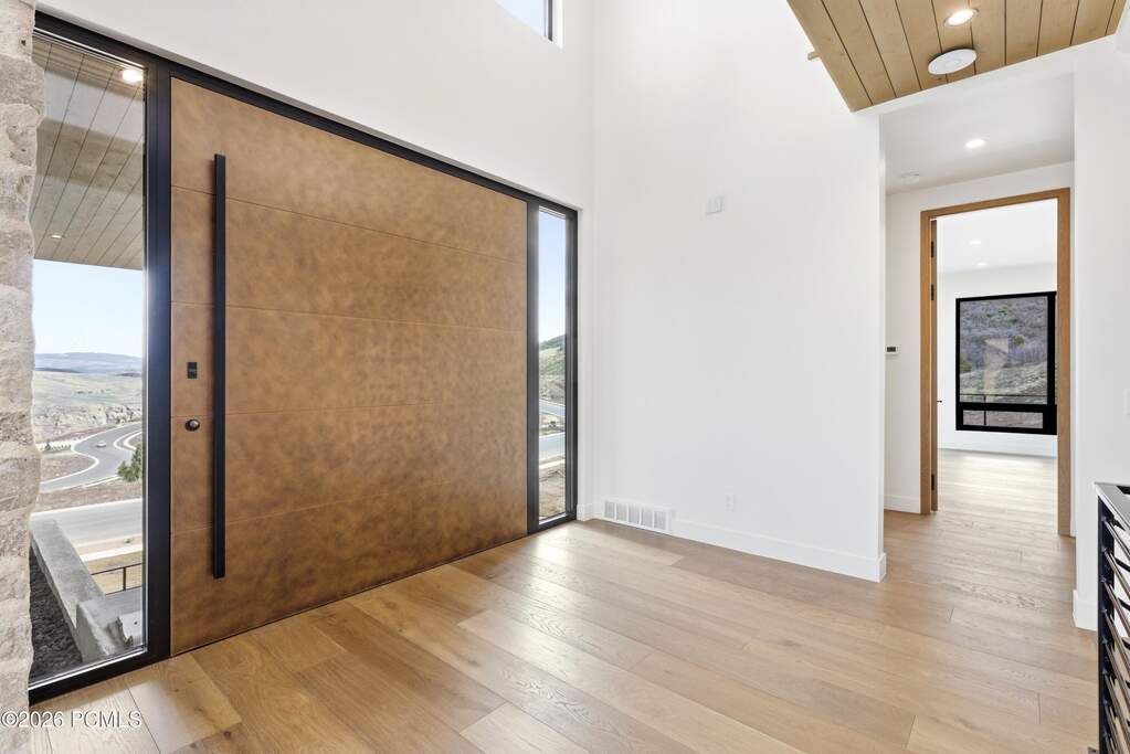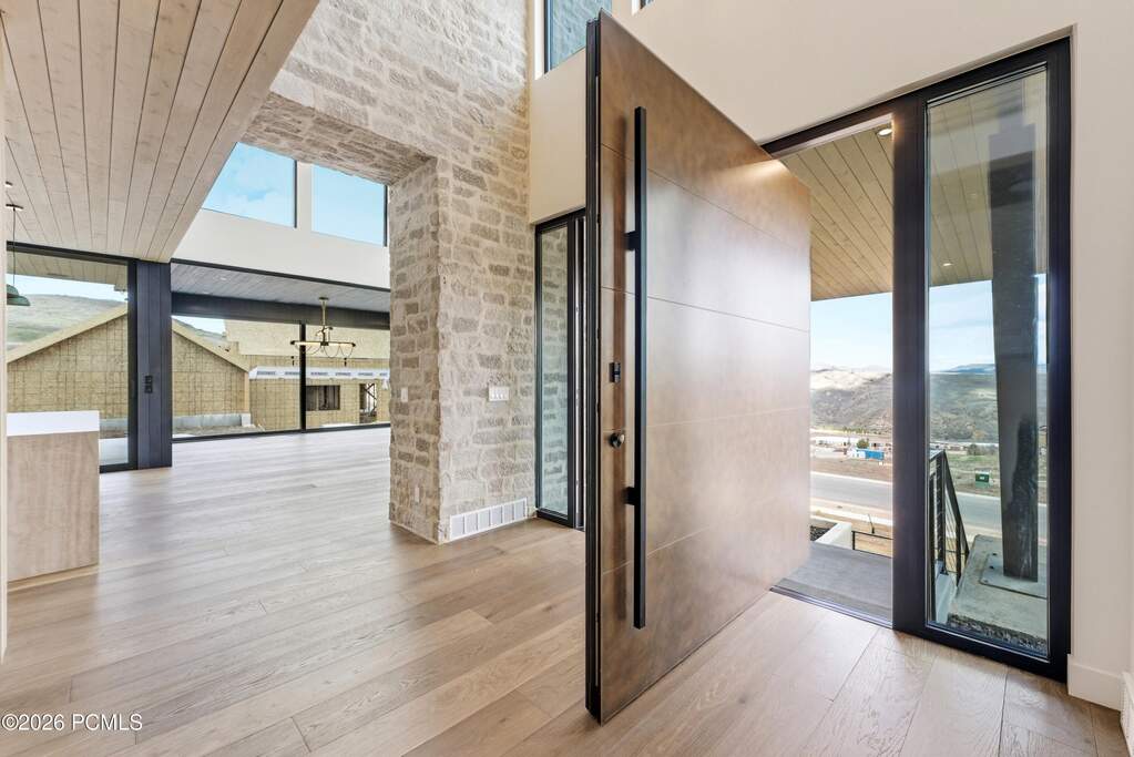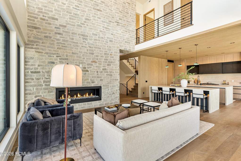 Set within Benloch Ranch, this beautifully designed five-bedroom, seven-bath residence offers a refined blend of luxury, comfort and thoughtful design. Each bedroom features its own en-suite bath, providing exceptional privacy and convenience throughout. The owner's suite is a true retreat with a walk-in closet, washer/dryer hookups, a spa-inspired oversized walk-in shower with a soaking tub set within the shower space and a private wraparound balcony for peaceful mornings or relaxing evenings. Designed for both everyday living and entertaining, the home features two laundry areas, including an upstairs stackable washer and dryer and a full lower-level laundry room, along with zoned forced air heating and air conditioning for year-round comfort. The light-filled great room showcases soaring vaulted ceilings, a sleek contemporary fireplace, modern fan and beautiful views. The chef's kitchen is equally impressive with double waterfall islands, abundant storage, soft-close cabinetry and drawers, a butler's pantry with microwave and premium Monogram and Bosch appliances, including a range hood and double oven. A semi-formal dining area is accented by a modern linear chandelier, while the clean-lined pivot front door creates a striking first impression. Additional highlights include hardwood floors, tile and carpet, a mudroom off the garage with generous cabinetry and exceptional storage throughout. The lower level offers a spacious family room with a custom wet bar featuring specialty bottle storage, beverage fridge, sink, quartz backsplash, built-in cabinetry, cubbies, drawers and added storage areas. Oversized sliding glass doors open to an expansive patio with a plumbed gas line for BBQ, a great backyard to enjoy, xeriscaped front yard for easy maintenance, expanded driveway with ample parking and an oversized two-car garage with EV outlet and water spigot. High-speed fiber internet adds modern convenience.