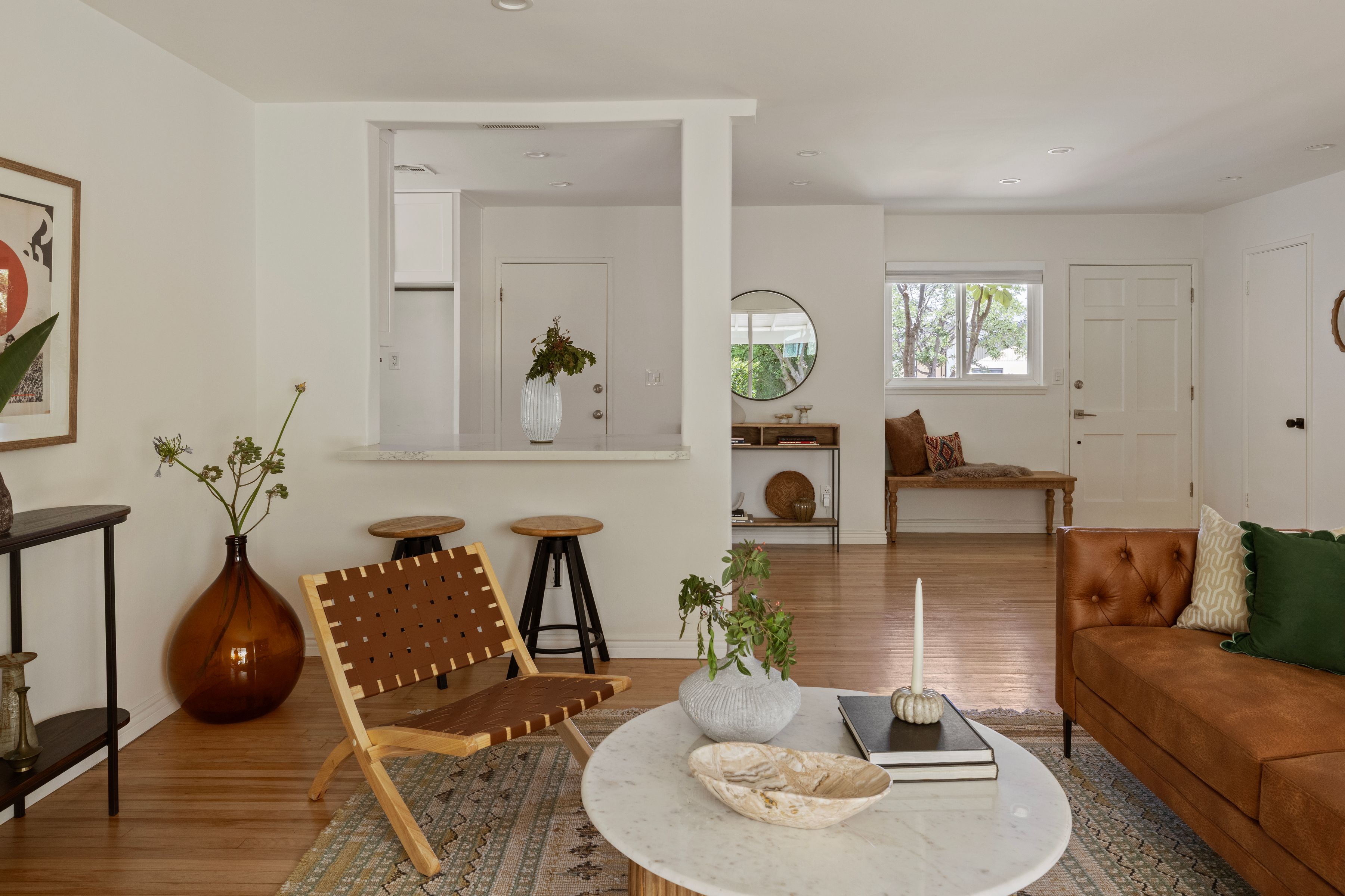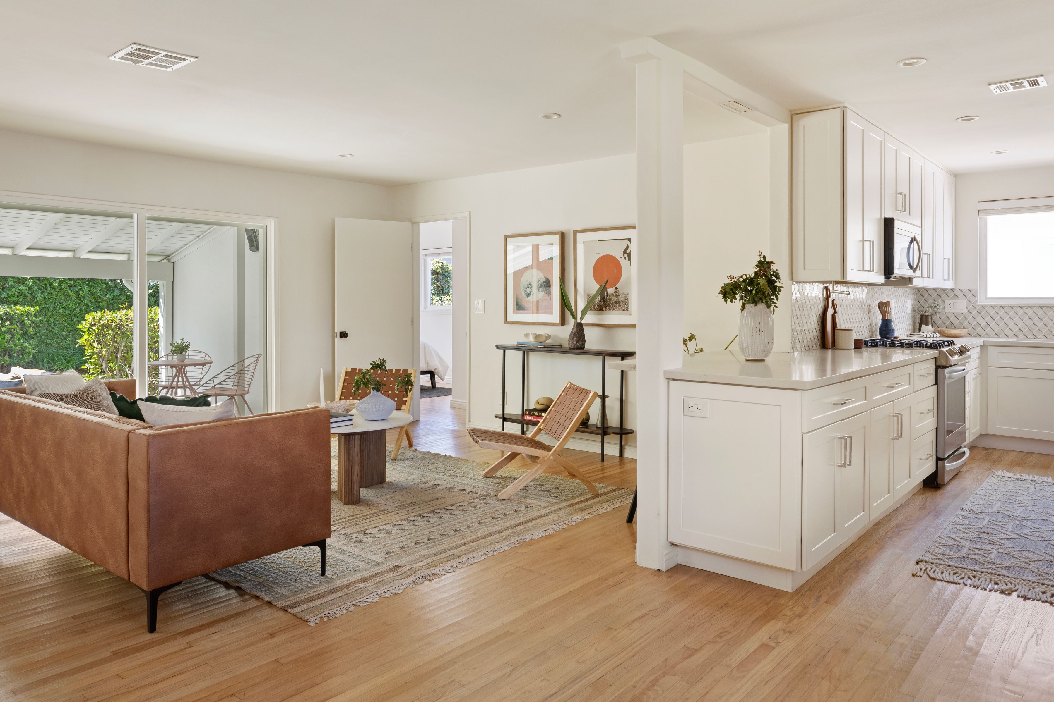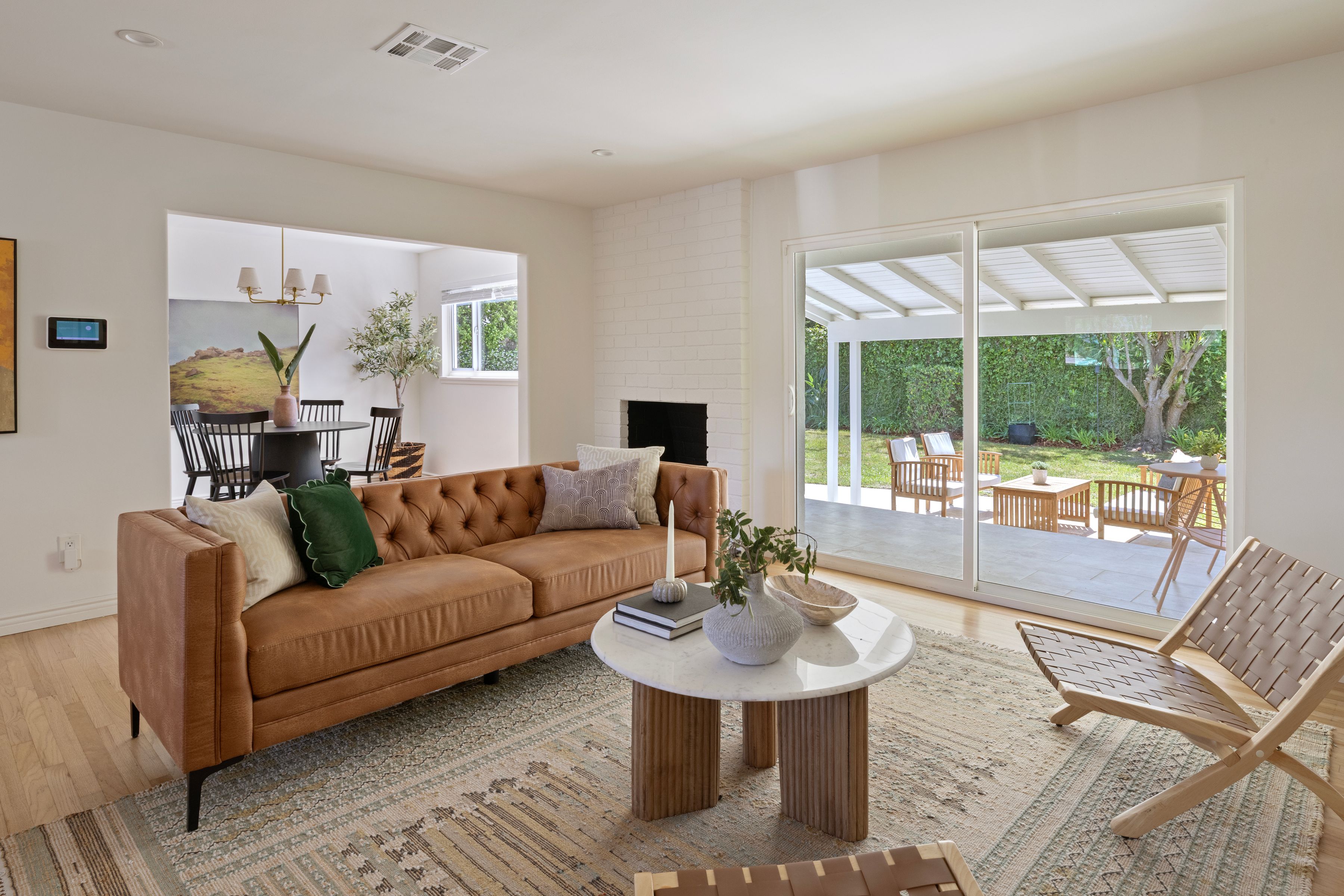 Located in the sought-after Encino Village neighborhood, this stunning three-bedroom, two-bathroom home greets you with a freshly painted exterior and beautifully kept landscaping. The main living space showcases wood floors and a decorative fireplace. An abundance of natural light and views of the backyard make this a place you'll love coming home to. The bright kitchen features quartz countertops, stainless steel appliances, and an oversized peninsula with a breakfast bar. Just off the living room, the cozy and elegant dining area is the perfect place to entertain. The primary bedroom offers two closets and an en suite bathroom with dual sinks. On the opposite side of the home, two additional bedrooms share a well-appointed hall bathroom. Outside, the backyard immediately draws you in with ivy-draped walls, a large covered patio, and plenty of lush green space. The attached two-car garage houses the washer, dryer, and a newly installed tankless water heater. Newer solar, updated plumbing, ample storage, and a freshly painted interior and exterior make this the most effortless choice. The location truly is a dream, with tree-lined streets and easy access to Balboa Park, the Balboa Sports Complex, Ventura Blvd, fantastic restaurants, major freeways, and within the Encino Charter Elementary School District. This home is a true hidden gem in the heart of the Valley.