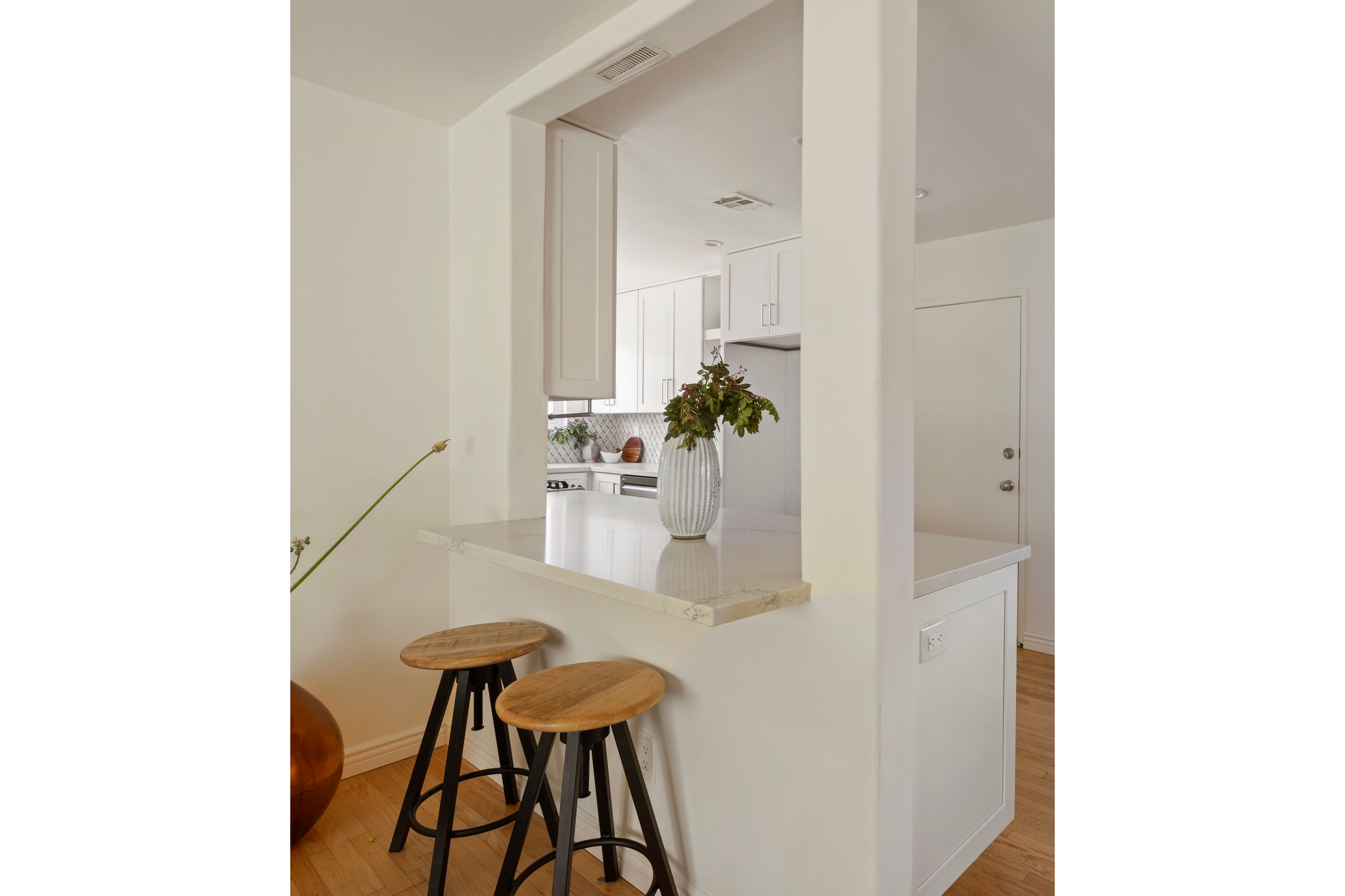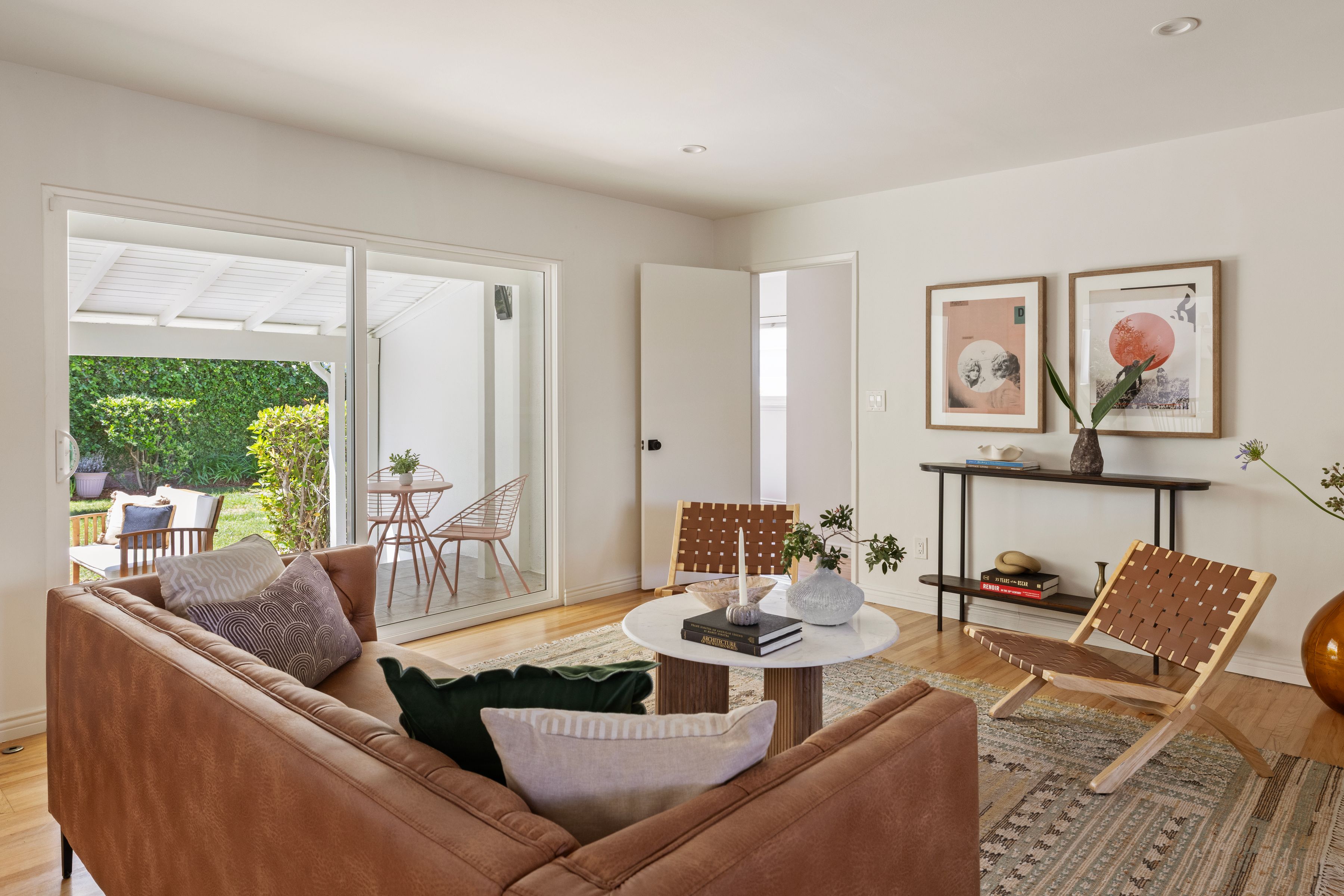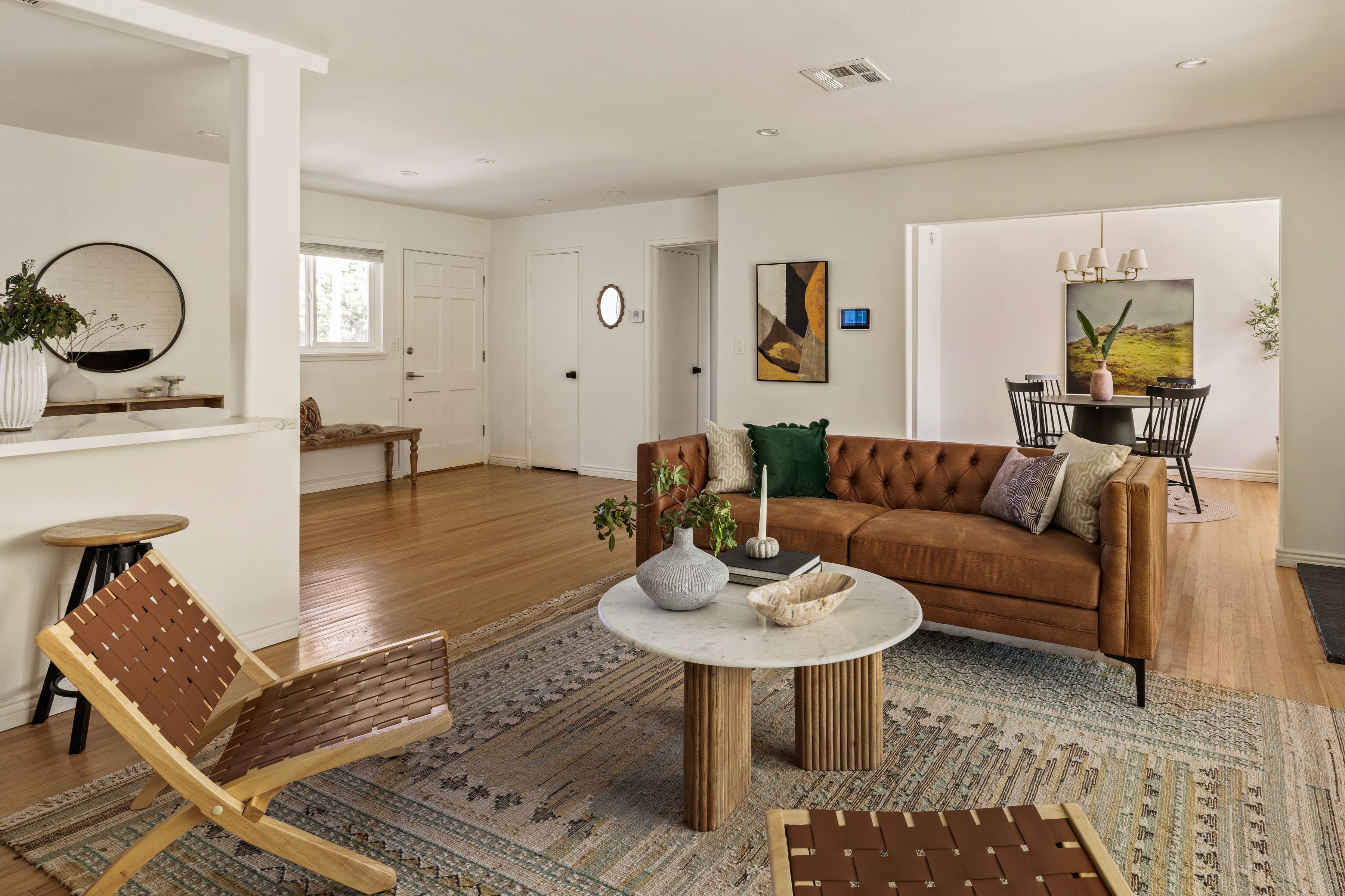 Located in the sought-after Encino Village neighborhood, this stunning three-bedroom, two-bathroom home greets you with a freshly painted exterior and beautifully kept landscaping. The main living space showcases wood floors and a decorative fireplace. An abundance of natural light and views of the backyard make this a place you'll love coming home to. The bright kitchen features quartz countertops, stainless steel appliances, and an oversized peninsula with a breakfast bar. Just off the living room, the cozy and elegant dining area is the perfect place to entertain. The primary bedroom offers two closets and an en suite bathroom with dual sinks. On the opposite side of the home, two additional bedrooms share a well-appointed hall bathroom. Outside, the backyard immediately draws you in with ivy-draped walls, a large covered patio, and plenty of lush green space. The attached two-car garage houses the washer, dryer, and a newly installed tankless water heater. Newer solar, updated plumbing, ample storage, and a freshly painted interior and exterior make this the most effortless choice. The location truly is a dream, with tree-lined streets and easy access to Balboa Park, the Balboa Sports Complex, Ventura Blvd, fantastic restaurants, major freeways, and within the Encino Charter Elementary School District. This home is a true hidden gem in the heart of the Valley.