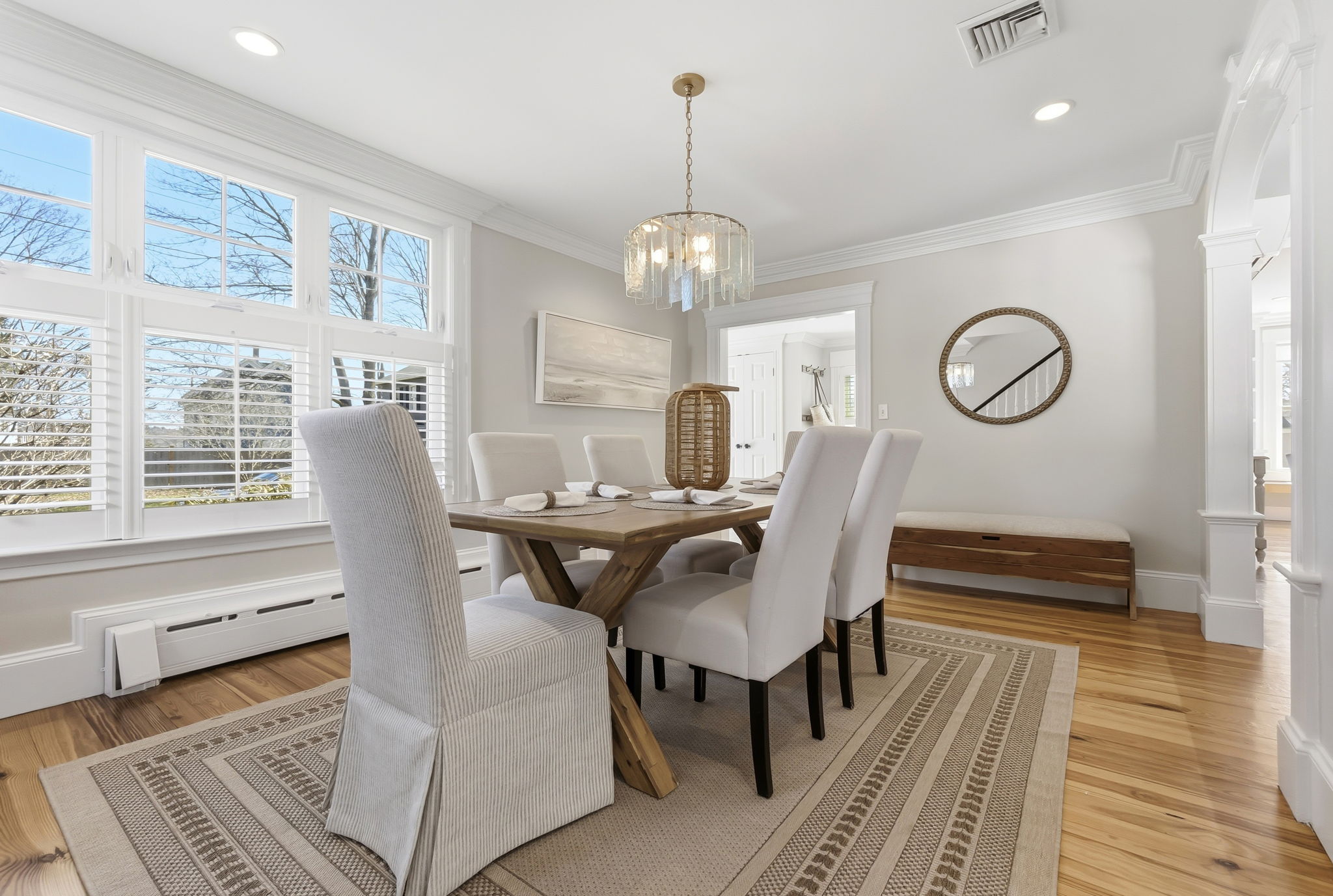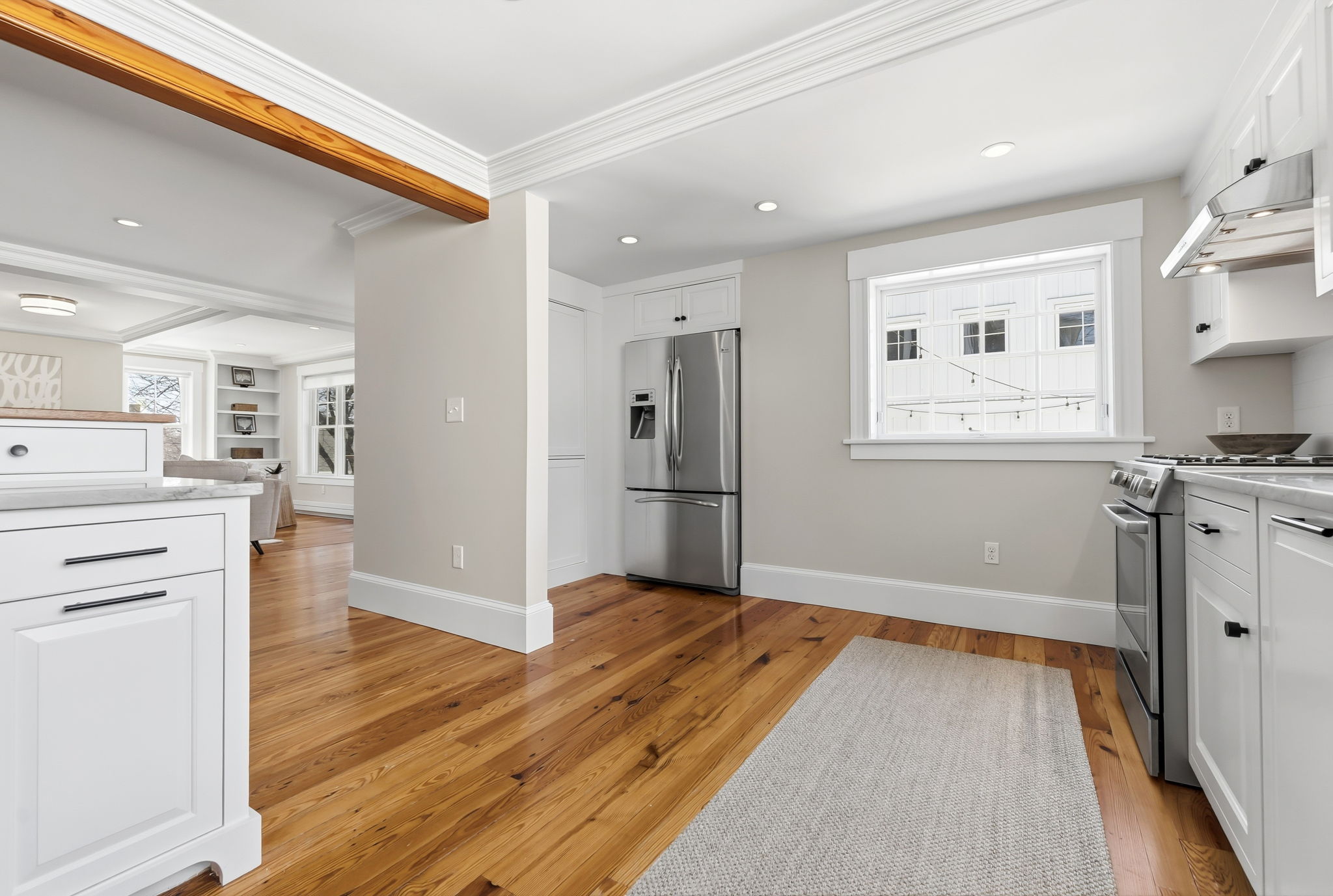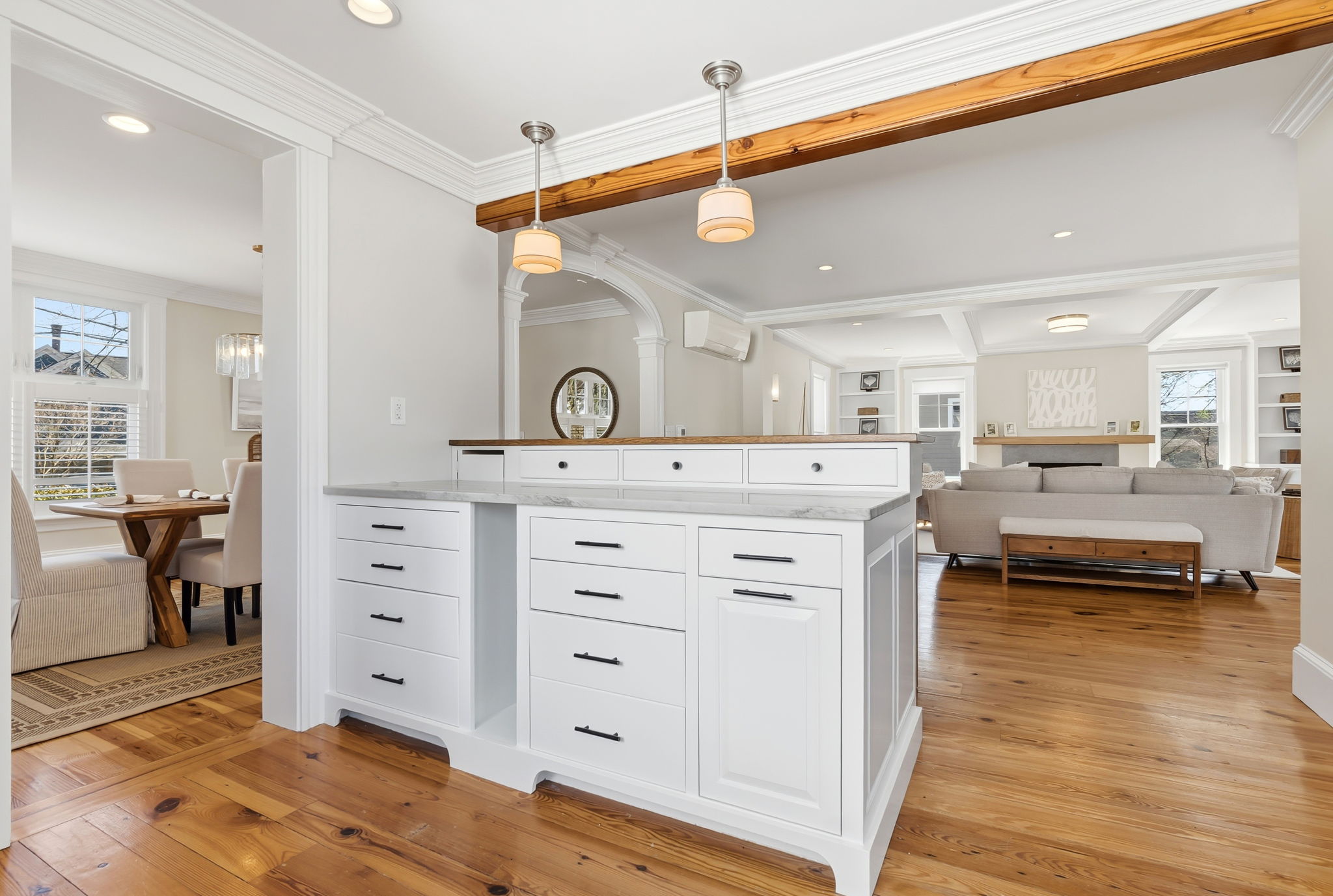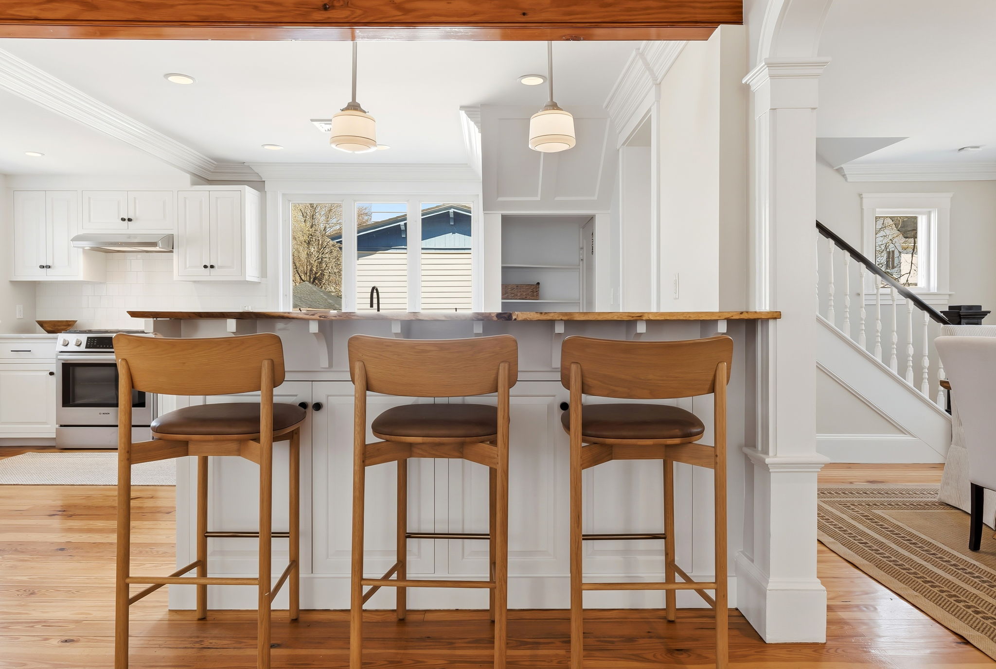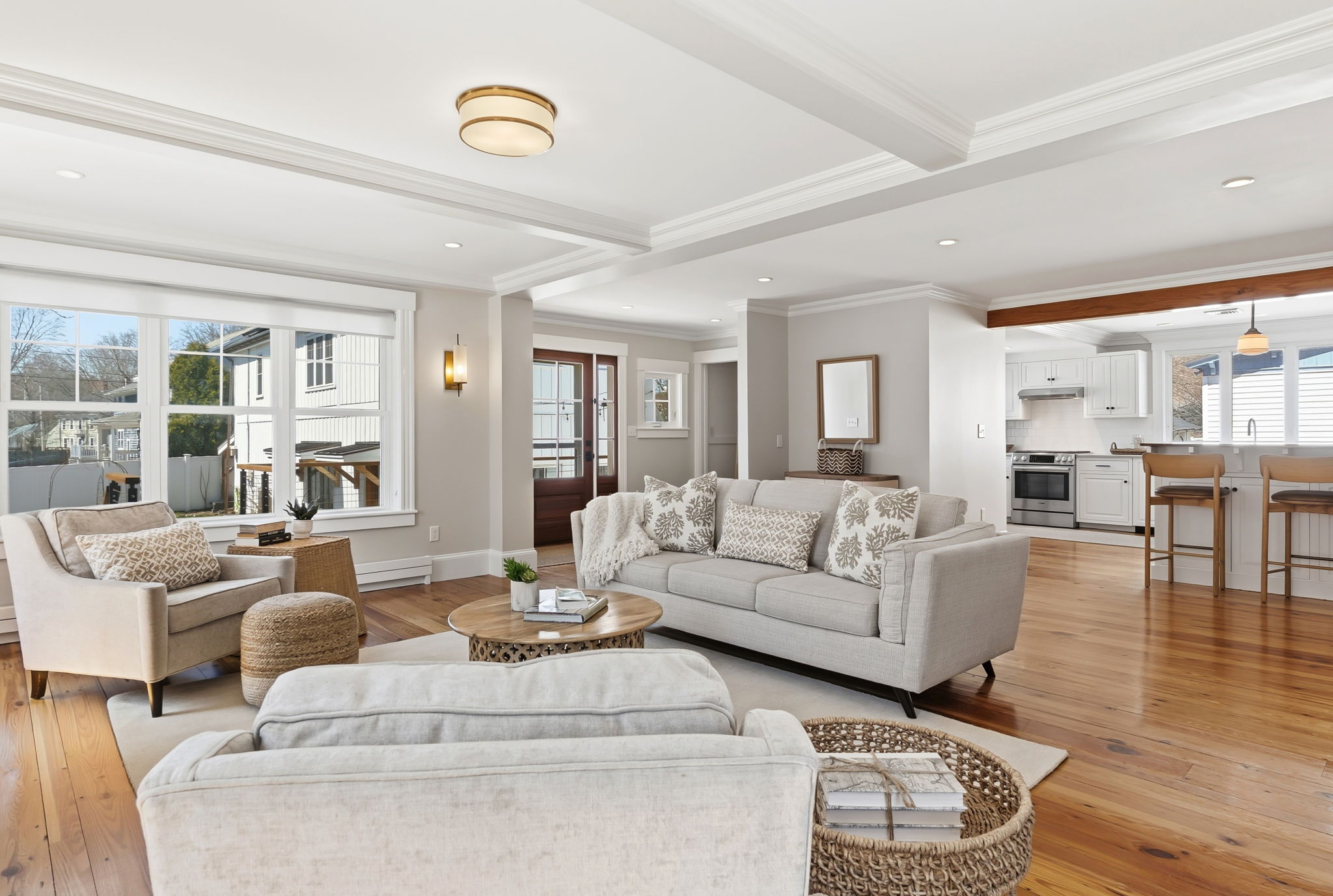 Located just steps from downtown Amesbury, this exceptional property was the personal home of an award-winning builder, showcasing thoughtful design and craftsmanship throughout. The main residence offers three bedrooms and three and a half baths, highlighted by elegant archways, coffered ceilings, and refined finishes. The primary suite features a spa-like ensuite, while the living room is anchored by a gas fireplace, custom built-ins, and crown molding. A standout feature is the beautifully renovated barn, offering a versatile bonus space ideal for a home gym, family room, or game room. Above, a well-appointed apartment includes a bedroom, full bath, and inviting living area with beverage bar and sink. A rare opportunity to own a truly unique and flexible property in a prime location.
