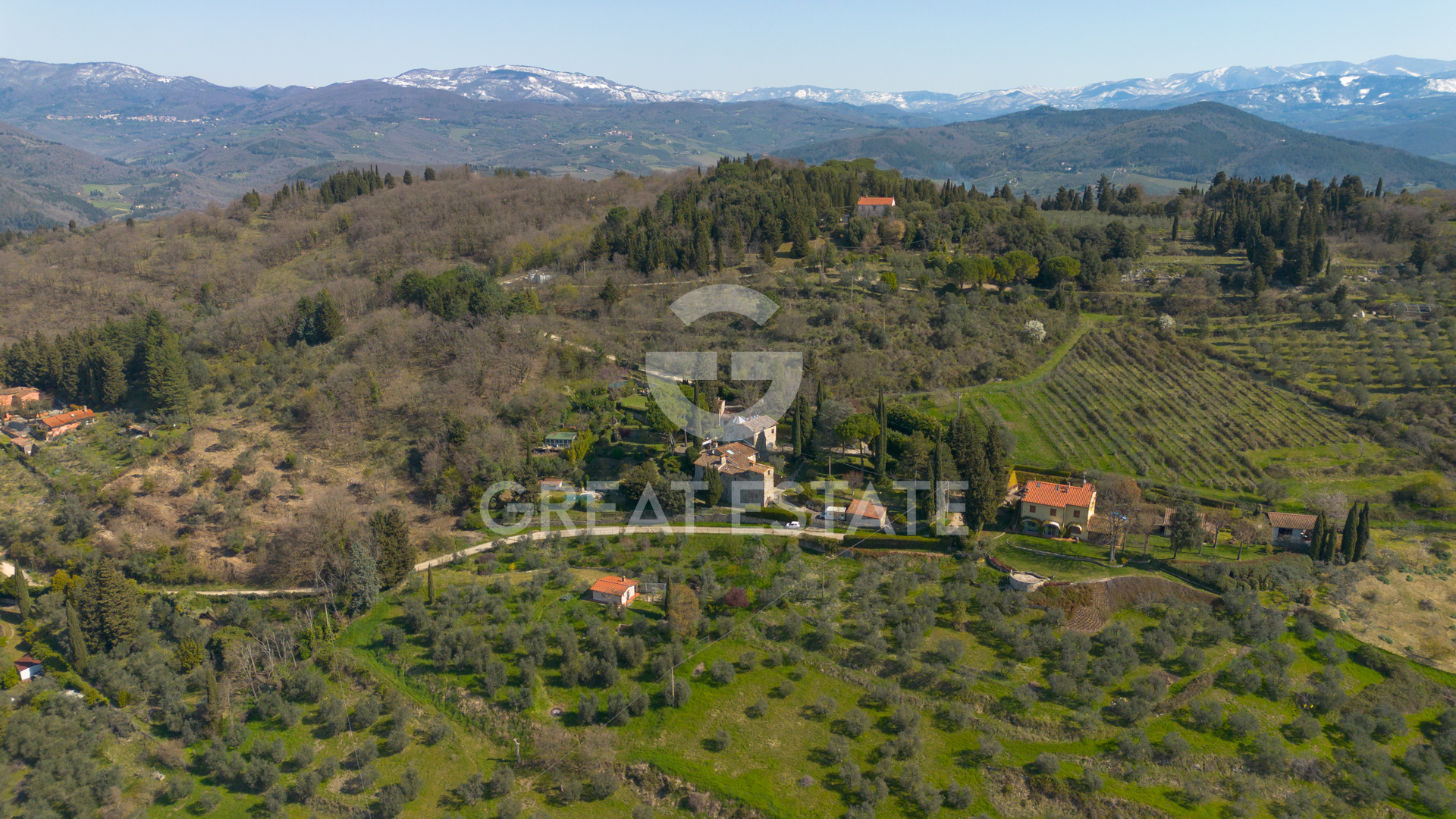 Immersed in the prestige of the Tuscan hills, just 15 km from the heart of Florence, stands this magnificent farmhouse, where the charm of the Middle Ages meets contemporary exclusivity.The main building, originally conceived as a fortified watchtower, preserves the grandeur of its original architecture, offering a living experience steeped in history and authenticity. In addition to the main residence, the estate features two independent apartments.The main residence, measuring approximately 350 sqm, is arranged over two levels. On the ground floor there is an entrance hall, traditional kitchen, living room, dining room, laundry room, one bedroom, and three bathrooms. The first floor hosts three bedrooms, one of which features a mezzanine level, and an additional bathroom.The residence is further enhanced by a semi-basement level comprising a summer lounge with bathroom and library, ideal to be transformed into a modern wellness area, a gym, or a winter garden, as well as original stone cellars and a technical room.Within the main farmhouse there are also two apartments with independent entrances:- Apartment of approximately 40 sqm located on the ground floor, consisting of entrance, kitchen, bedroom, and bathroom.- Apartment of approximately 80 sqm located on the first and second floors, comprising entrance, kitchen, living room, two bedrooms, one bathroom, and on the upper floor the turret.The entire property is set within a landscaped park of 5,000 sqm, overlooking the city of Florence and the surrounding hills. The natural terraced layout not only offers ever-changing panoramic views, but also ensures each residential unit its own privacy and a dedicated garden area.The true heart of the summer season is the swimming pool, positioned in a secluded area on the lower level of the park.The property is completed by two agricultural outbuildings, highly useful for the storage of various equipment.