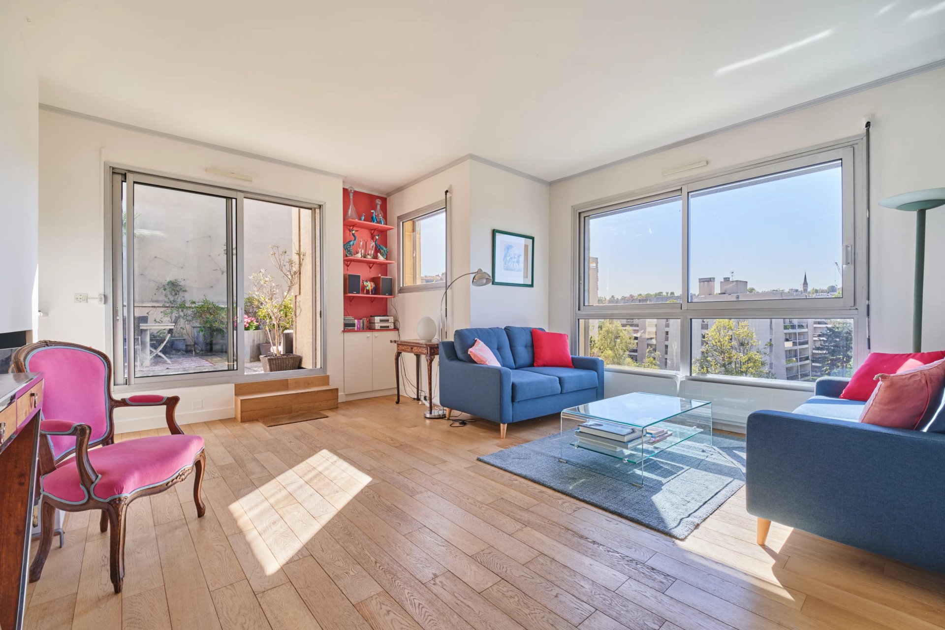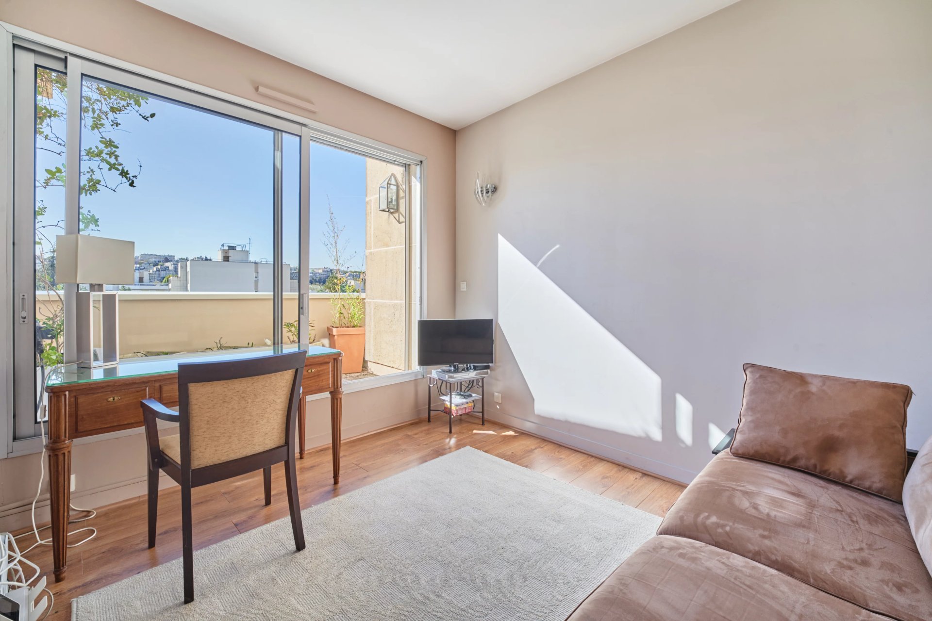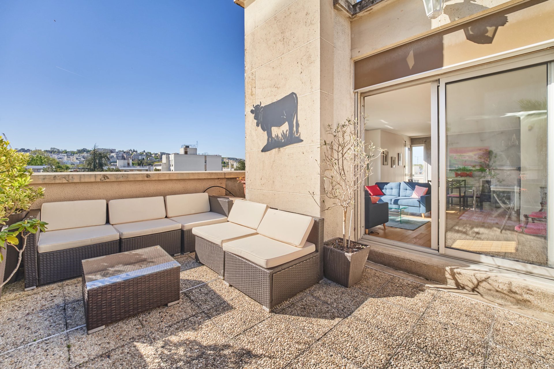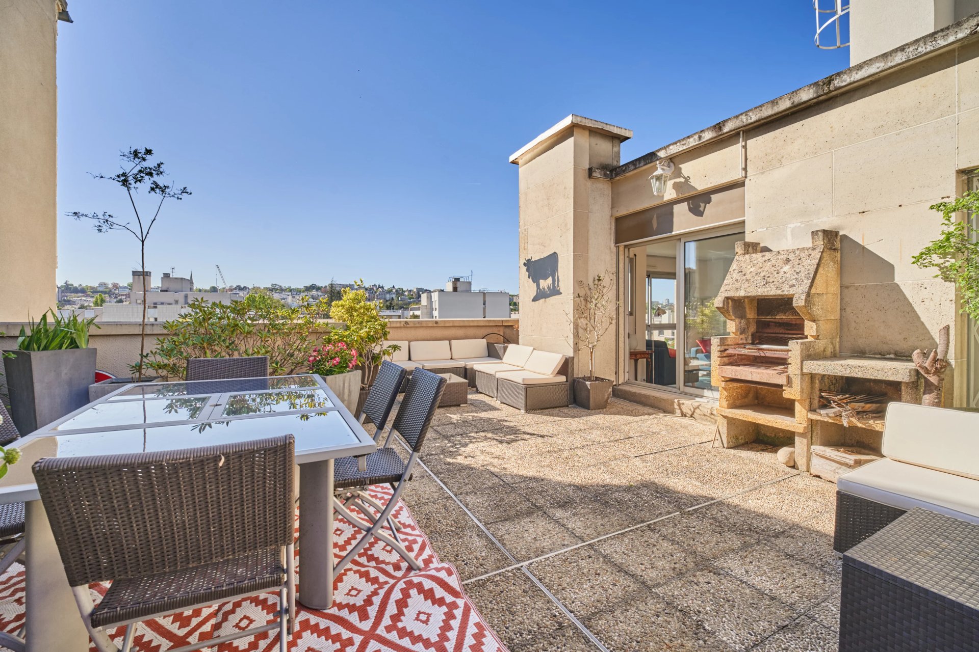 Enjoying an open view, it includes a 30 sqm living/reception room and dining area featuring a fireplace bathed in sunshine and opening onto a 42 sqm terrace, a separate kitchen, two bedrooms each opening onto a 5-6 sqm terrace, a bathroom, a shower room and a separate wc.