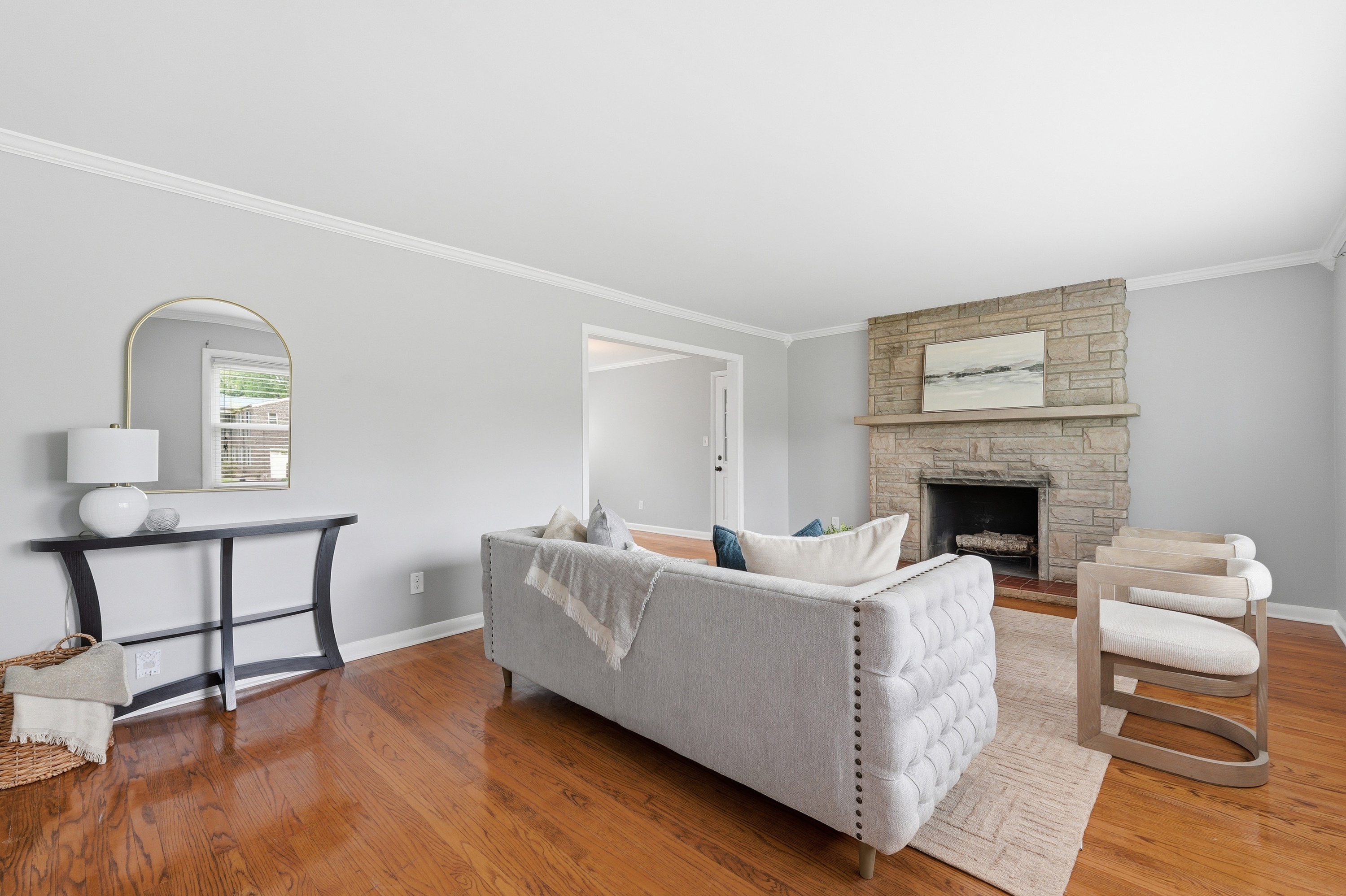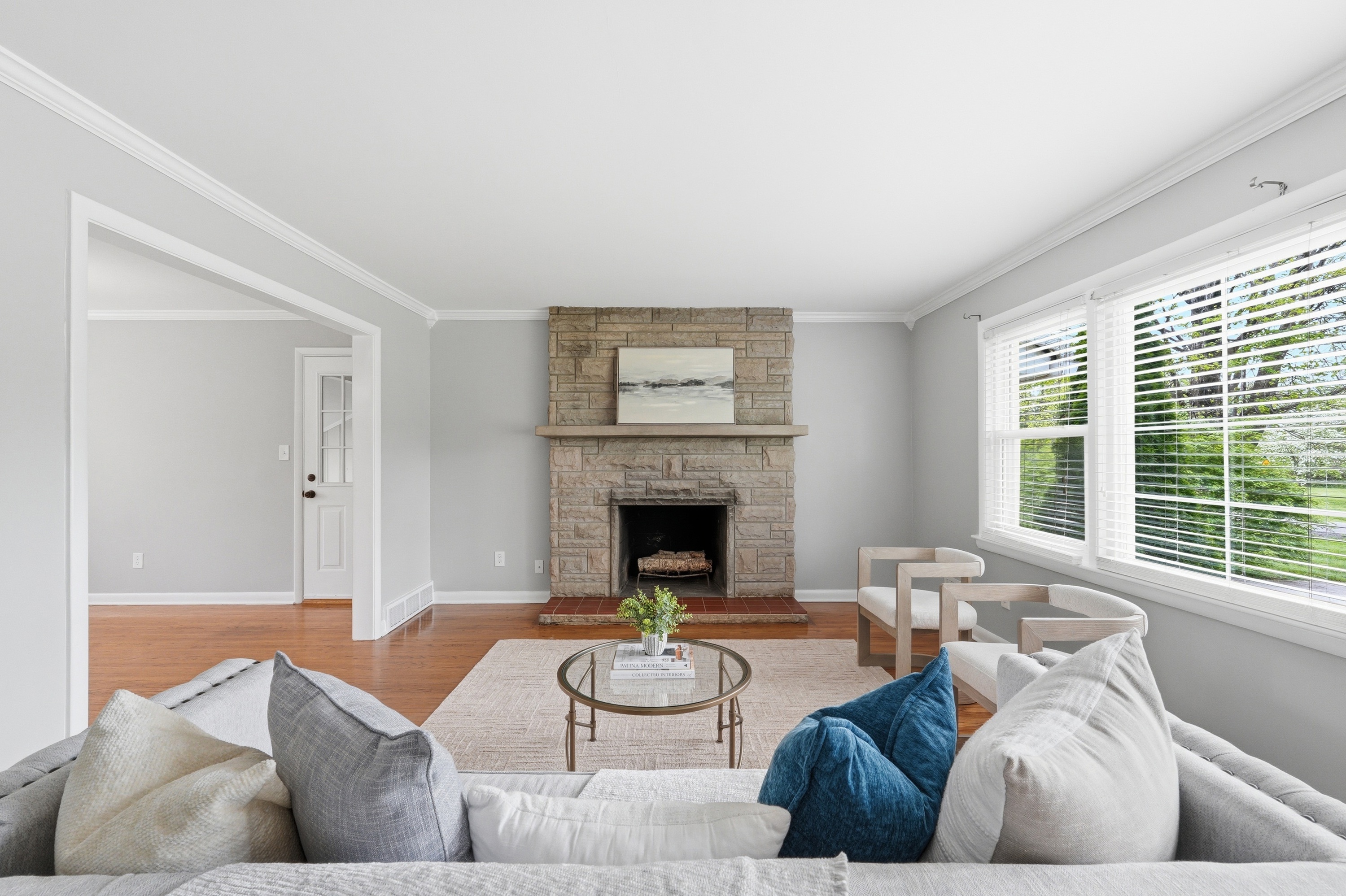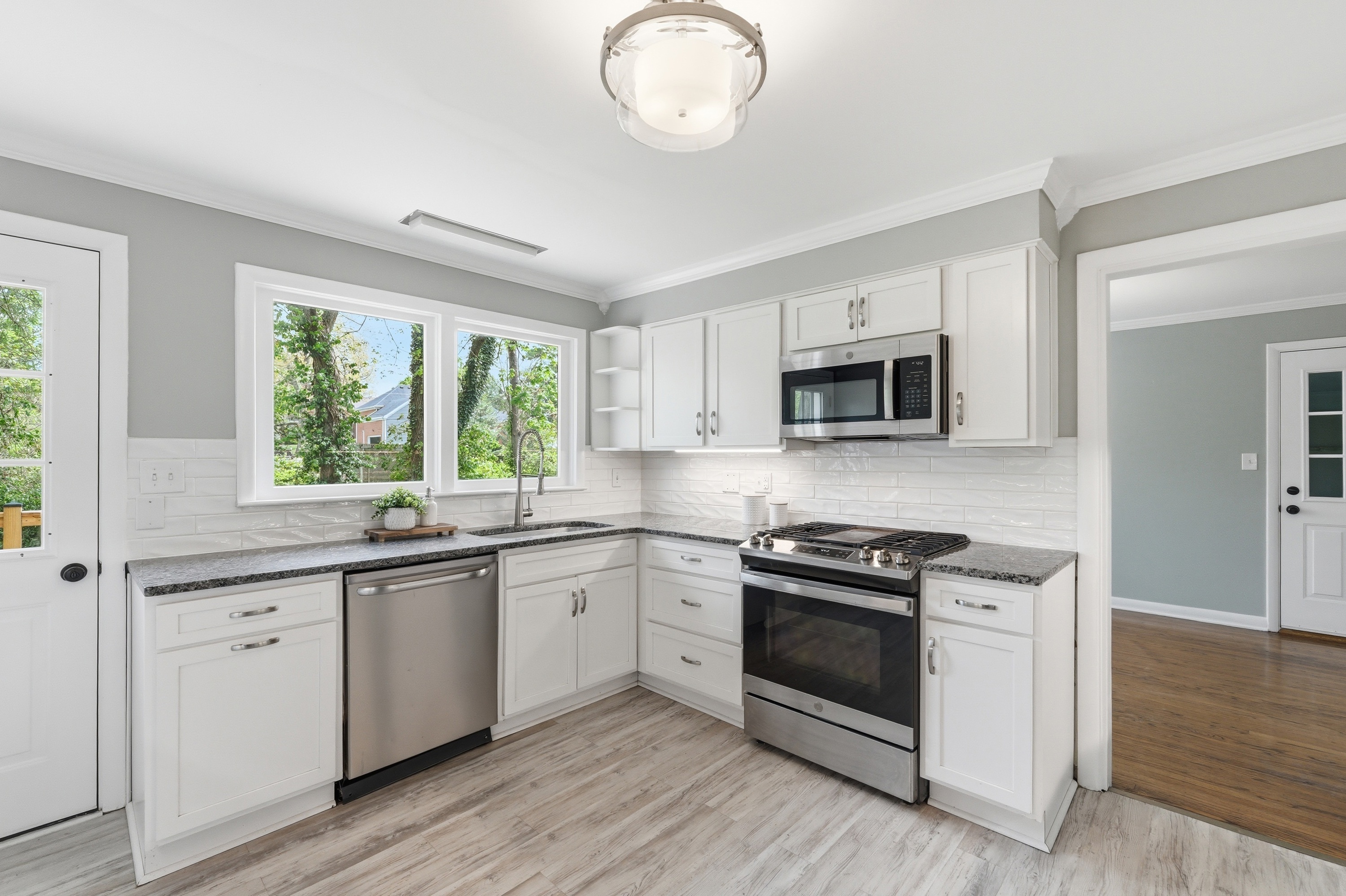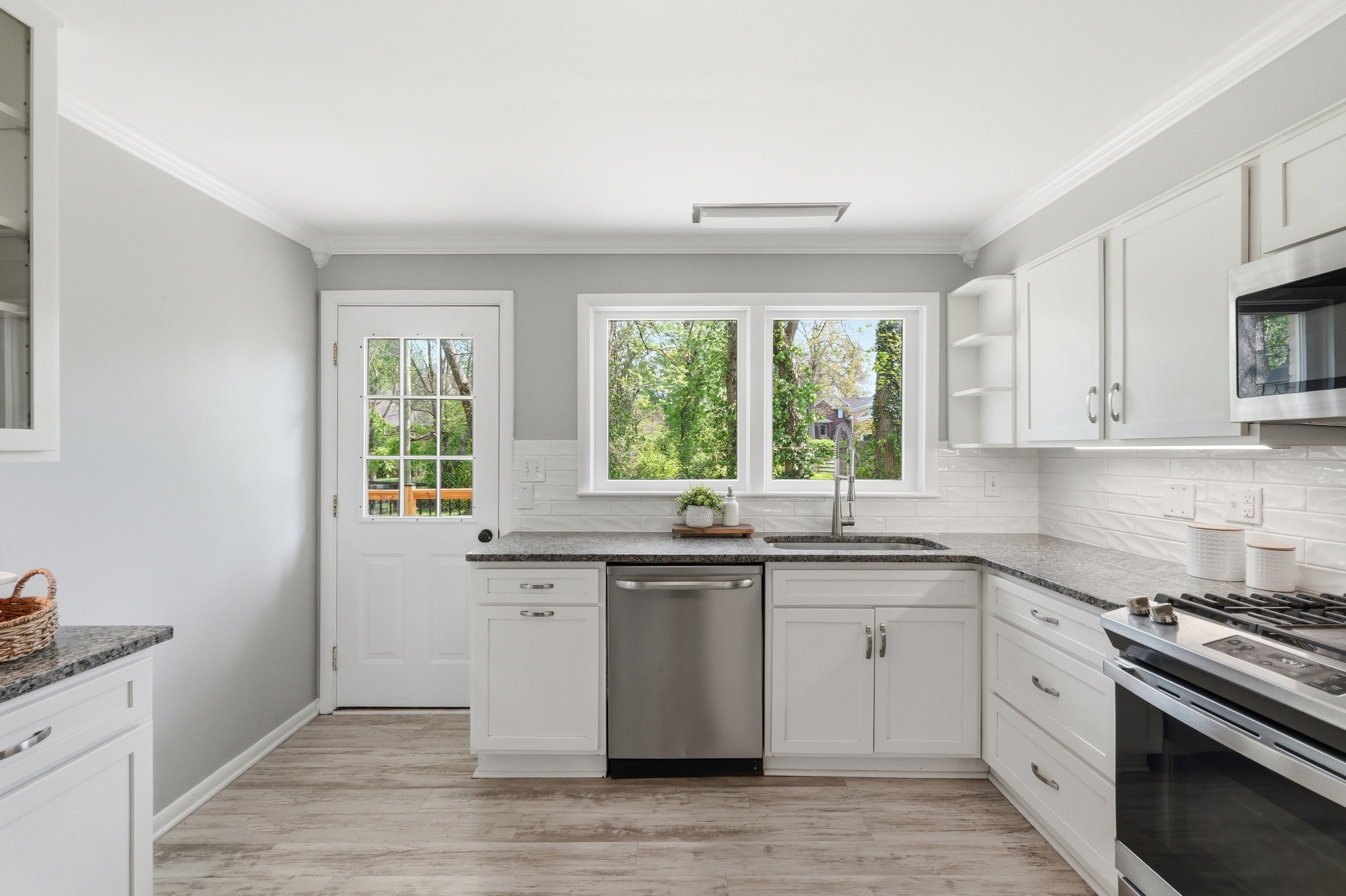 Welcome to this updated brick home in Windy Hills, offering 4 bedrooms, 2 full bathrooms, and set on over a half acre tree lined lot with a park like setting. Inside, you are welcomed by hardwood floors and a light filled living room with a large picture window and fireplace. The layout flows seamlessly into the dining room and updated kitchen, featuring white shaker cabinetry, granite countertops, stainless steel appliances including a gas range, and easy access to the backyard. The outdoor space truly sets this home apart. A new deck overlooks the backyard, with a charming bridge crossing over a small creek and leading to a tucked away gazebo, plus plenty of yard to enjoy. It feels peaceful, private, and is perfect for entertaining evenings at home. The main level includes a spacious primary bedroom, an additional bedroom, and a full bathroom with dual sinks. Upstairs offers 2 generously sized bedrooms and a second full bath, with one bedroom offering the flexibility to serve as a primary suite if preferred. The unfinished lower level offers the opportunity to add additional living space, a home gym, or recreation area. An attached 2 car garage and bonus storage space provide flexibility for everyday living. Set on a quiet dead end street just off Rudy Lane, this home combines a private setting with unbeatable convenience to I264 and the shops and restaurants of St. Matthews, Westport Village, and Brownsboro Road.