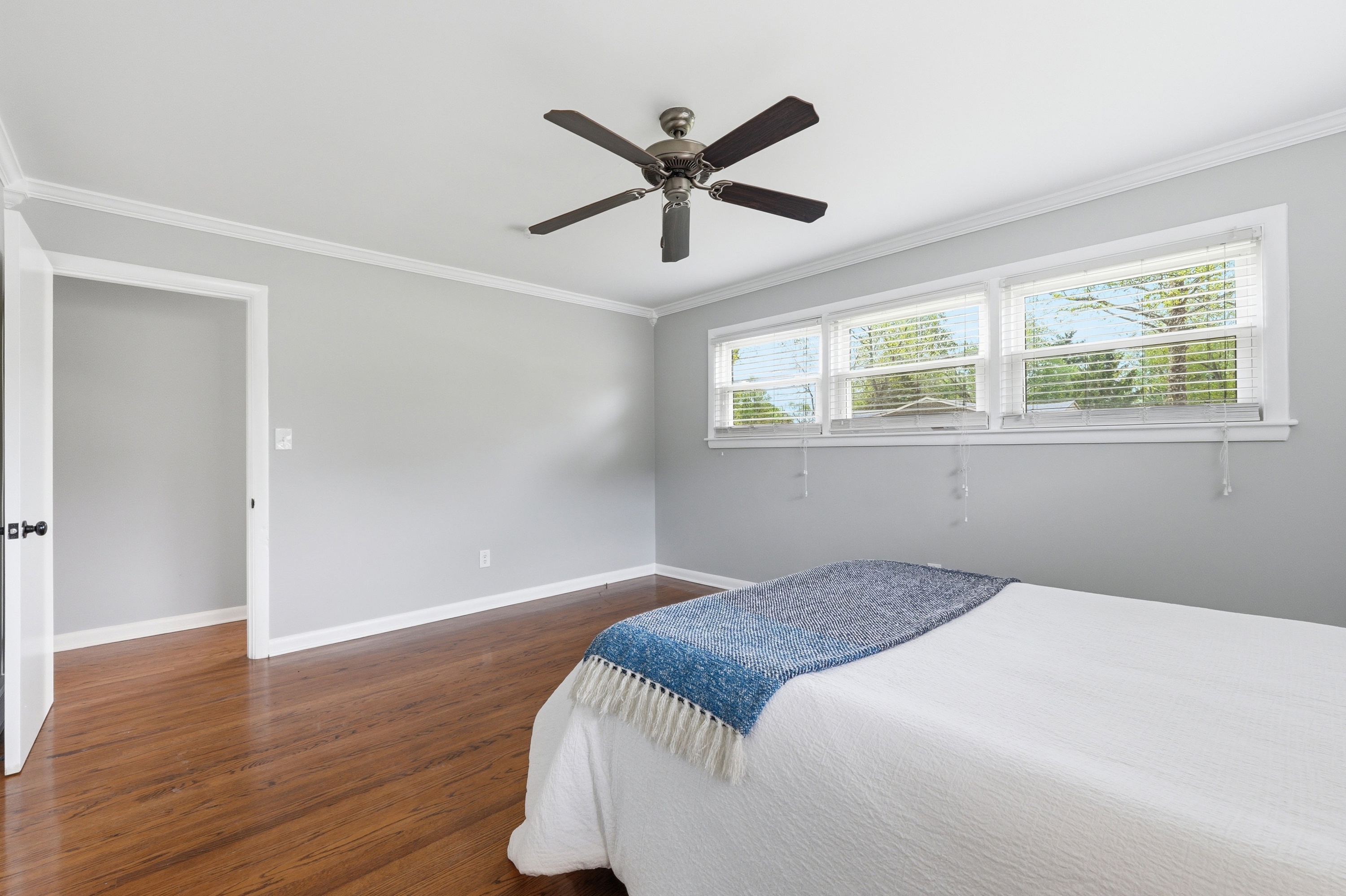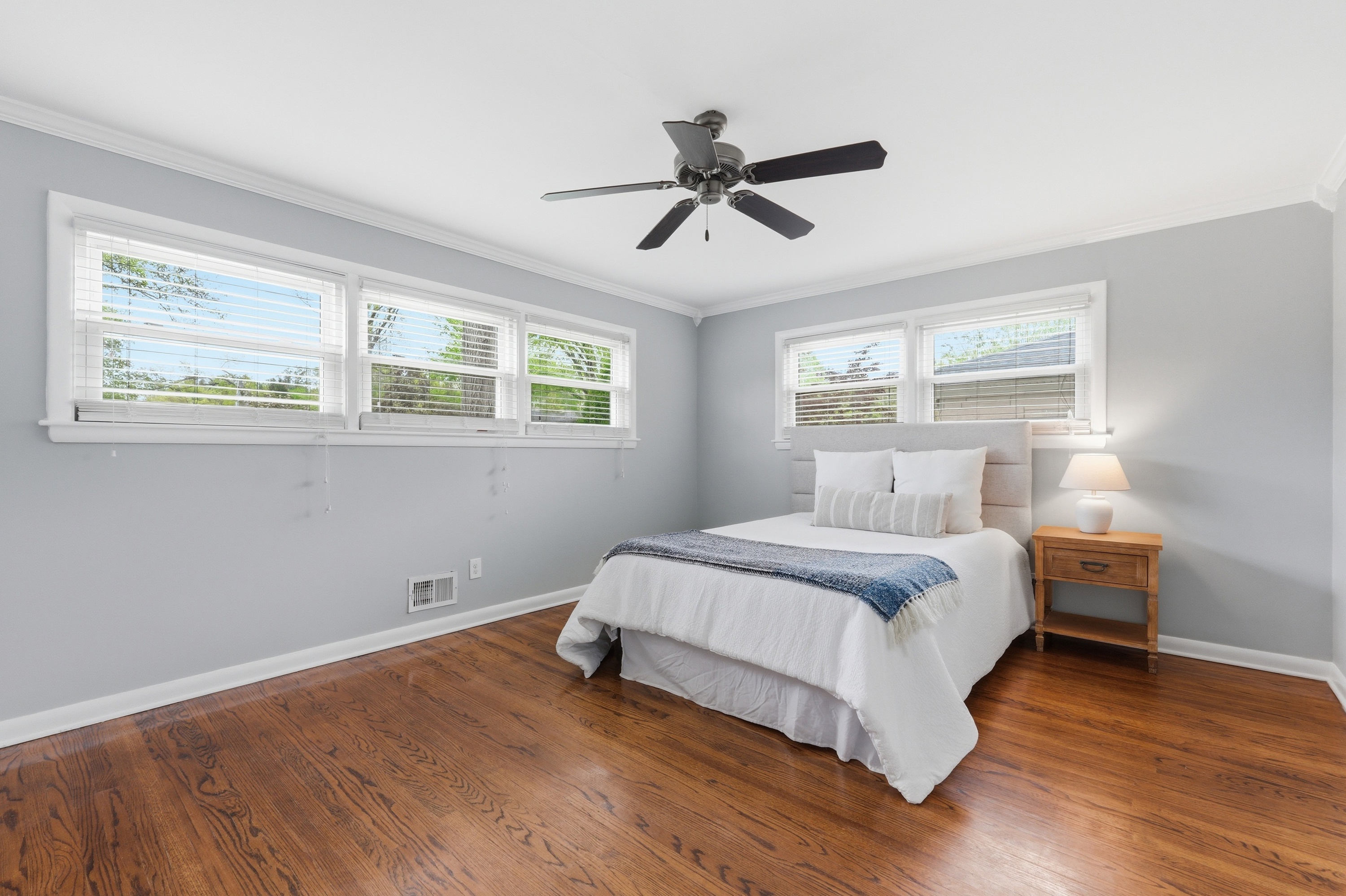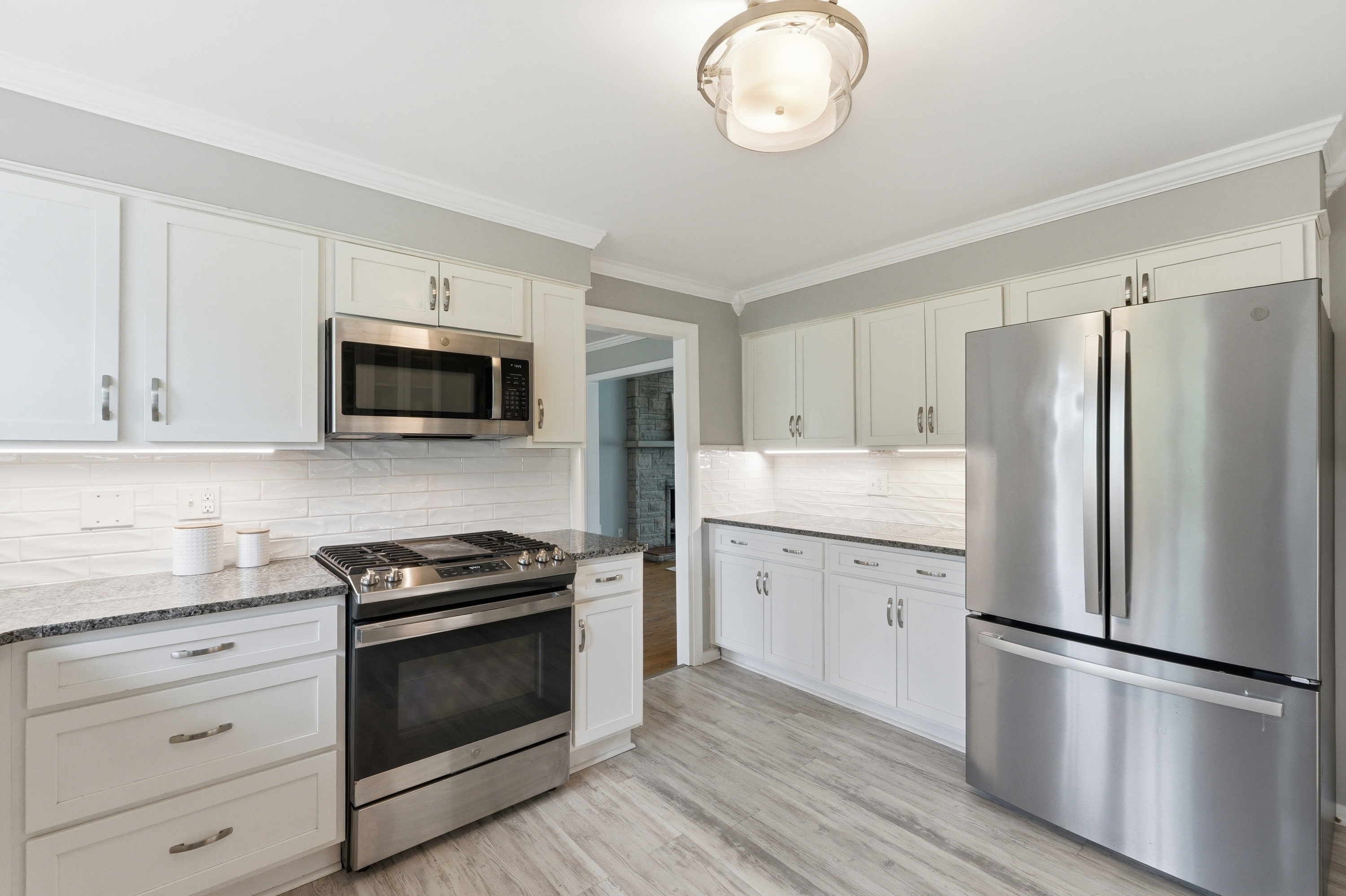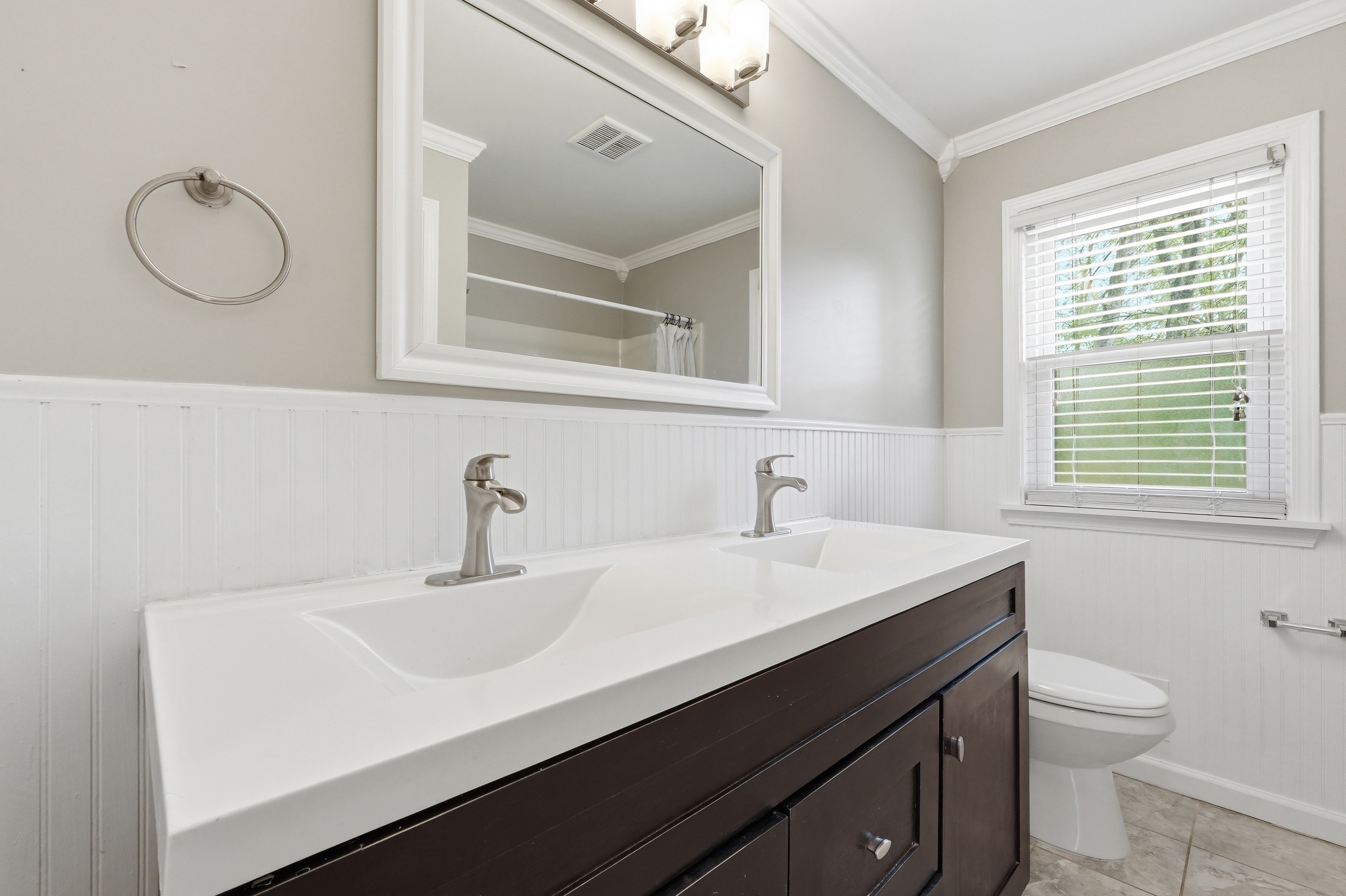 Welcome to this updated brick home in Windy Hills, offering 4 bedrooms, 2 full bathrooms, and set on over a half acre tree lined lot with a park like setting. Inside, you are welcomed by hardwood floors and a light filled living room with a large picture window and fireplace. The layout flows seamlessly into the dining room and updated kitchen, featuring white shaker cabinetry, granite countertops, stainless steel appliances including a gas range, and easy access to the backyard. The outdoor space truly sets this home apart. A new deck overlooks the backyard, with a charming bridge crossing over a small creek and leading to a tucked away gazebo, plus plenty of yard to enjoy. It feels peaceful, private, and is perfect for entertaining evenings at home. The main level includes a spacious primary bedroom, an additional bedroom, and a full bathroom with dual sinks. Upstairs offers 2 generously sized bedrooms and a second full bath, with one bedroom offering the flexibility to serve as a primary suite if preferred. The unfinished lower level offers the opportunity to add additional living space, a home gym, or recreation area. An attached 2 car garage and bonus storage space provide flexibility for everyday living. Set on a quiet dead end street just off Rudy Lane, this home combines a private setting with unbeatable convenience to I264 and the shops and restaurants of St. Matthews, Westport Village, and Brownsboro Road.