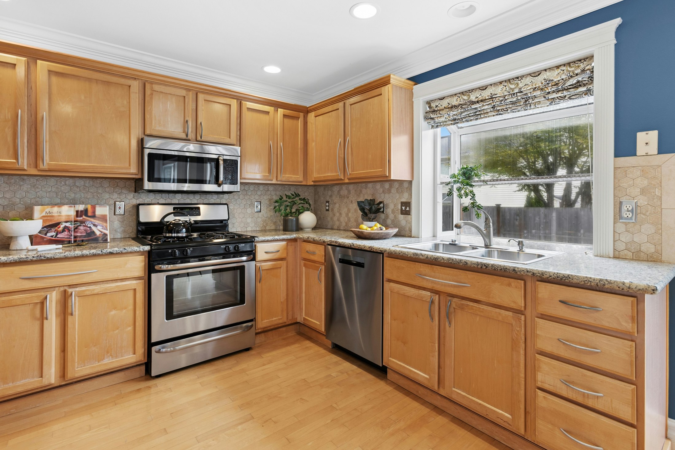 Feel the weight lift off your shoulders as you come home to a sky-high vaulted ceiling and your built-in 6 person Jacuzzi hot tub. The kitchen features stainless steel appliances, granite counters, dedicated pantry, and a charming garden window. This floorplan flows seamlessly from the intimate conversation space to the open concept kitchen and living room offering flexibility & space with custom trim and crown molding throughout. Direct access from the kitchen to the spacious Trex deck, this sun drenched, fully fenced backyard makes it easy to BBQ or to entertain guests. Space for all with 4 bedrooms upstairs, including the primary bedroom featuring a walk-in closet and 5-piece en-suite bathroom. This well-maintained move-in ready home includes a brand-new hot water heater, recently serviced furnace and fireplace, all the appliances and even fresh new smoke detectors. Enjoy the Mill Creek convenience of shopping and restaurants, nearby YMCA, neighborhood parks, and miles of scenic trails. This isn’t just a house, it’s where your best days happen.