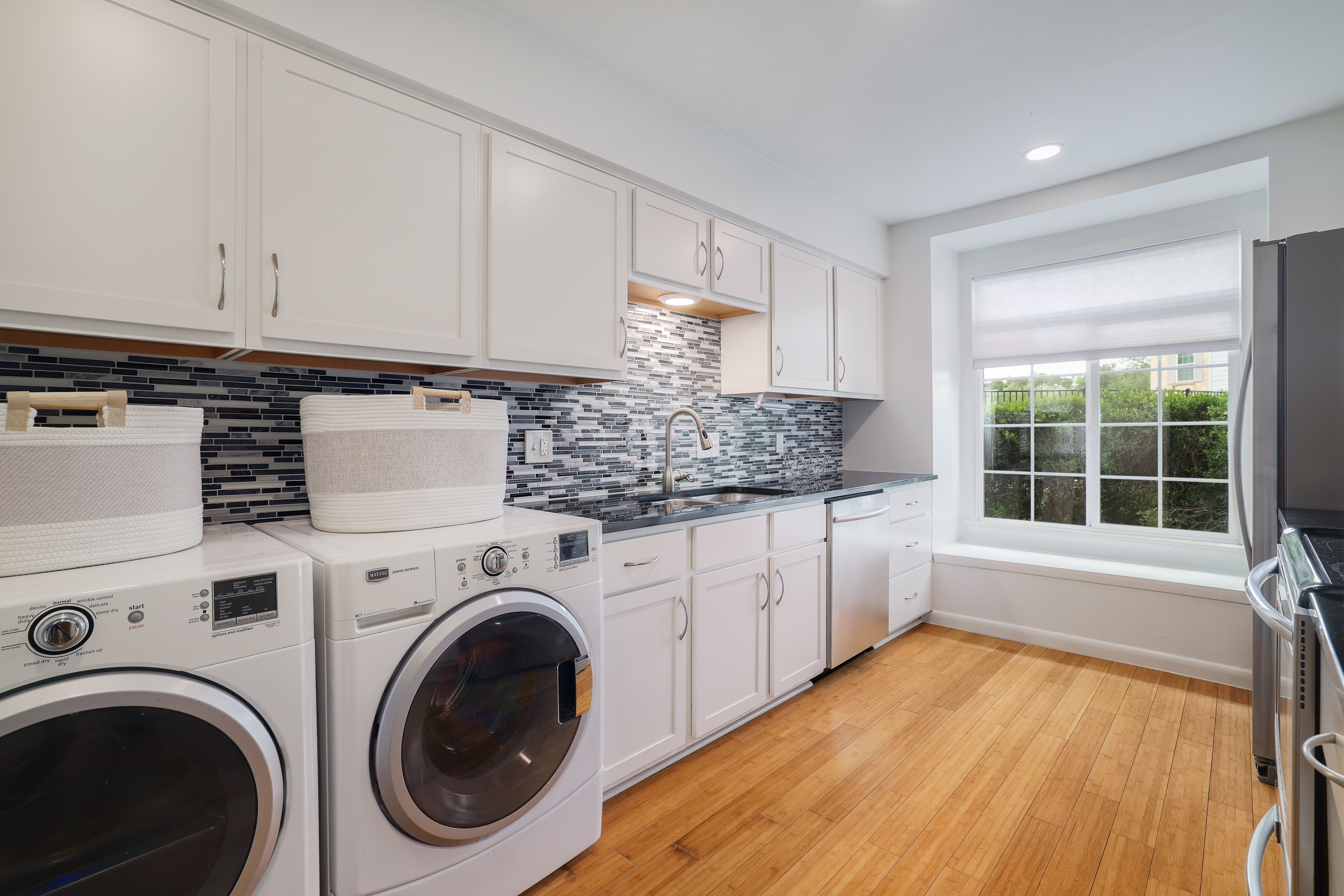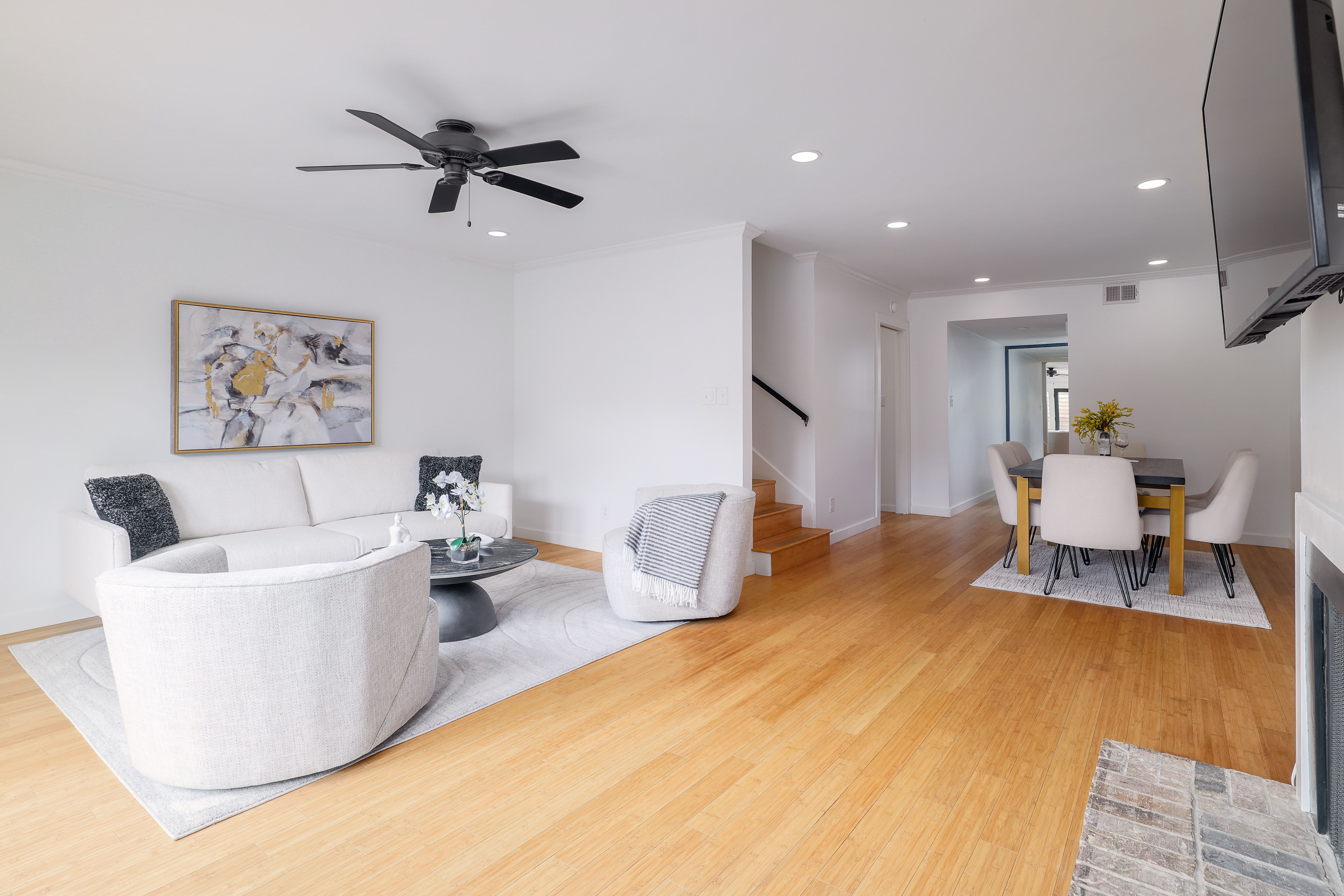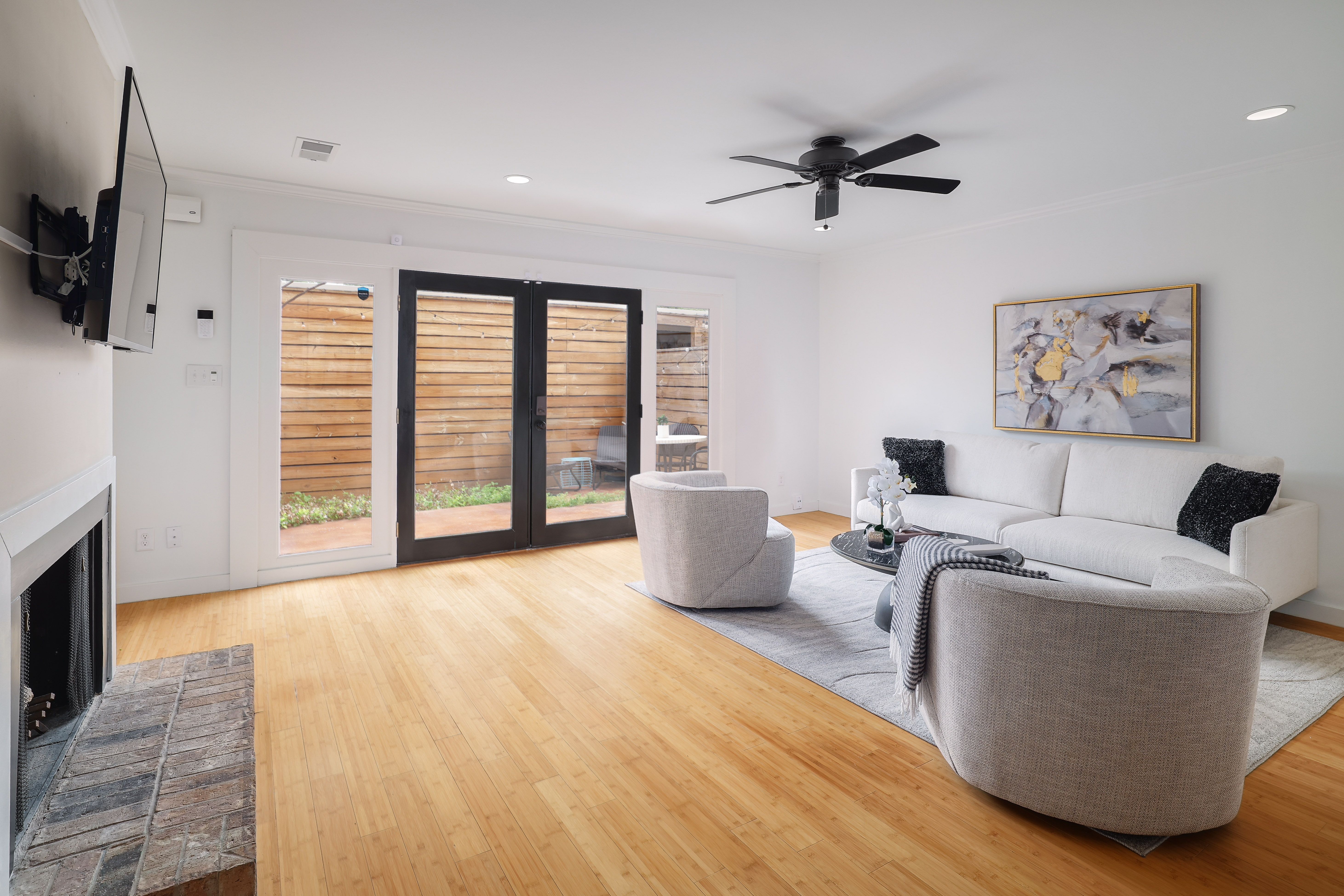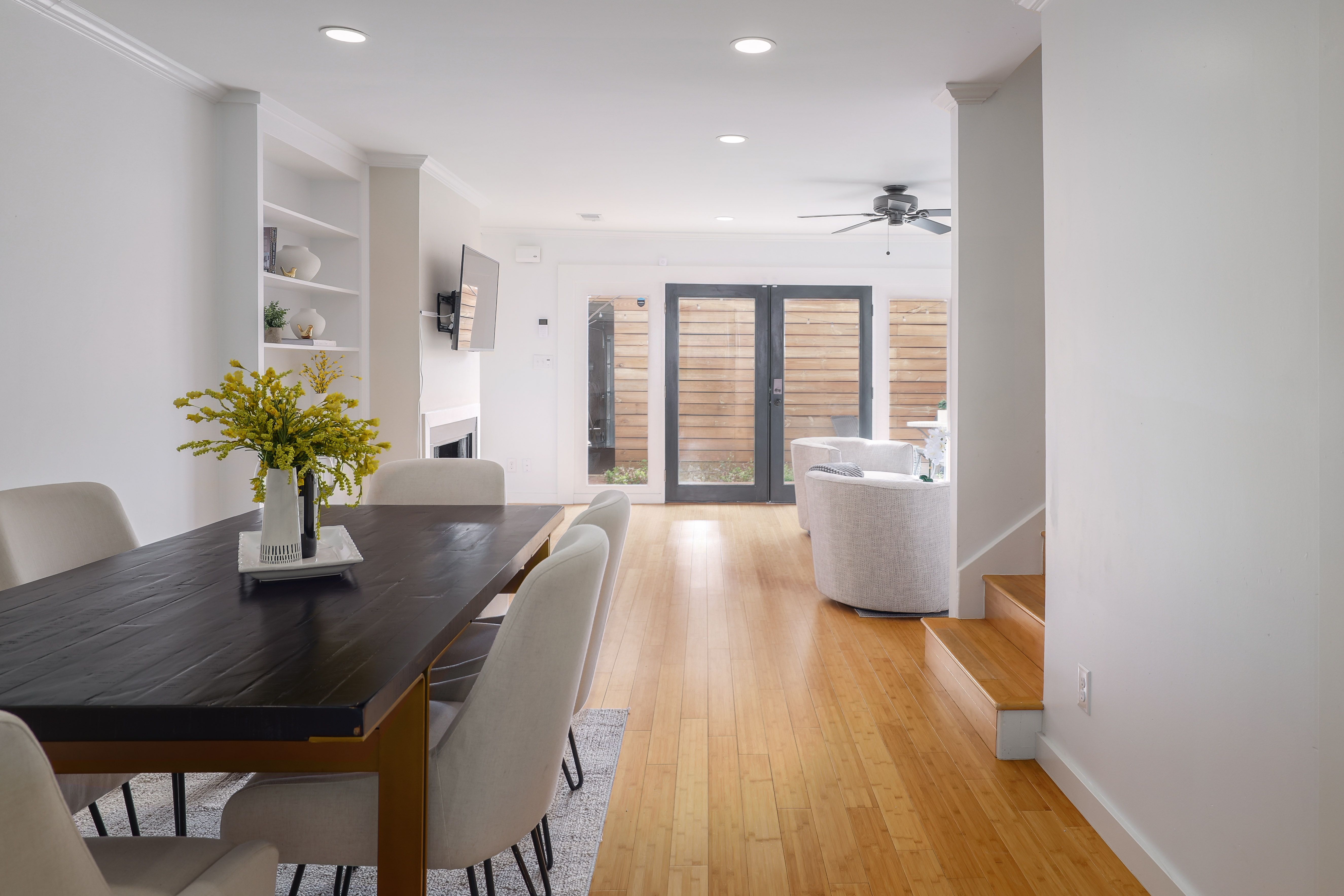 Located in a well-maintained community, this charming townhouse offers a functional layout with thoughtful updates throughout. The main level you’ll find a cozy living room with a fireplace, a sizable dining area all with recessed lighting. The kitchen features silestone countertops, stainless steel appliances, and a large walk-in pantry with plenty of storage, plus a convenient half bath perfect for guests. Upstairs features two spacious bedrooms, each with its own en suite bathroom and walk-in closet. Recent improvements provide peace of mind, including updated aluminum wiring (2019), a new HVAC system with ductwork (2024), a new roof installed by the HOA (2022), a new garage door (2024), and an upgraded garage door opener. This lovely townhome also includes bamboo flooring throughout, a private back porch that connects directly to the two-car garage, along with an additional parking space for guests. Residents enjoy access to beautifully maintained community amenities, including expansive green space, two swimming pools, and two tennis courts. Ideally located within walking distance to HEB, Epoch Coffee, and Wholy Bagel, this home offers both everyday convenience and a vibrant neighborhood lifestyle. Zoned to the highly sought-after Doss Elementary, Murchison Middle School, and Anderson High School.