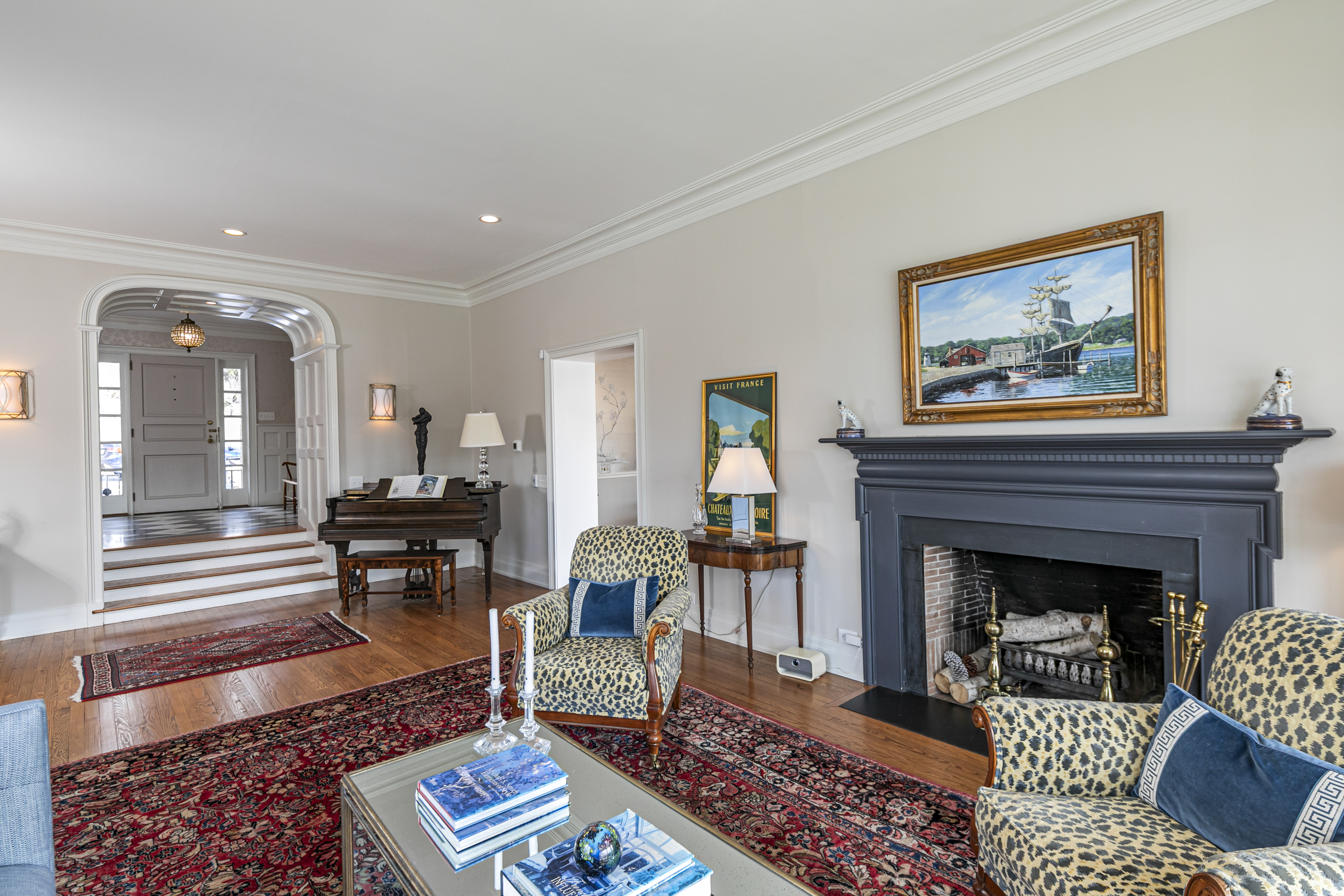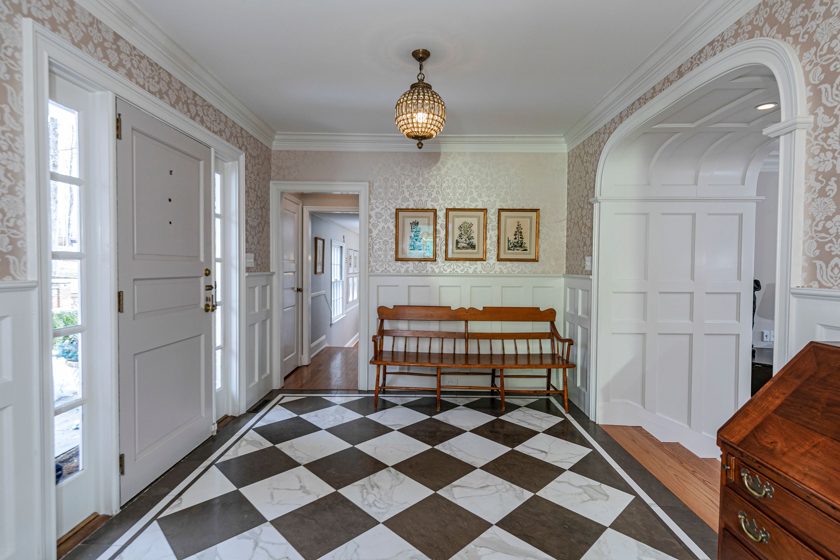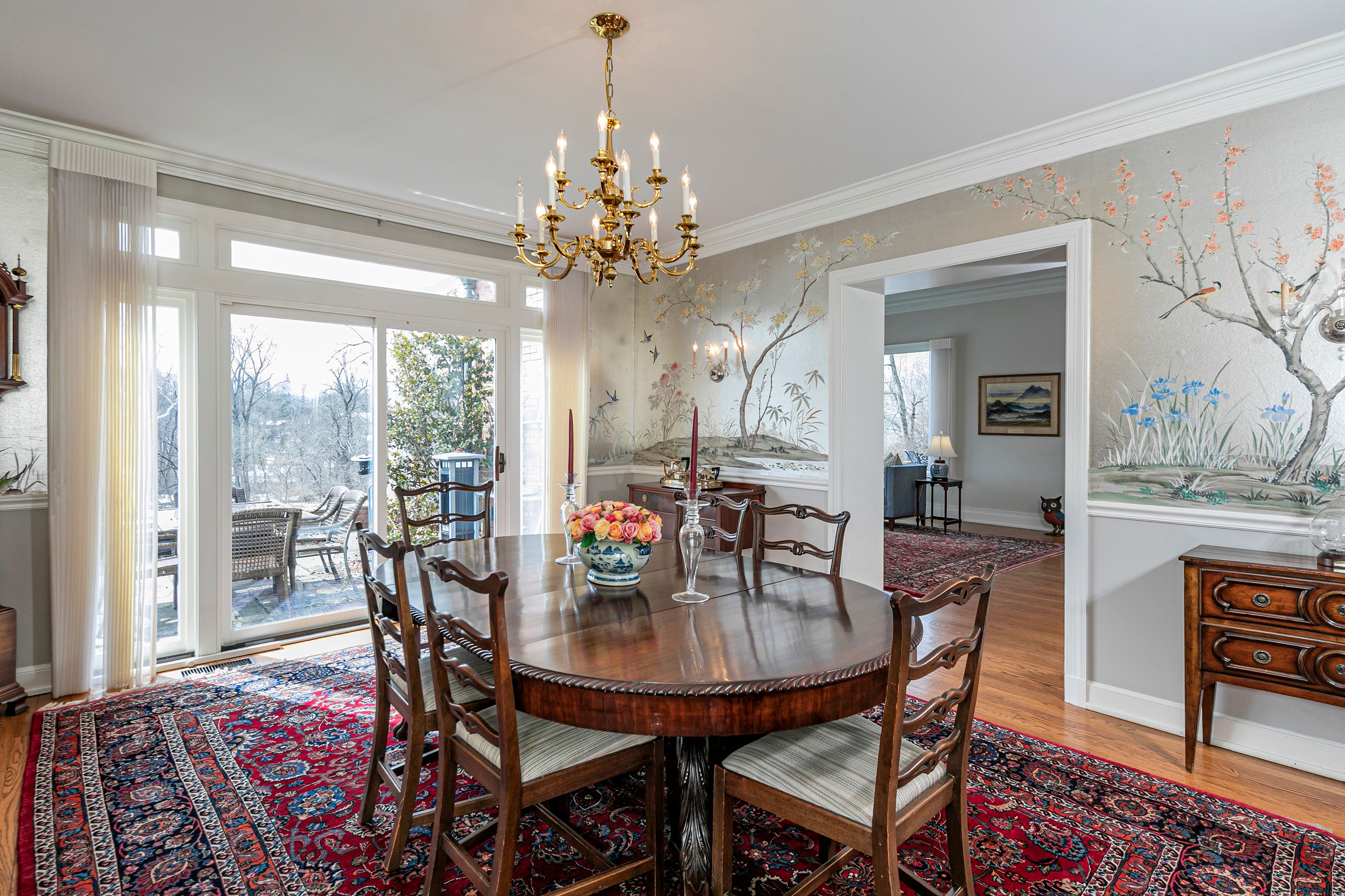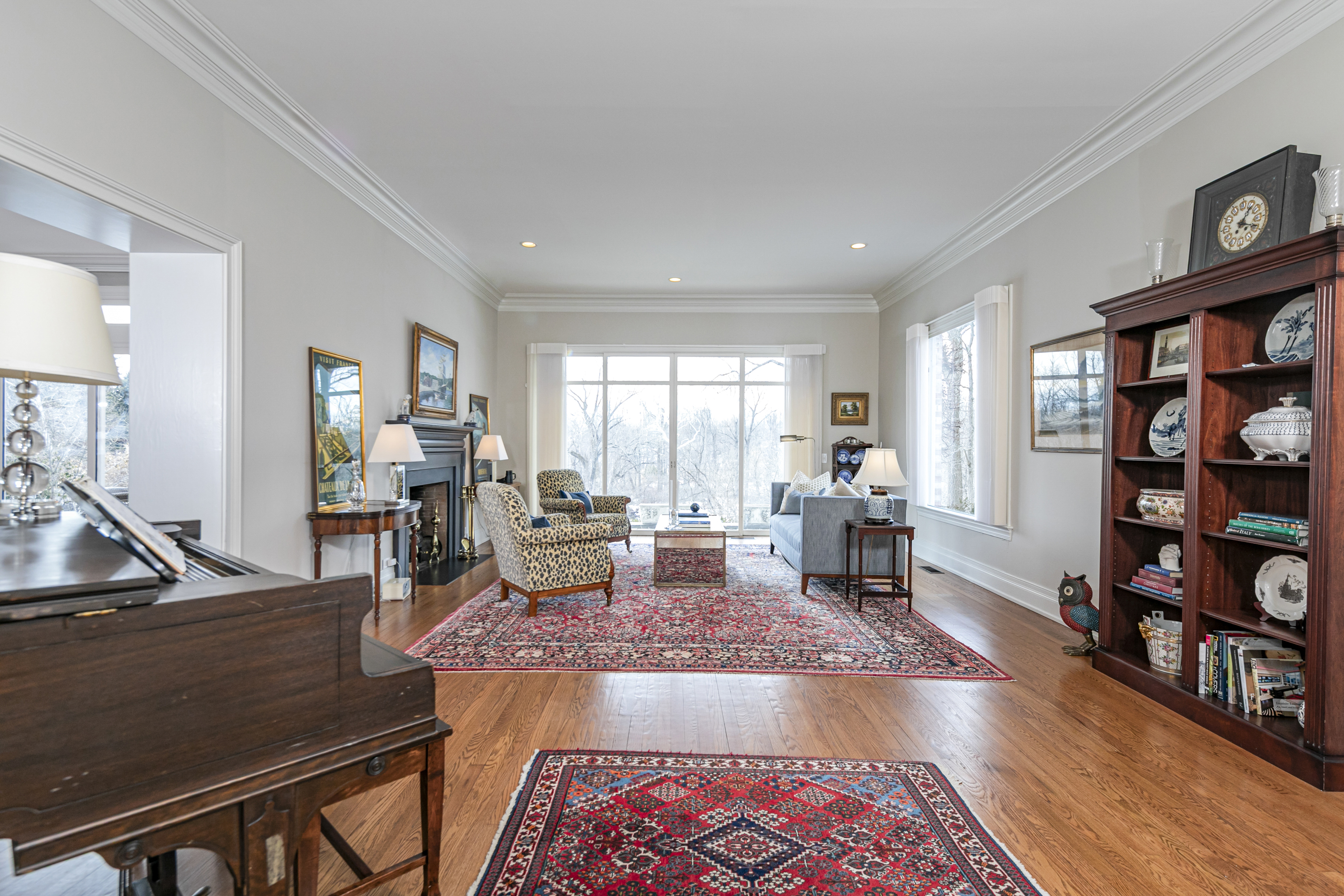 Set on more than two picturesque acres with panoramic views of Stony Brook, this beautifully expanded and flawlessly renovated brick home pairs classic details with smart updates. Just around the bend from The Hun School and a quick mile and a half from downtown, the setting feels well connected, yet peacefully estate-like, replete with a glorious oval swimming pool. The stunning entrance hall, finished in harlequin marble, introduces interiors designed for both elegant entertaining and comfortable living. In the grand living room, 11-foot ceilings, a fireplace and walls of glass create a light-filled gathering space that showcases the stunning outdoor backdrop. The kitchen, newly updated in 2024, centers around a generous quartz island and Thermador appliances. The openly adjoining sitting room with built-in computer station naturally draws everyone together. Hand-painted metallic wallpaper adds gleaming artistry to the dining room, while a wet bar serves the cozy library with its own fireplace. Within the bookshelves of this sophisticated retreat, a secret passage to the family room awaits discovery! A multi-room guest wing provides first-floor accommodations suitable for extended visits. A bonus room addition, currently used as a gym, is nicely separated and extra versatile with a generous sundeck and pristine full bath. The primary suite enjoys a central upper level position, along with every requisite amenity: custom walk-in closet, study, radiant heated modern bathroom with oversized shower and, of course, exquisite views from three exposures. Two more roomy suites have the perk of their own laundry closet, a supplement to the big, storage-rich mudroom. A circular driveway with extra parking court provides space for plenty of friends, who will be pleased to pop over for a swim or just to relish the view from one of the many stone terraces.